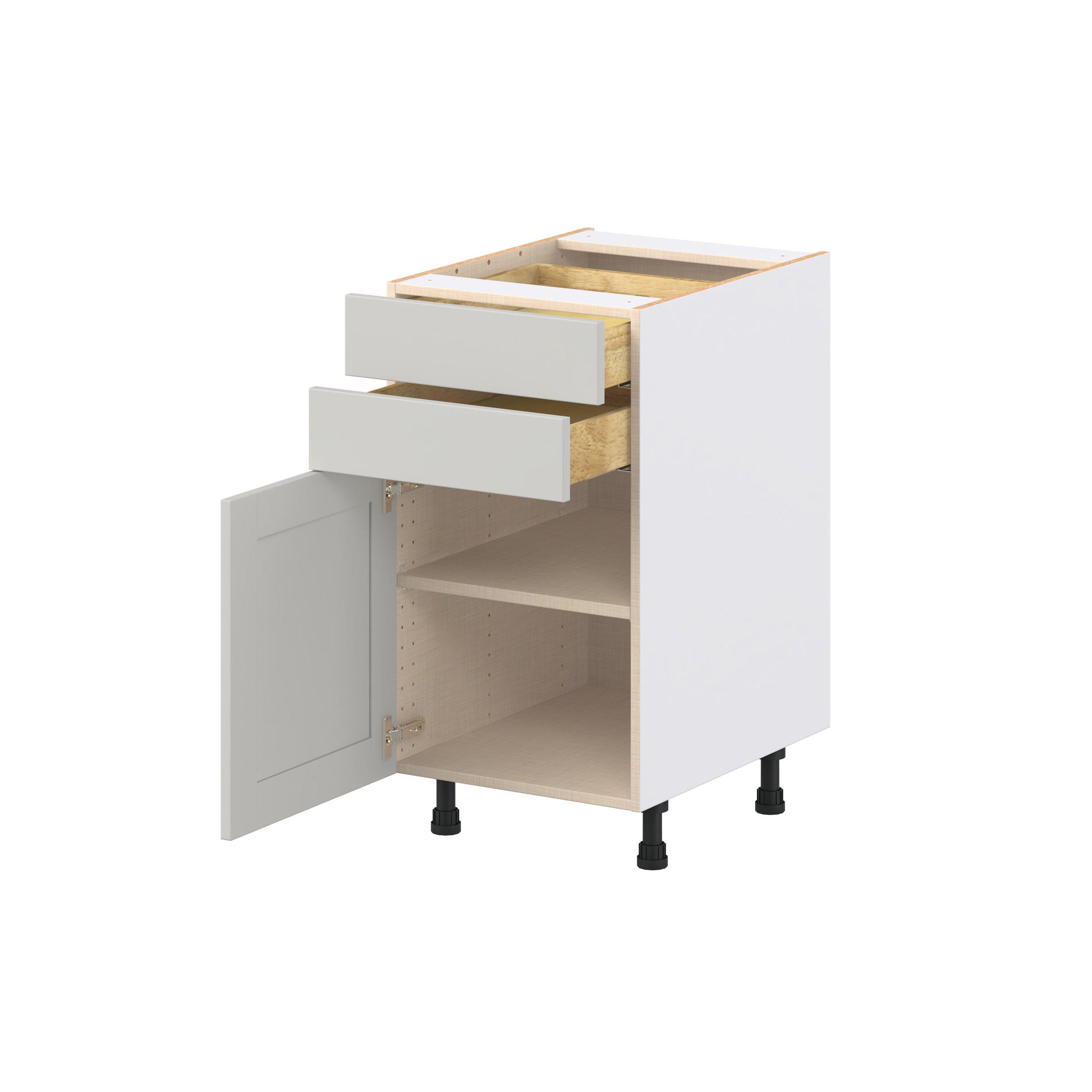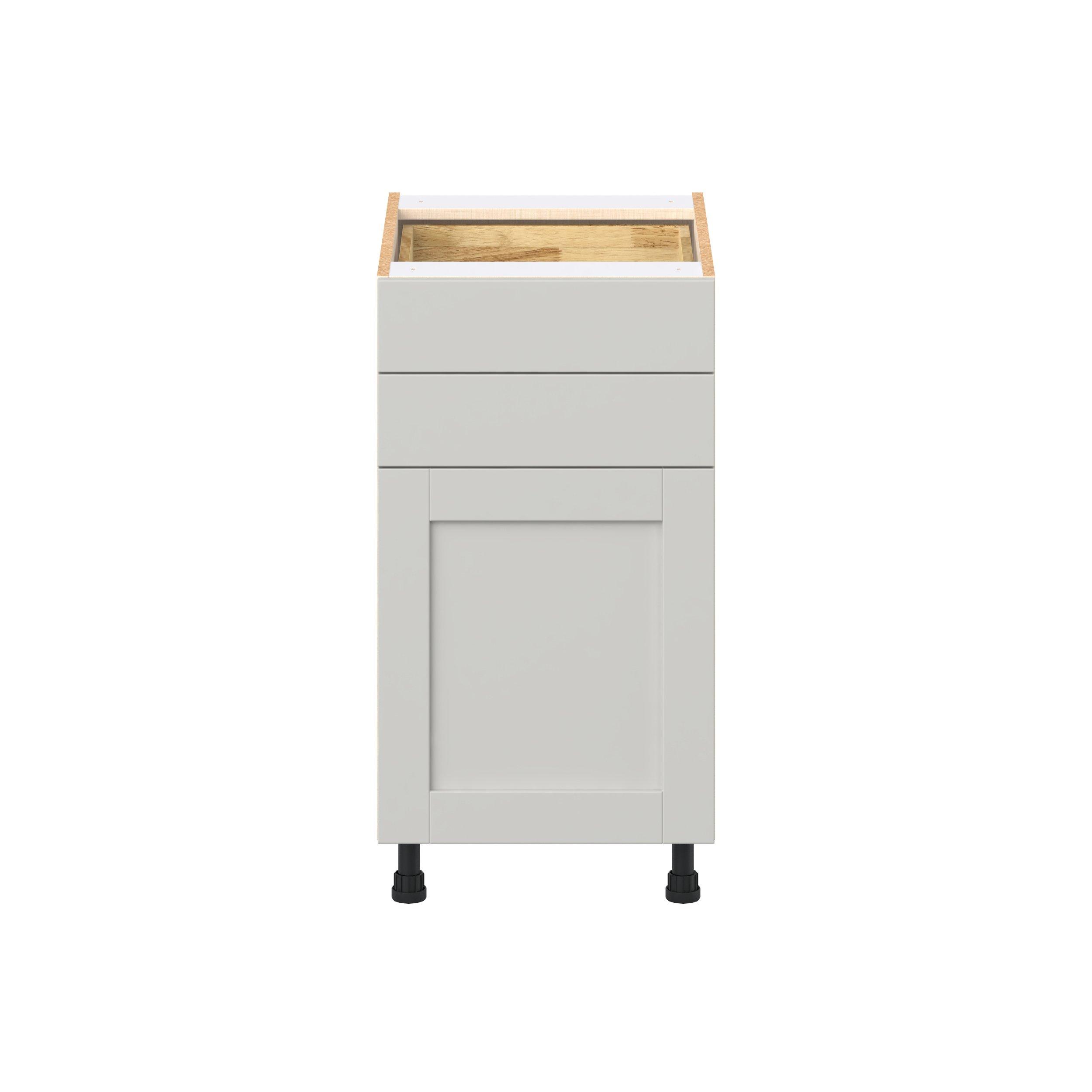 Enhance your home with the timeless beauty of Summerhill classic shaker cabinets, available in fresh bright white and neutral light gray colors. Crafted from one-piece MDF Studio Design Collection Summerhill 18 in. Light Gray Door and Drawer Base Cabinet is designed to resist hairline cracks while the easy-to-clean finish stands up to stains and moisture. Featuring 5-piece doors and dovetail drawer joints, these cabinets offer durability and elegance. This collection combines style with everyday storage solutions.