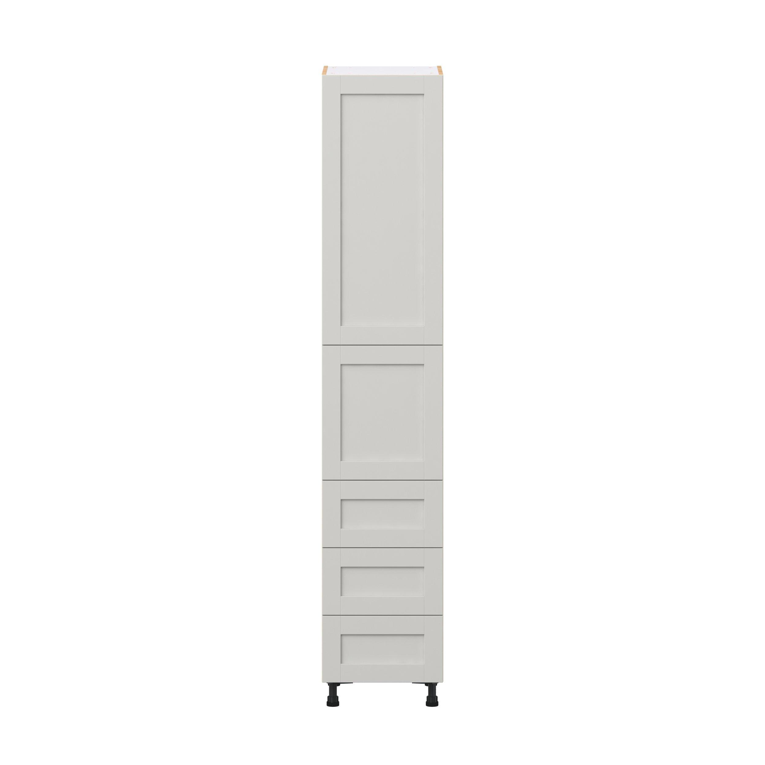 Enhance your home with the timeless beauty of Summerhill classic shaker cabinets, available in fresh bright white and neutral light gray colors. Crafted from one-piece MDF Studio Design Collection Summerhill 18 in. Light Gray Door and Drawer Pantry Cabinet with Inner Pull-Out is designed to resist hairline cracks while the easy-to-clean finish stands up to stains and moisture. Featuring 5-piece doors and dovetail drawer joints, these cabinets offer durability and elegance. This collection combines style with everyday storage solutions.