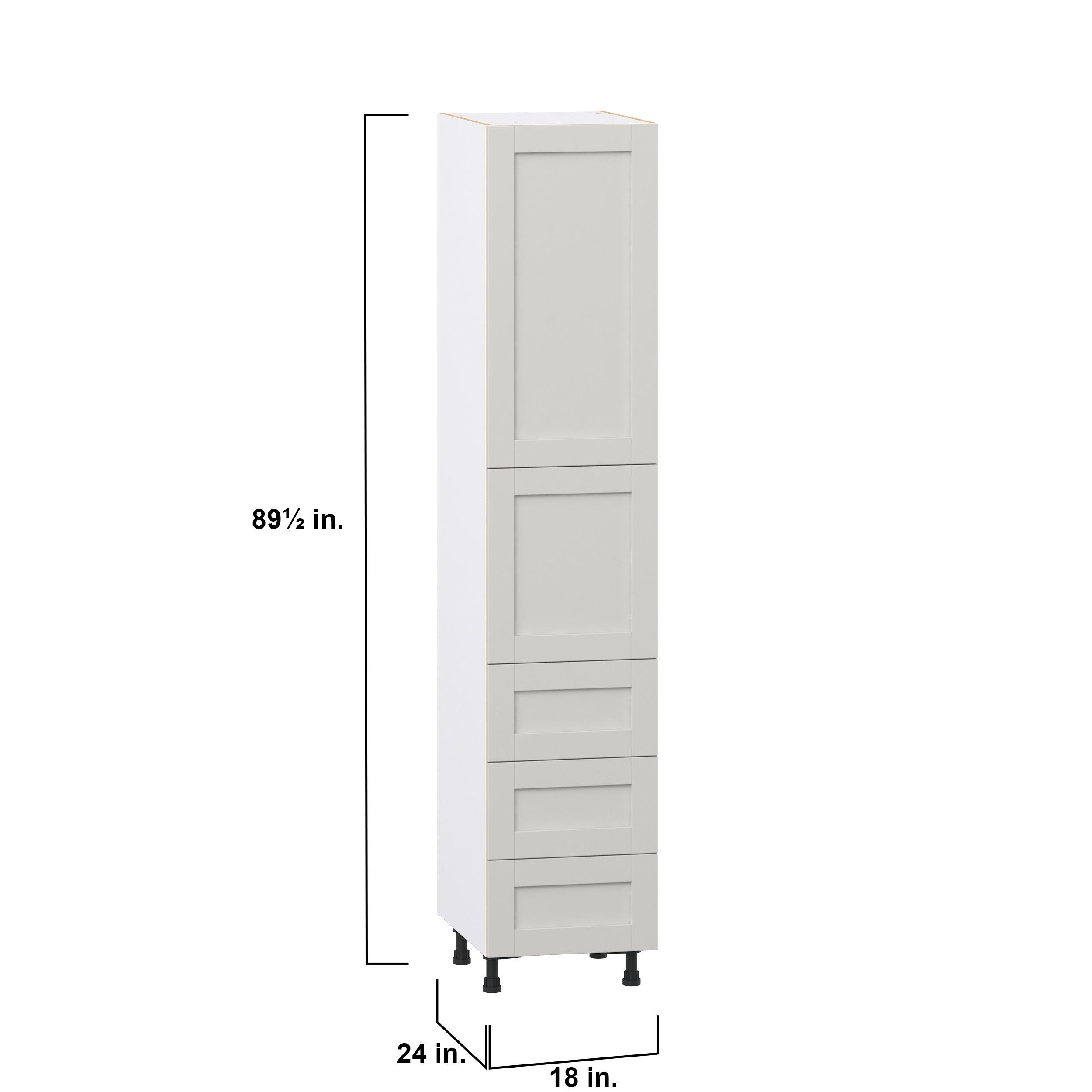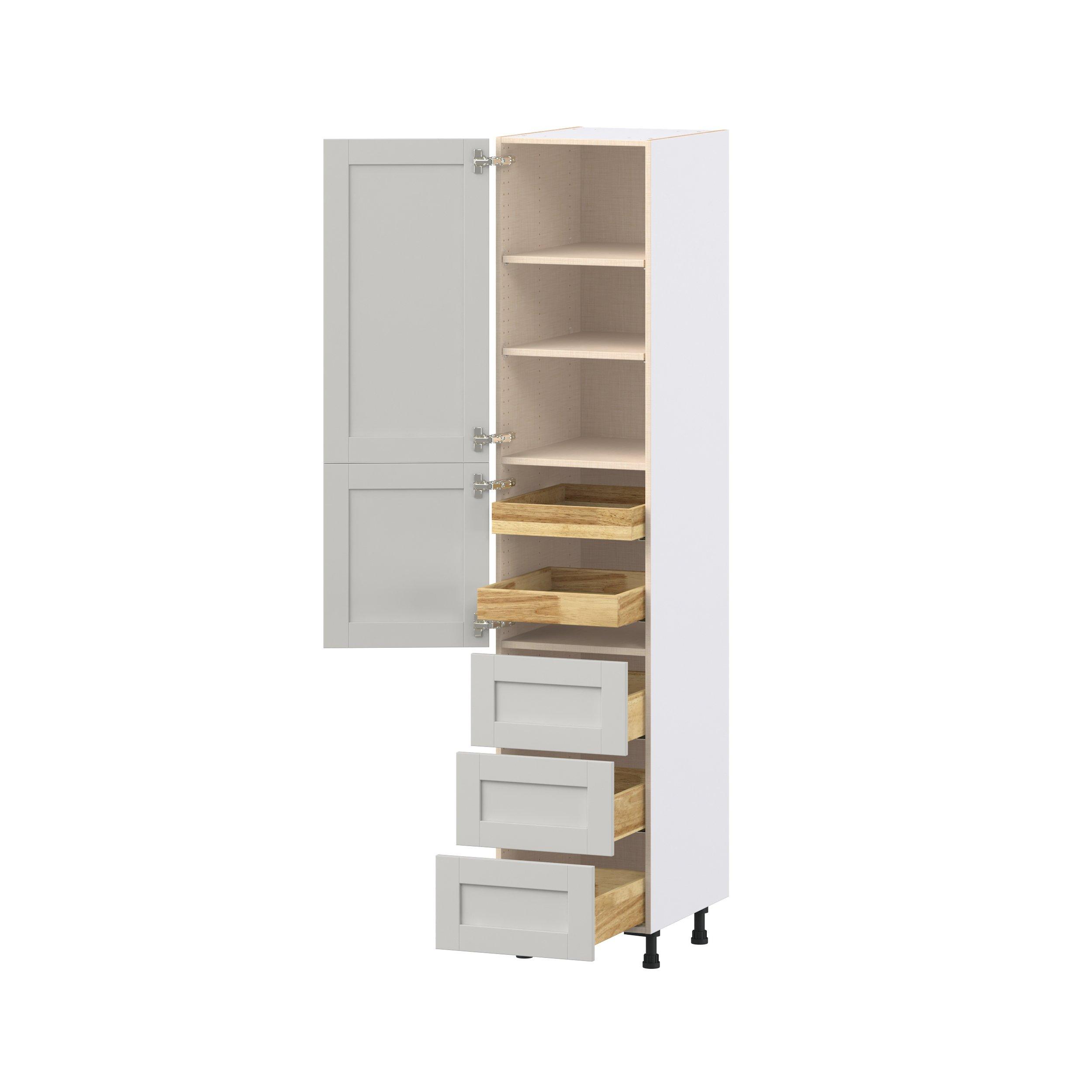 Enhance your home with the timeless beauty of Summerhill classic shaker cabinets, available in fresh bright white and neutral light gray colors. Crafted from one-piece MDF Studio Design Collection Summerhill 18 in. Light Gray Door and Drawer Pantry Cabinet with Inner Pull-Out is designed to resist hairline cracks while the easy-to-clean finish stands up to stains and moisture. Featuring 5-piece doors and dovetail drawer joints, these cabinets offer durability and elegance. This collection combines style with everyday storage solutions.