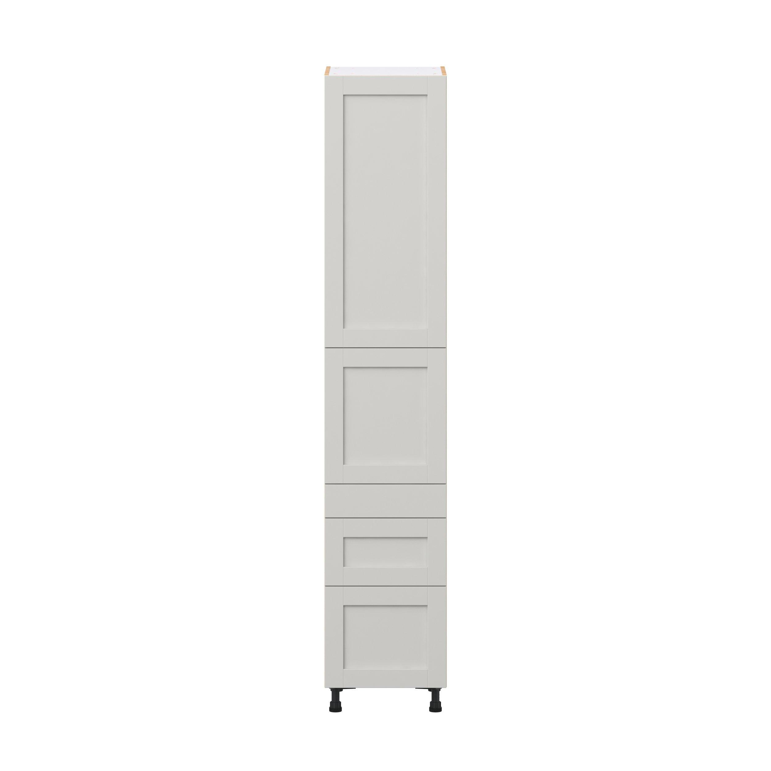 Enhance your home with the timeless beauty of Summerhill classic shaker cabinets, available in fresh bright white and neutral light gray colors. Crafted from one-piece MDF Studio Design Collection Summerhill 18 in. Light Gray Door and Drawer Pantry Cabinet with Inner Pull-Out is designed to resist hairline cracks while the easy-to-clean finish stands up to stains and moisture. Featuring 5-piece doors and dovetail drawer joints, these cabinets offer durability and elegance. This collection combines style with everyday storage solutions.