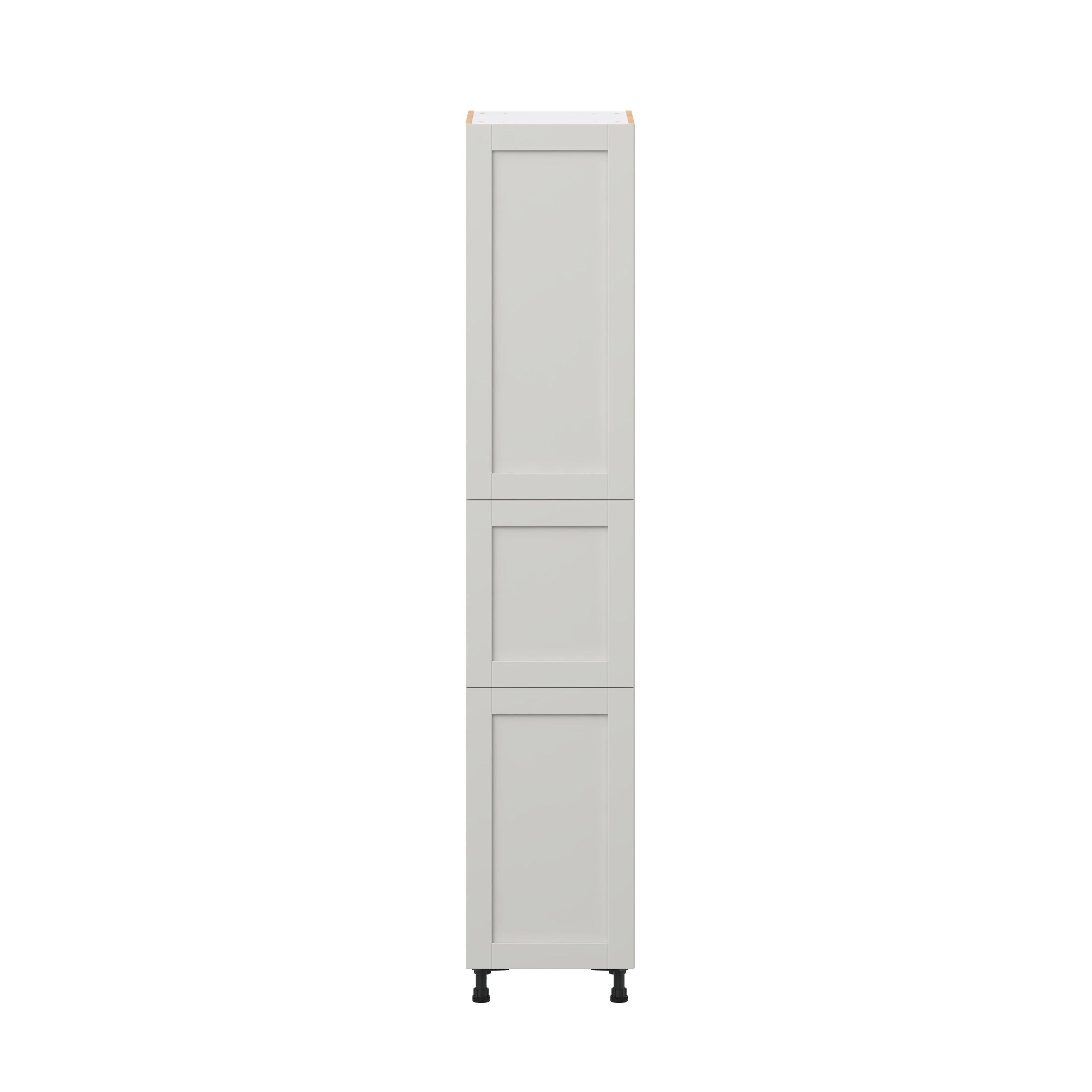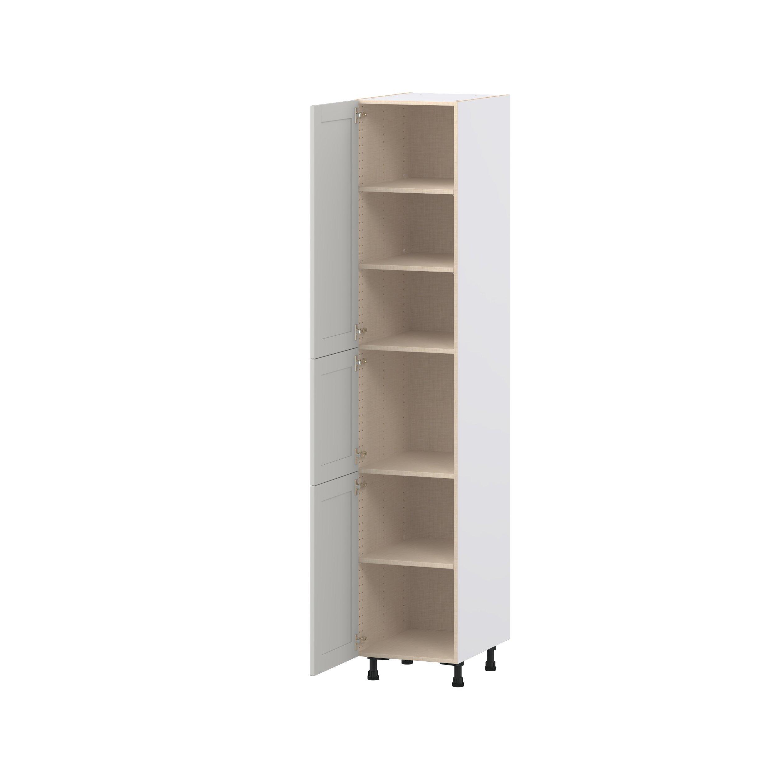 Enhance your home with the timeless beauty of Summerhill classic shaker cabinets, available in fresh bright white and neutral light gray colors. Crafted from one-piece MDF Studio Design Collection Summerhill 18 in. Light Gray Door Pantry Cabinet is designed to resist hairline cracks while the easy-to-clean finish stands up to stains and moisture. Featuring 5-piece doors and dovetail drawer joints, these cabinets offer durability and elegance. This collection combines style with everyday storage solutions.