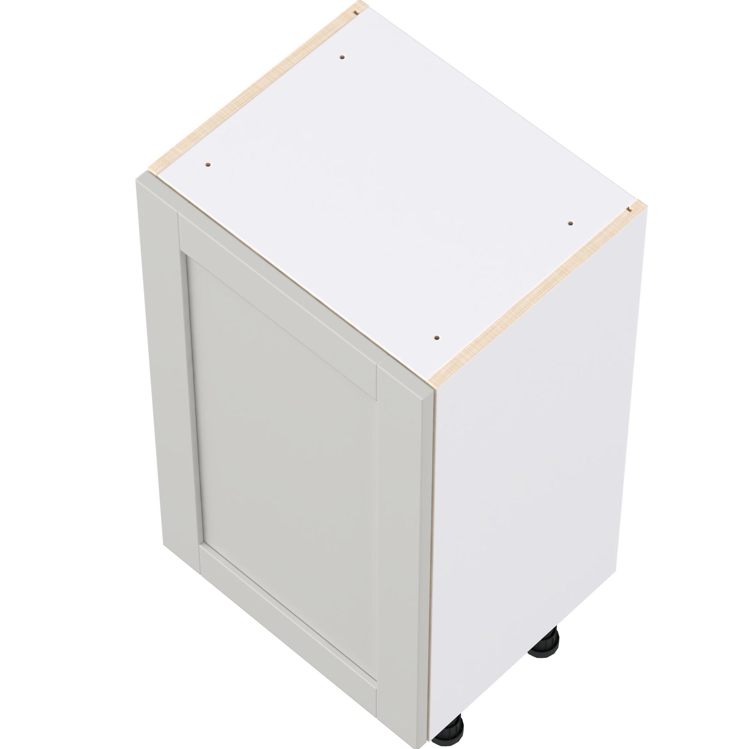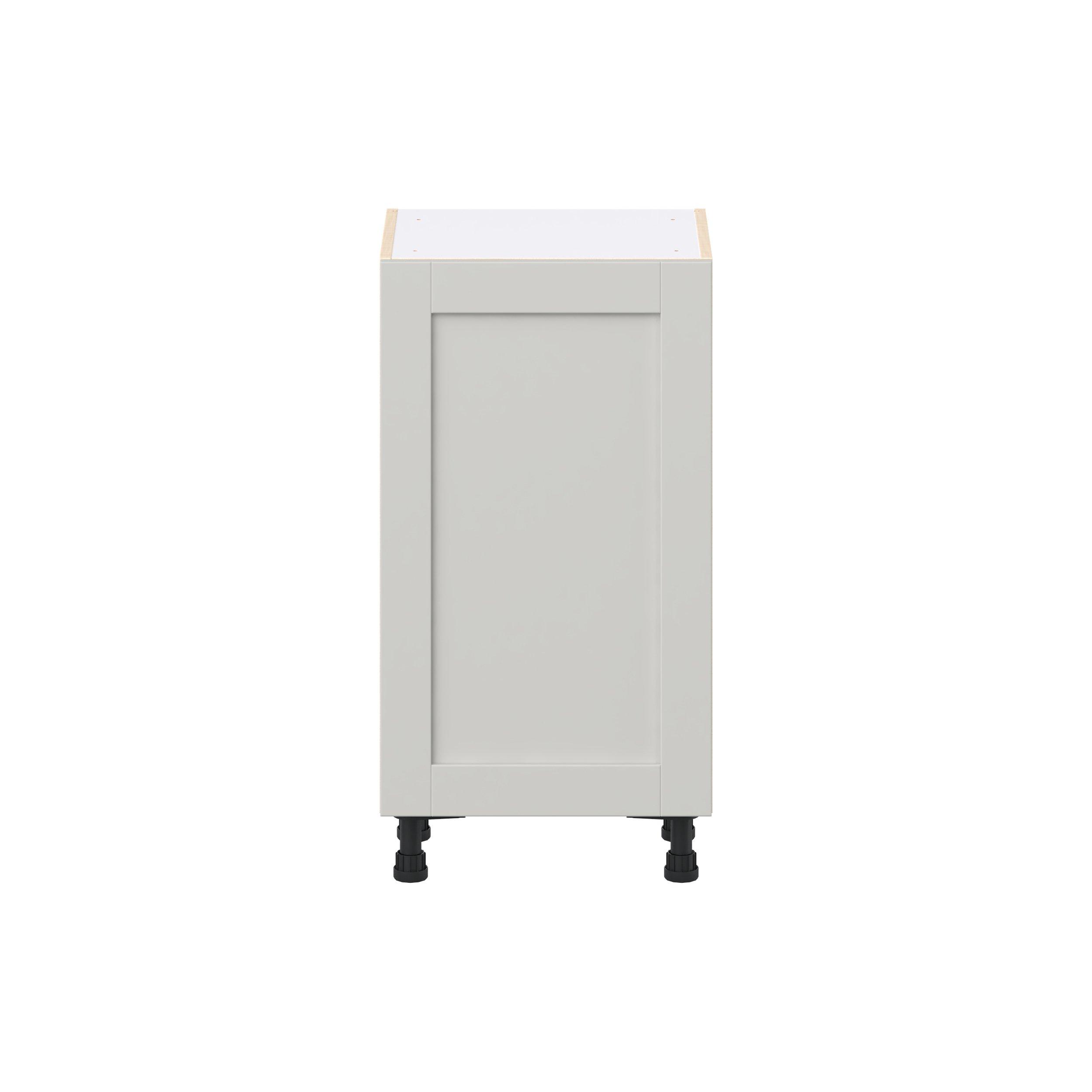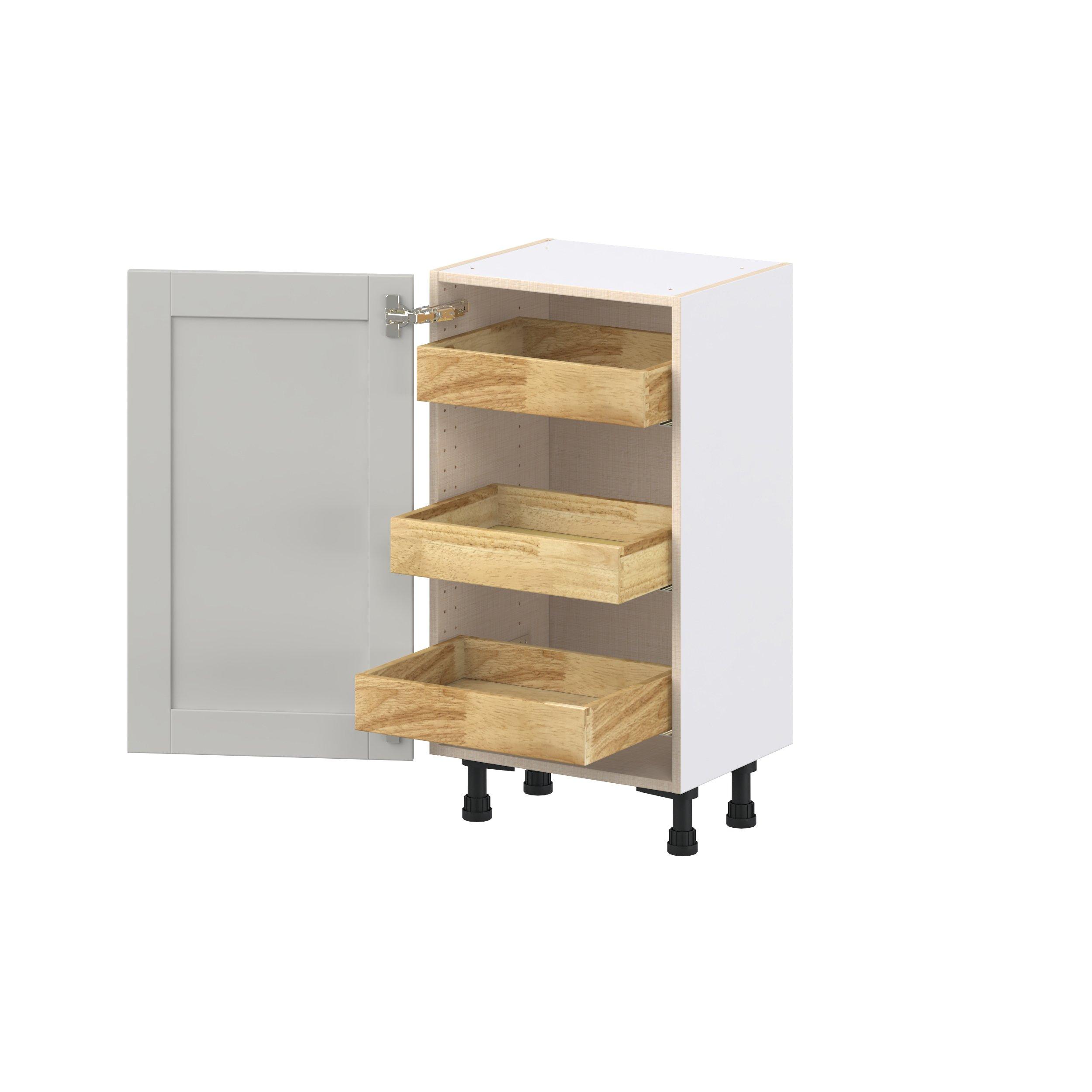 Enhance your home with the timeless beauty of Summerhill classic shaker cabinets, available in fresh bright white and neutral light gray colors. Crafted from one-piece MDF Studio Design Collection Summerhill 18 in. Light Gray Shallow Base Cabinet with Inner Pull-Out Drawer is designed to resist hairline cracks while the easy-to-clean finish stands up to stains and moisture. Featuring 5-piece doors and dovetail drawer joints, these cabinets offer durability and elegance. This collection combines style with everyday storage solutions.