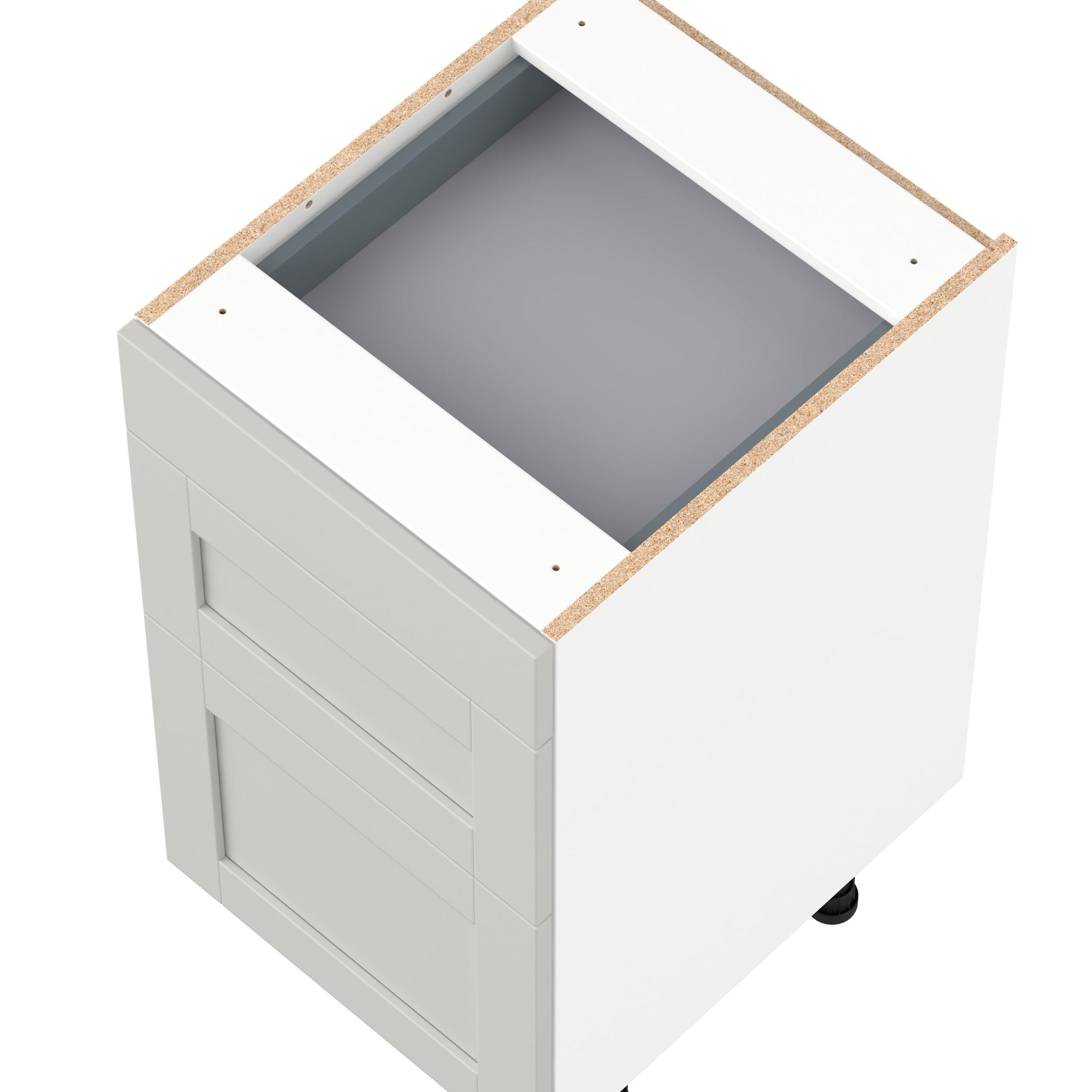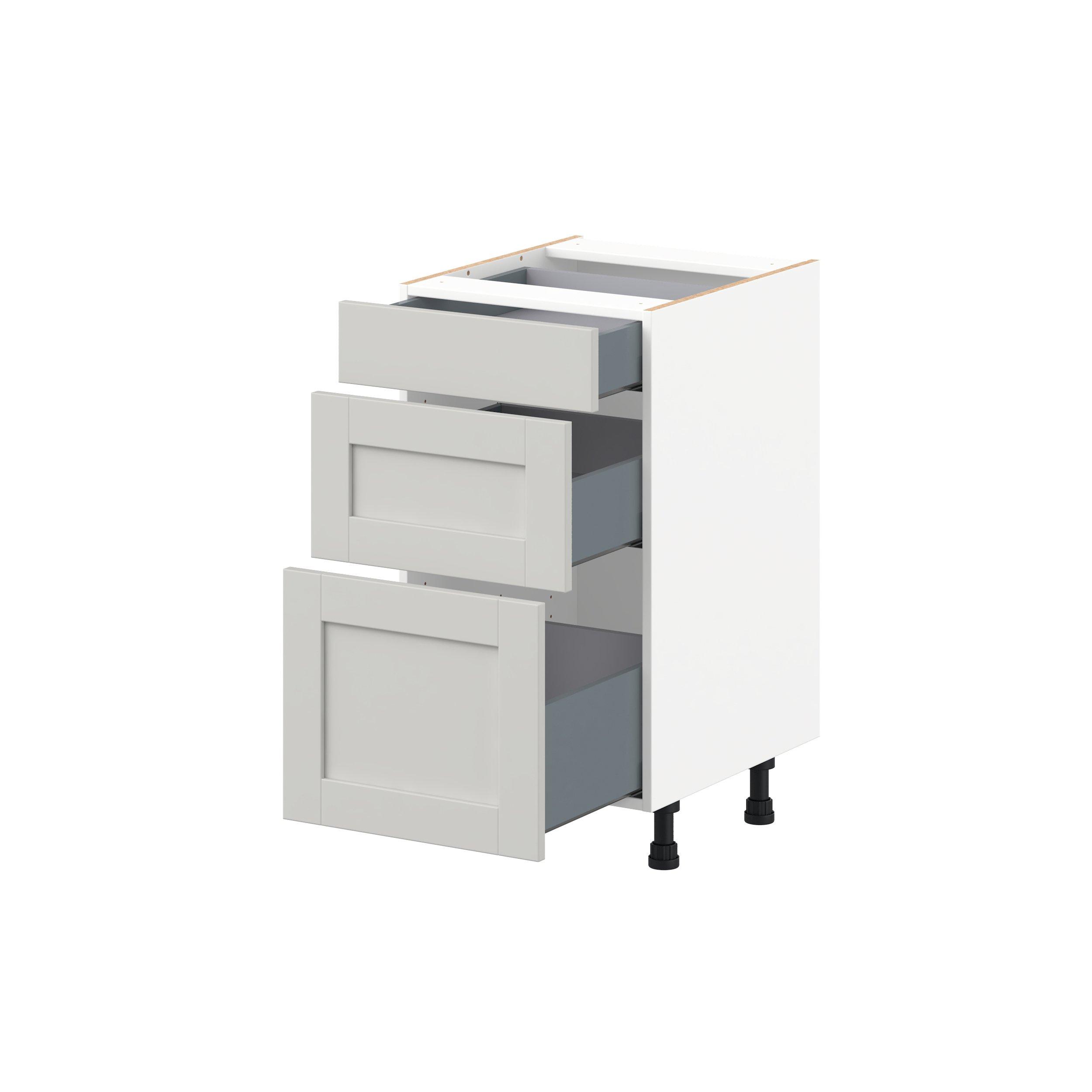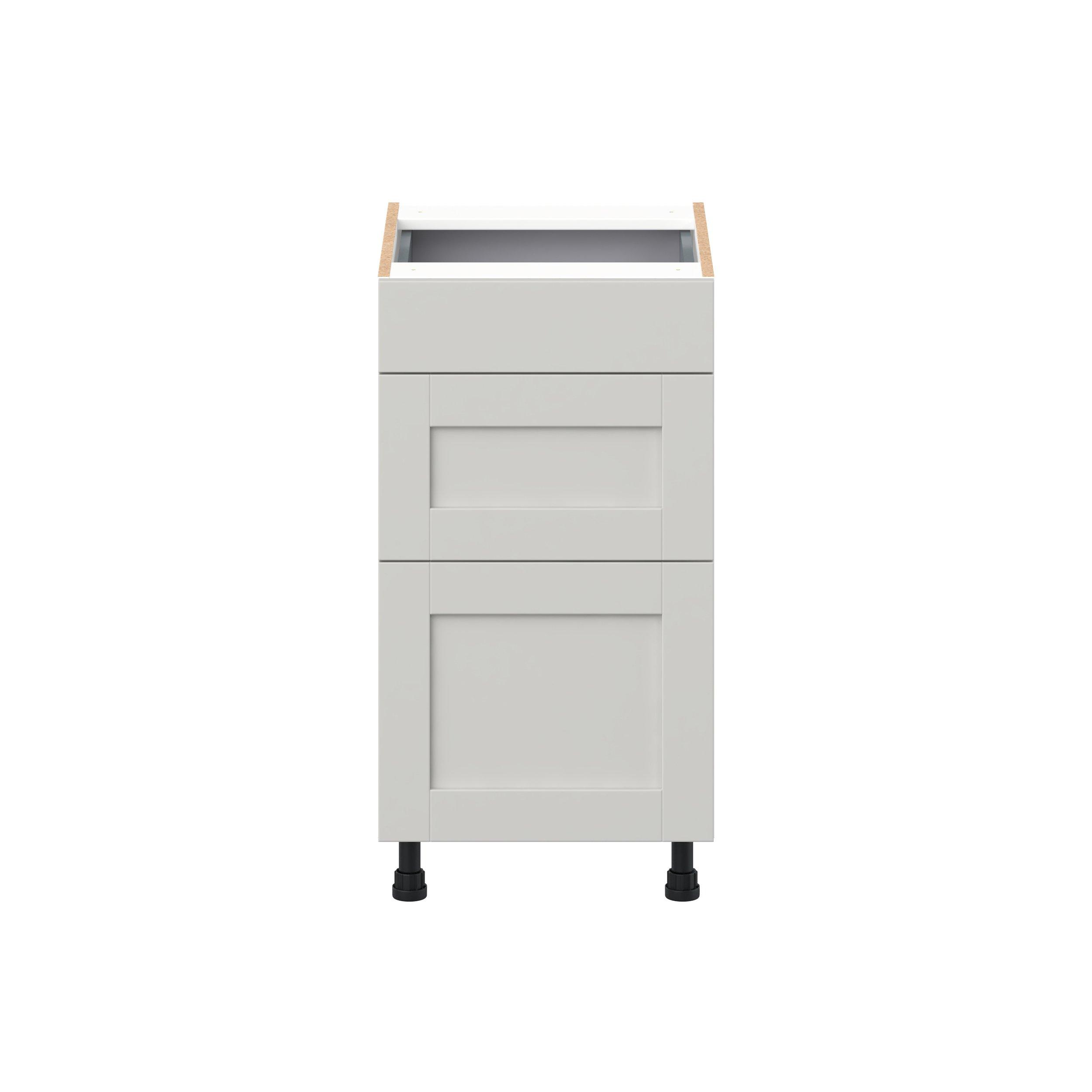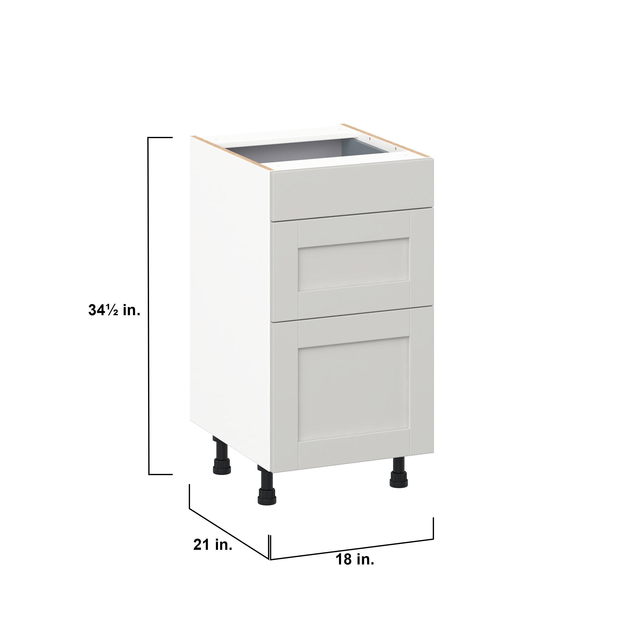 Enhance your home with the timeless beauty of Summerhill classic shaker cabinets, available in fresh bright white and neutral light gray colors. Crafted from one-piece MDF Studio Design Collection Summerhill 18 in. Light Gray Vanity Drawer Base Cabinet is designed to resist hairline cracks while the easy-to-clean finish stands up to stains and moisture. Featuring 5-piece doors and dovetail drawer joints, these cabinets offer durability and elegance. This collection combines style with everyday storage solutions.
