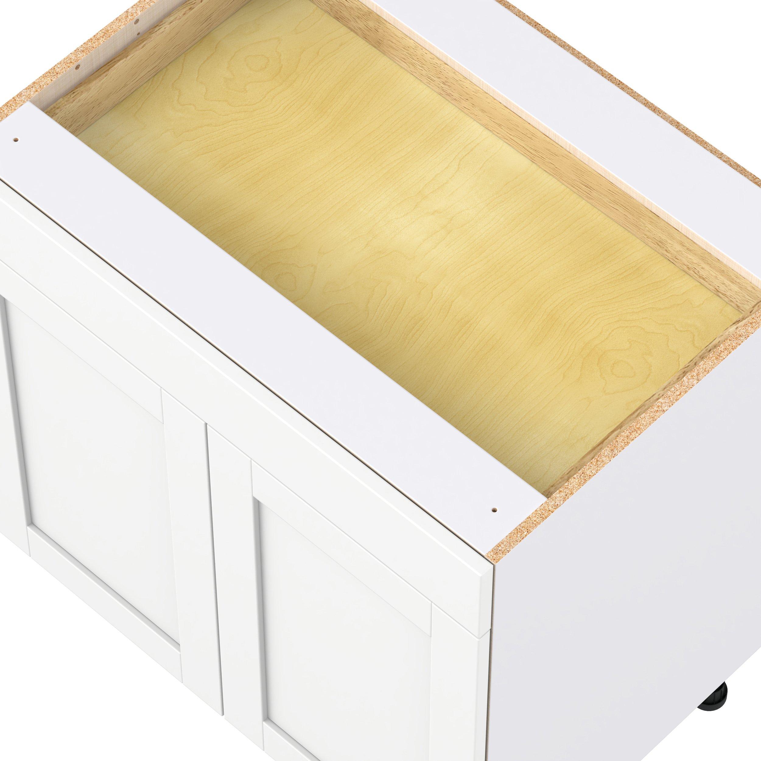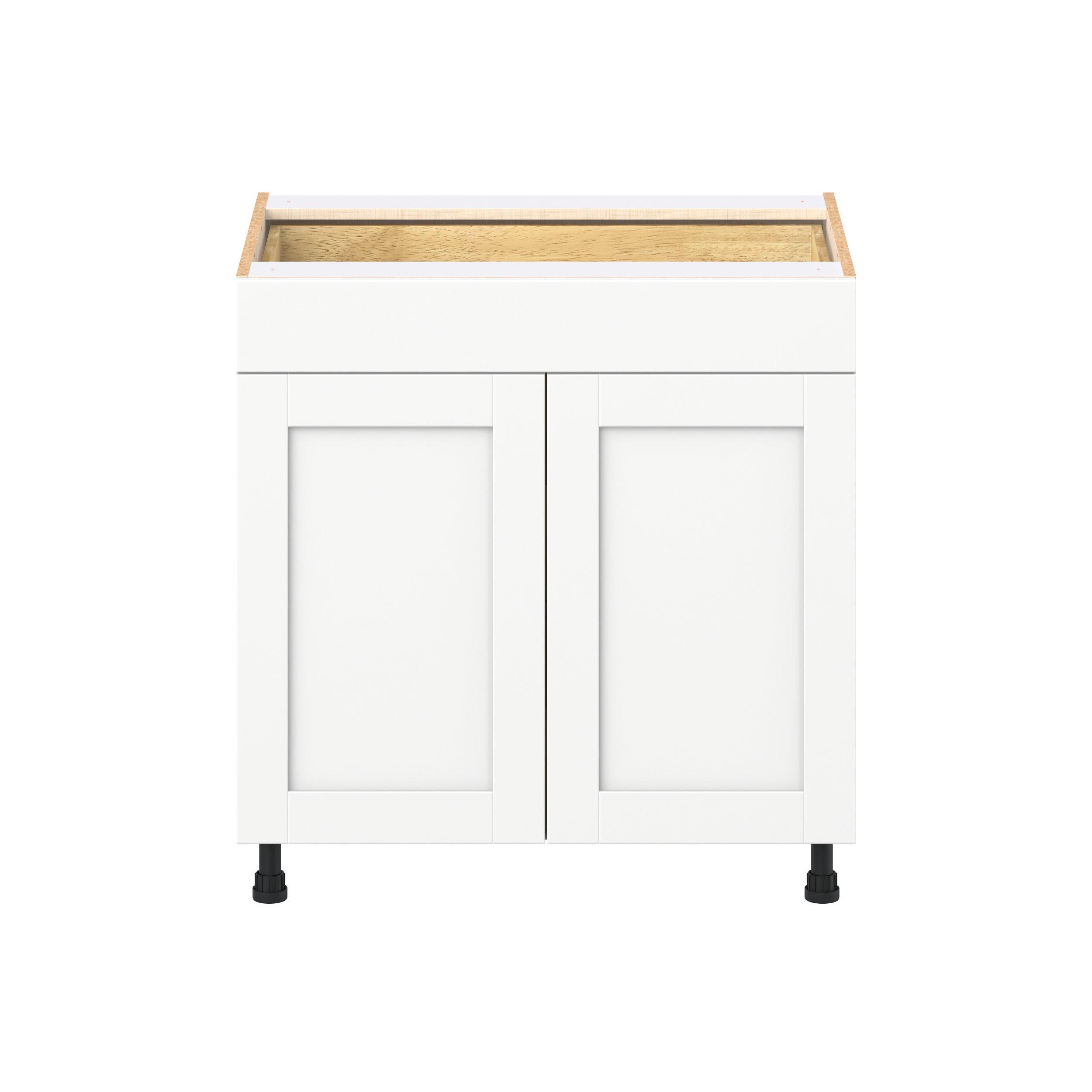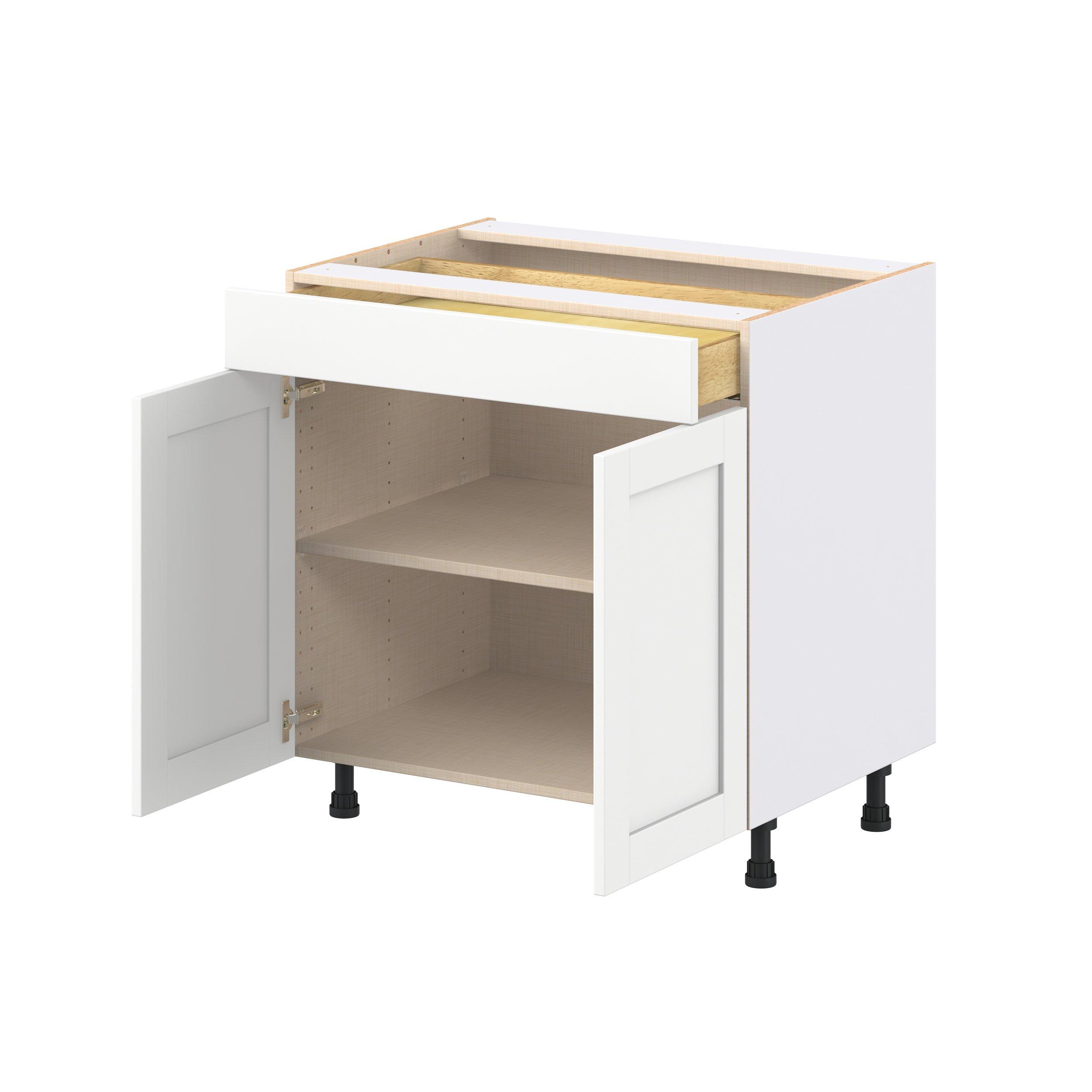 Enhance your home with the timeless beauty of Summerhill classic shaker cabinets, available in fresh bright white and neutral light gray colors. Crafted from one-piece MDF Studio Design Collection Summerhill 33 in. Bright White Door and Drawer Base Cabinet is designed to resist hairline cracks while the easy-to-clean finish stands up to stains and moisture. Featuring 5-piece doors and dovetail drawer joints, these cabinets offer durability and elegance. This collection combines style with everyday storage solutions.
