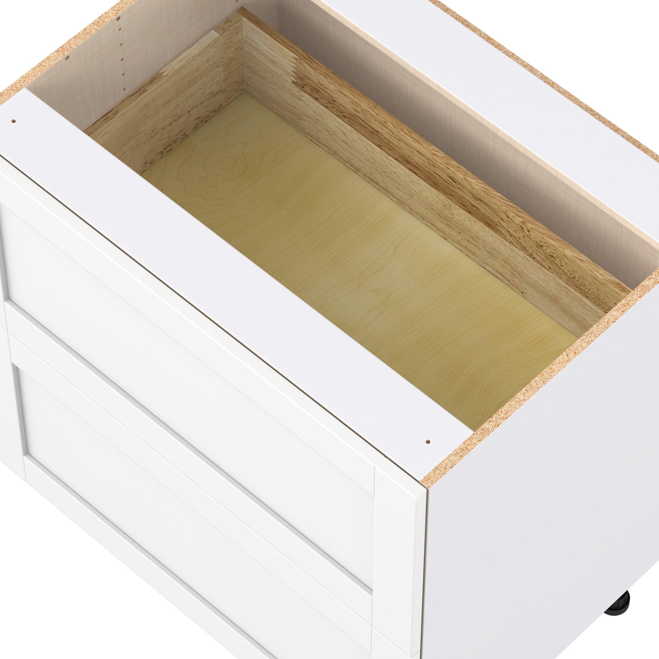 Enhance your home with the timeless beauty of Summerhill classic shaker cabinets, available in fresh bright white and neutral light gray colors. Crafted from one-piece MDF Studio Design Collection Summerhill 33 in. Bright White Drawer Base Cabinet is designed to resist hairline cracks while the easy-to-clean finish stands up to stains and moisture. Featuring 5-piece doors and dovetail drawer joints, these cabinets offer durability and elegance. This collection combines style with everyday storage solutions.