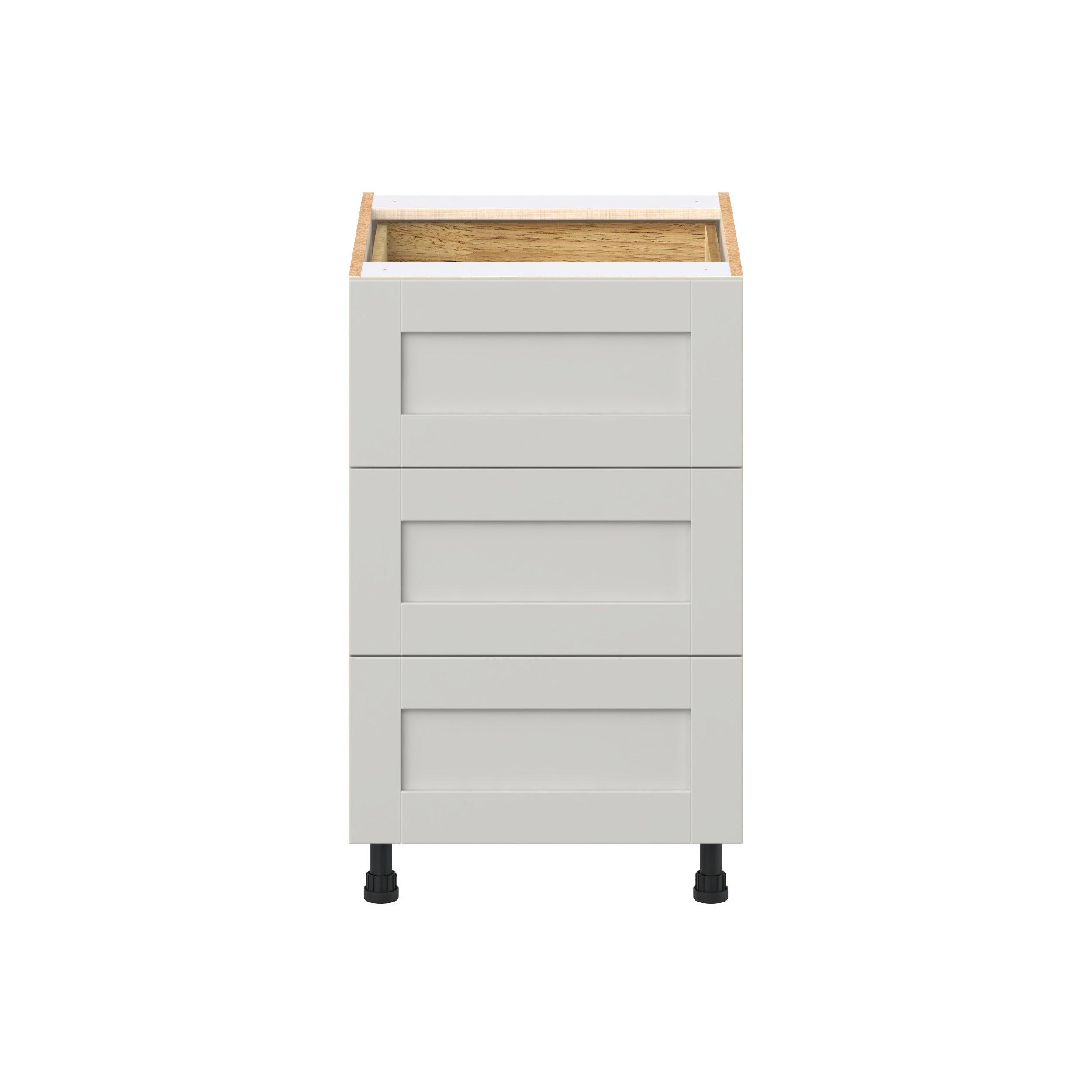 Enhance your home with the timeless beauty of Summerhill classic shaker cabinets, available in fresh bright white and neutral light gray colors. Crafted from one-piece MDF Studio Design Collection Summerhill 21 in. Light Gray Base Cabinet with Inner Pull-Out Drawer is designed to resist hairline cracks while the easy-to-clean finish stands up to stains and moisture. Featuring 5-piece doors and dovetail drawer joints, these cabinets offer durability and elegance. This collection combines style with everyday storage solutions.