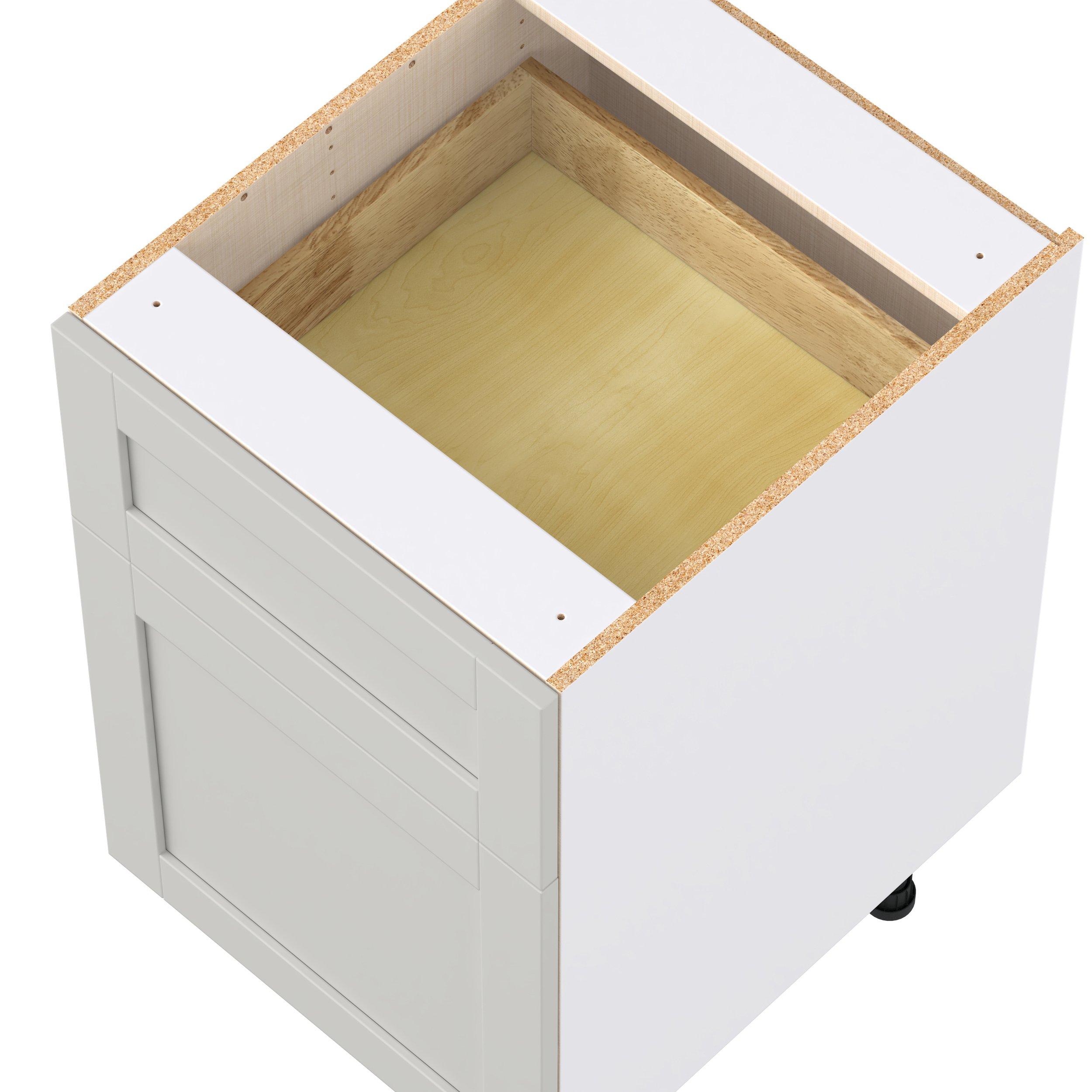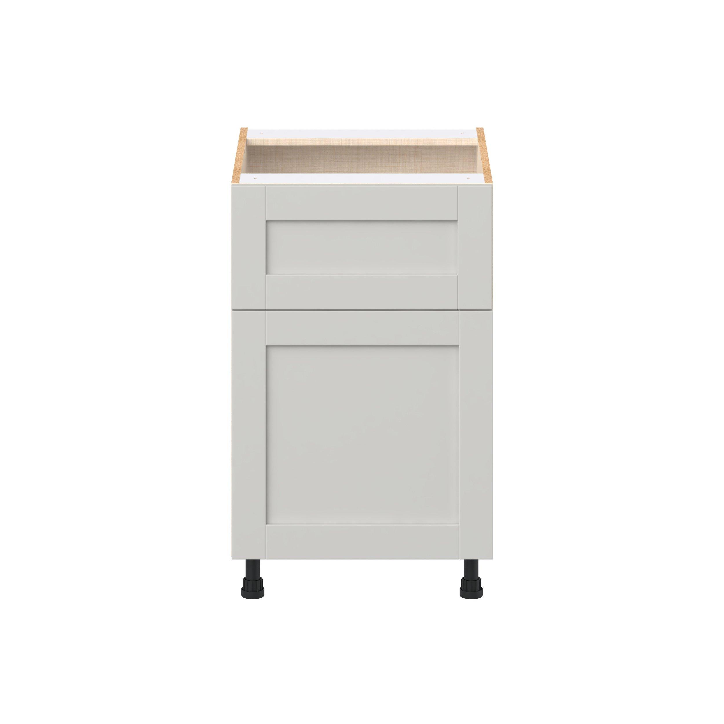 Enhance your home with the timeless beauty of Summerhill classic shaker cabinets, available in fresh bright white and neutral light gray colors. Crafted from one-piece MDF Studio Design Collection Summerhill 21 in. Light Gray Door and Drawer Base Cabinet is designed to resist hairline cracks while the easy-to-clean finish stands up to stains and moisture. Featuring 5-piece doors and dovetail drawer joints, these cabinets offer durability and elegance. This collection combines style with everyday storage solutions.