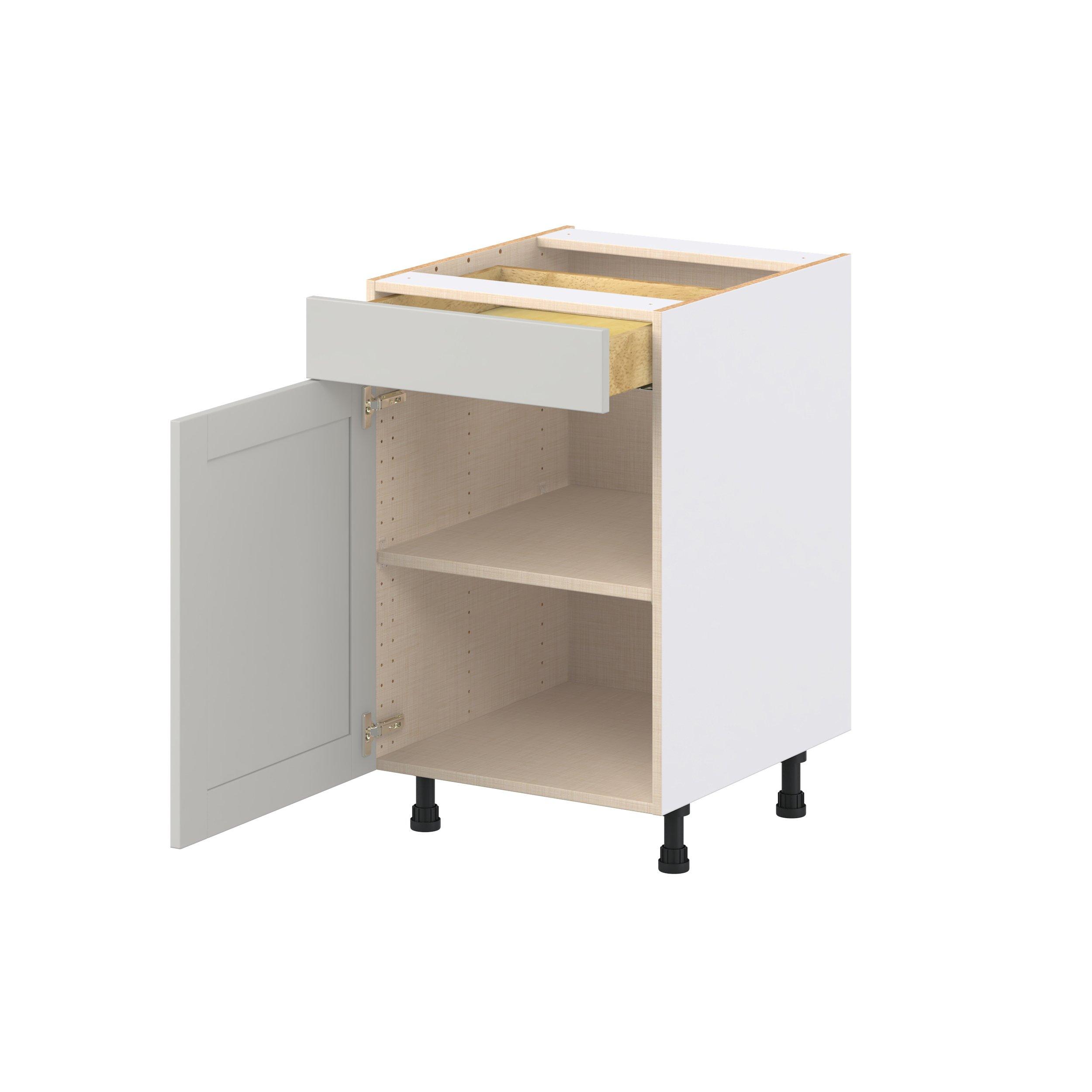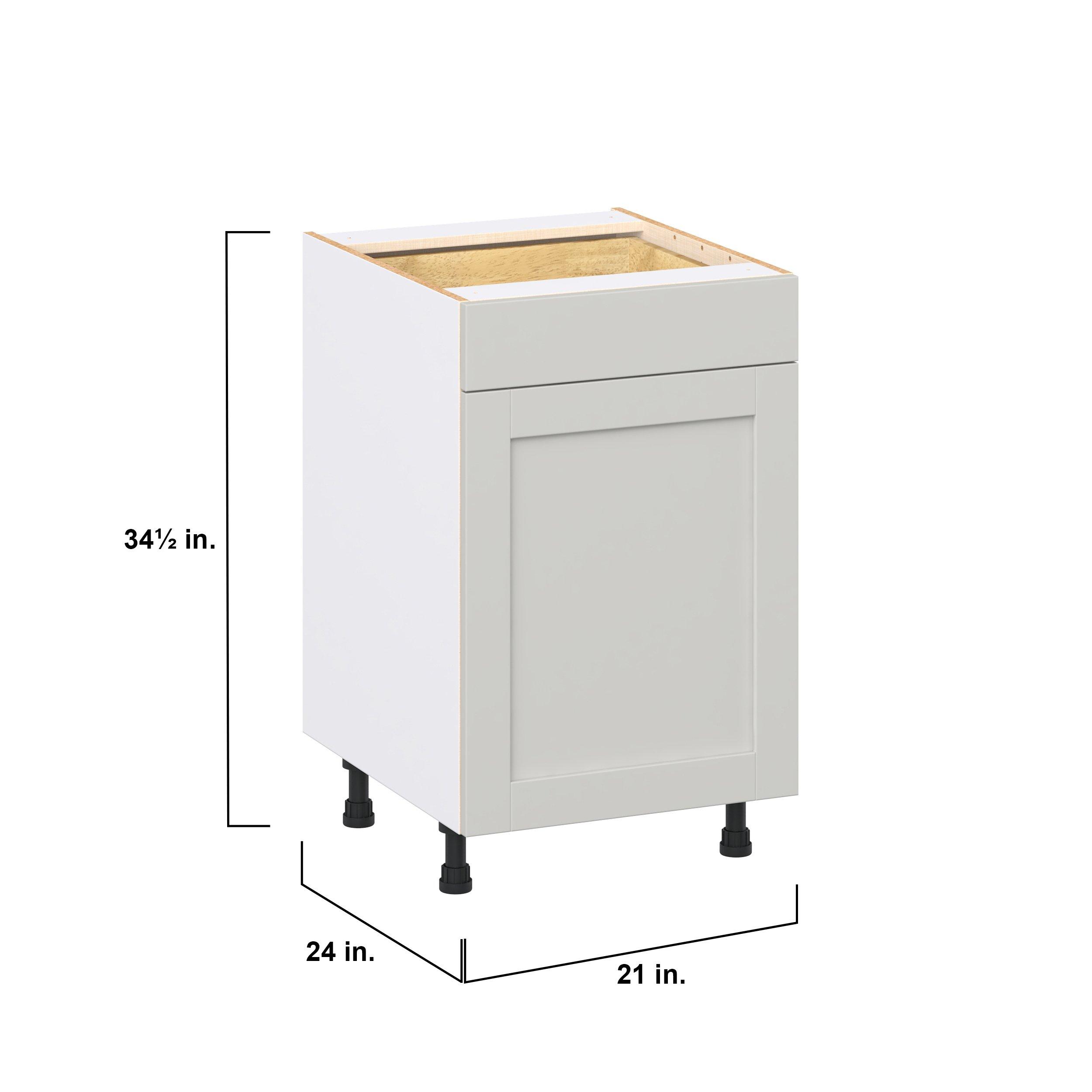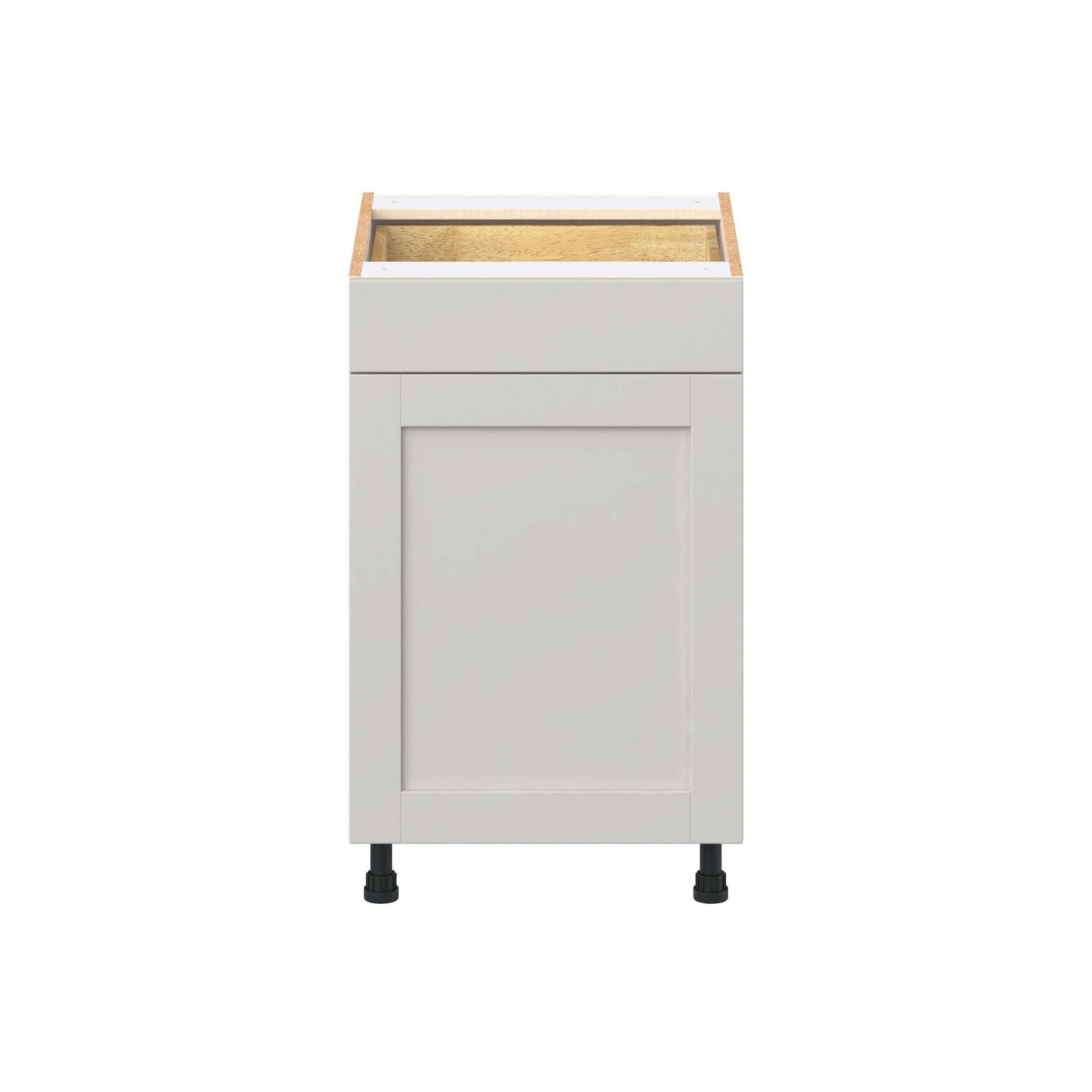 Enhance your home with the timeless beauty of Summerhill classic shaker cabinets, available in fresh bright white and neutral light gray colors. Crafted from one-piece MDF Studio Design Collection Summerhill 21 in. Light Gray Door and Drawer Base Cabinet is designed to resist hairline cracks while the easy-to-clean finish stands up to stains and moisture. Featuring 5-piece doors and dovetail drawer joints, these cabinets offer durability and elegance. This collection combines style with everyday storage solutions.