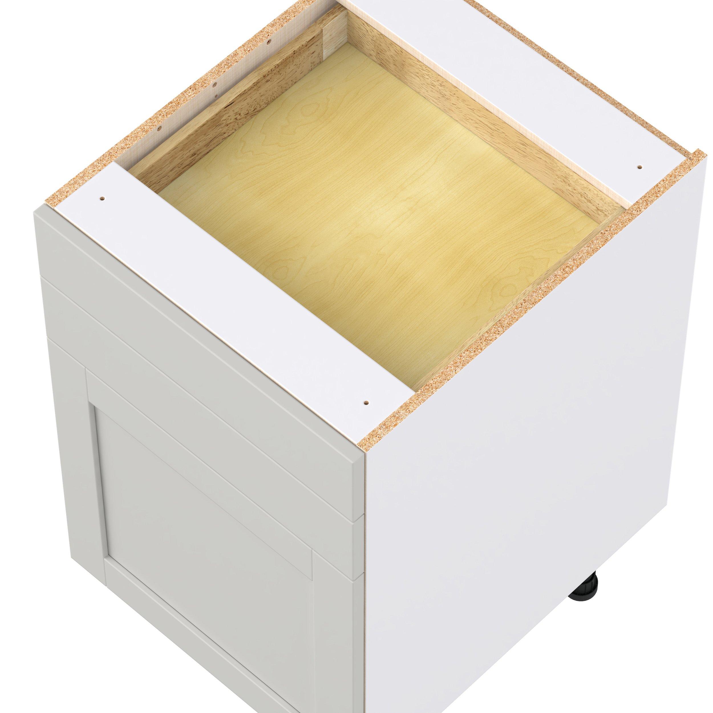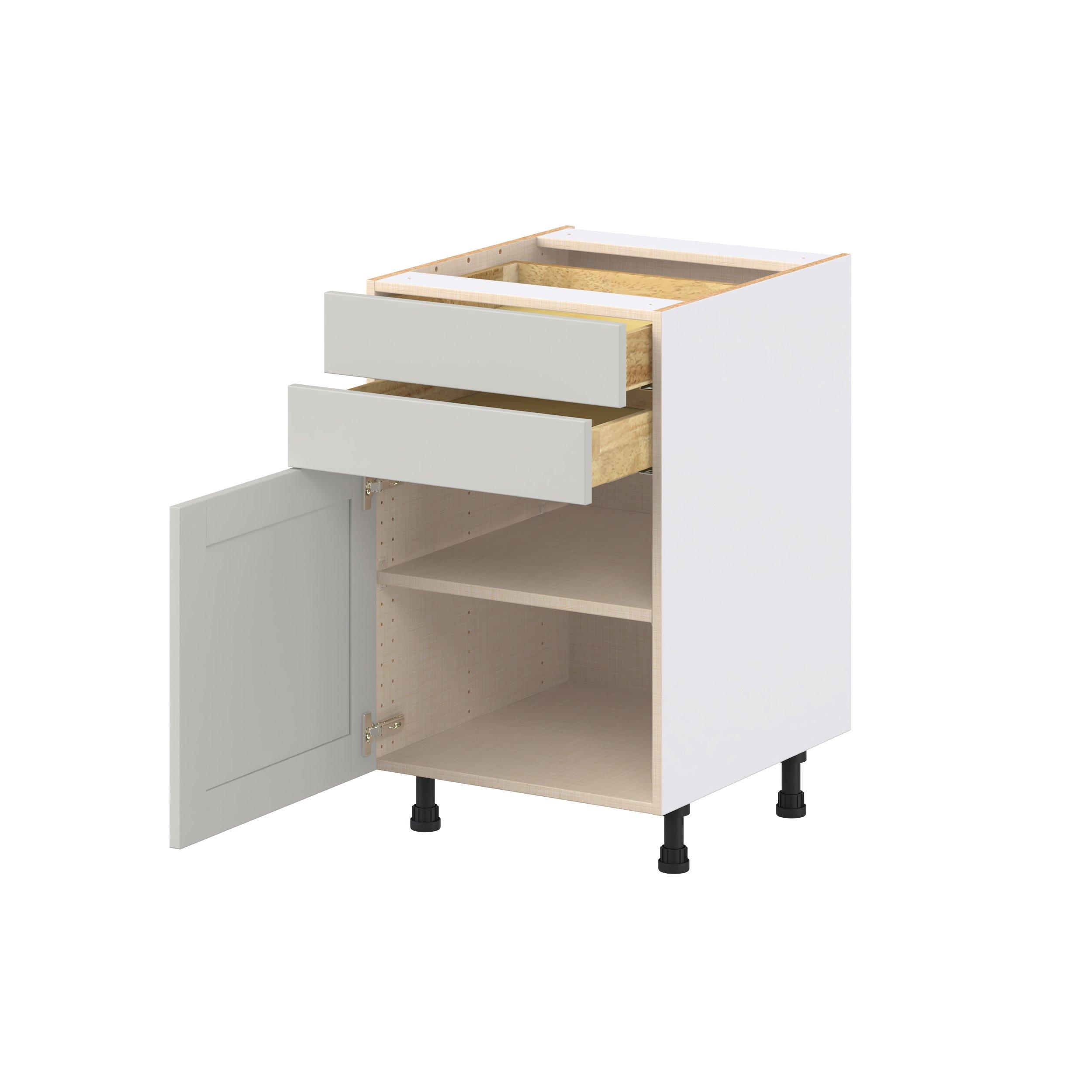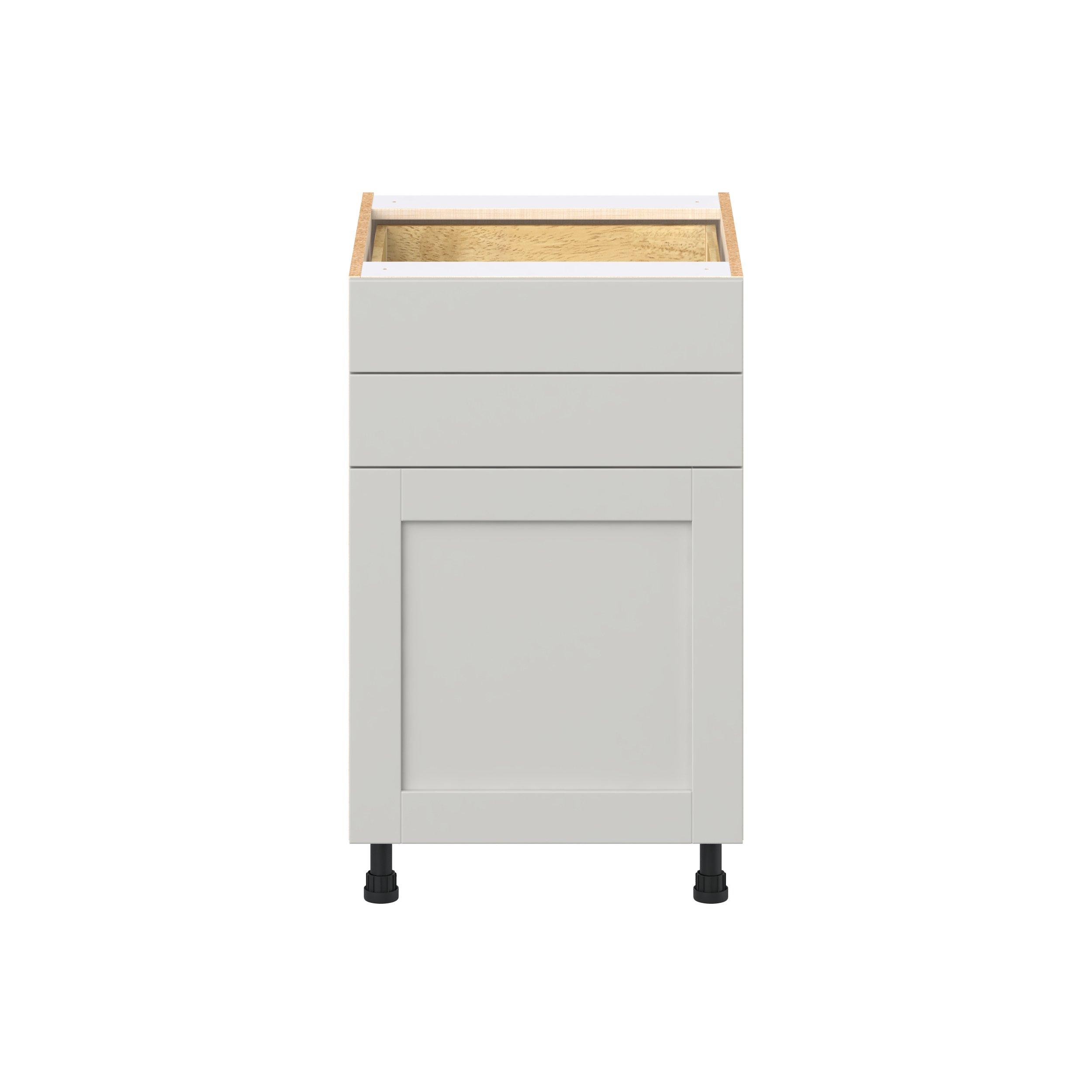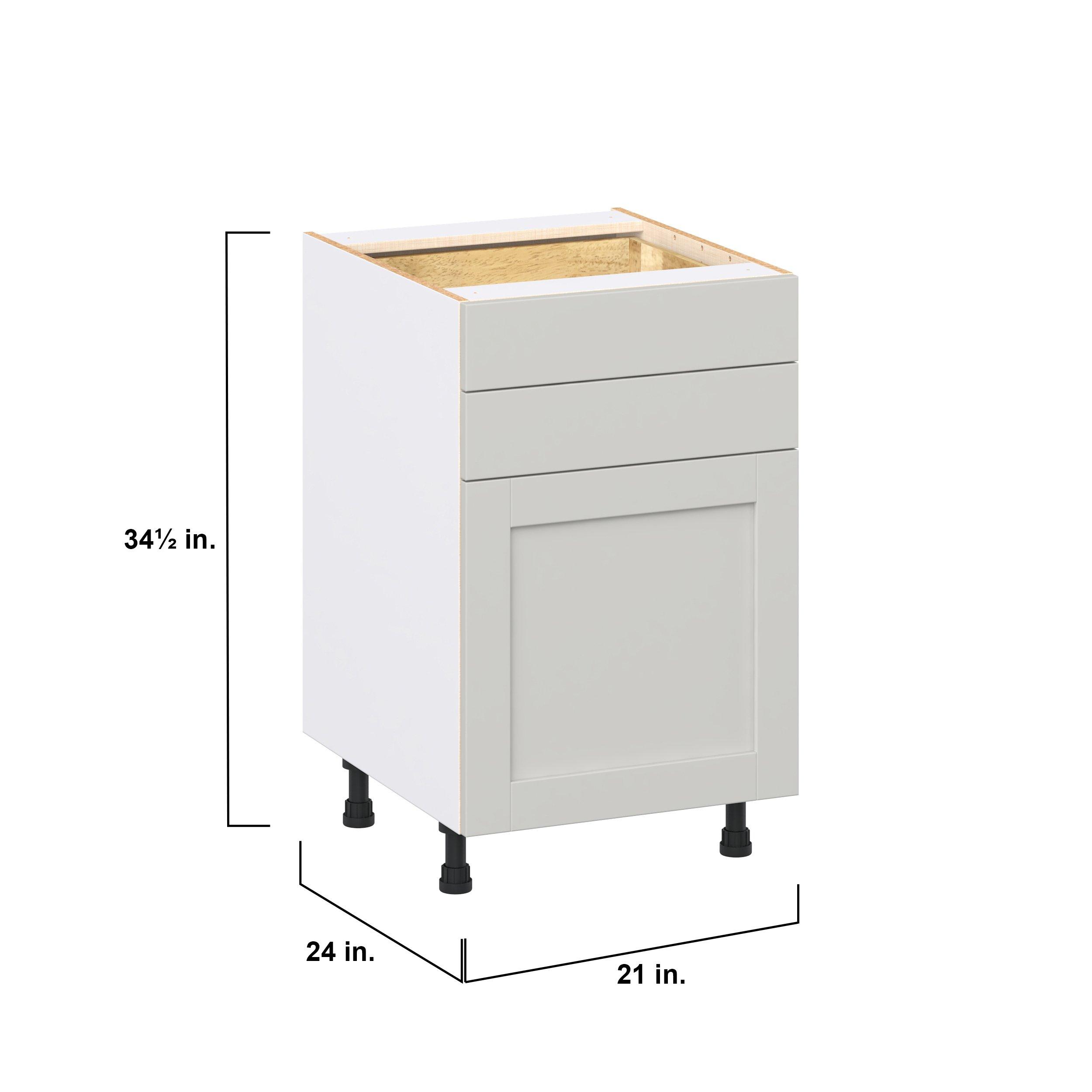 Enhance your home with the timeless beauty of Summerhill classic shaker cabinets, available in fresh bright white and neutral light gray colors. Crafted from one-piece MDF Studio Design Collection Summerhill 21 in. Light Gray Door and Drawer Base Cabinet is designed to resist hairline cracks while the easy-to-clean finish stands up to stains and moisture. Featuring 5-piece doors and dovetail drawer joints, these cabinets offer durability and elegance. This collection combines style with everyday storage solutions.