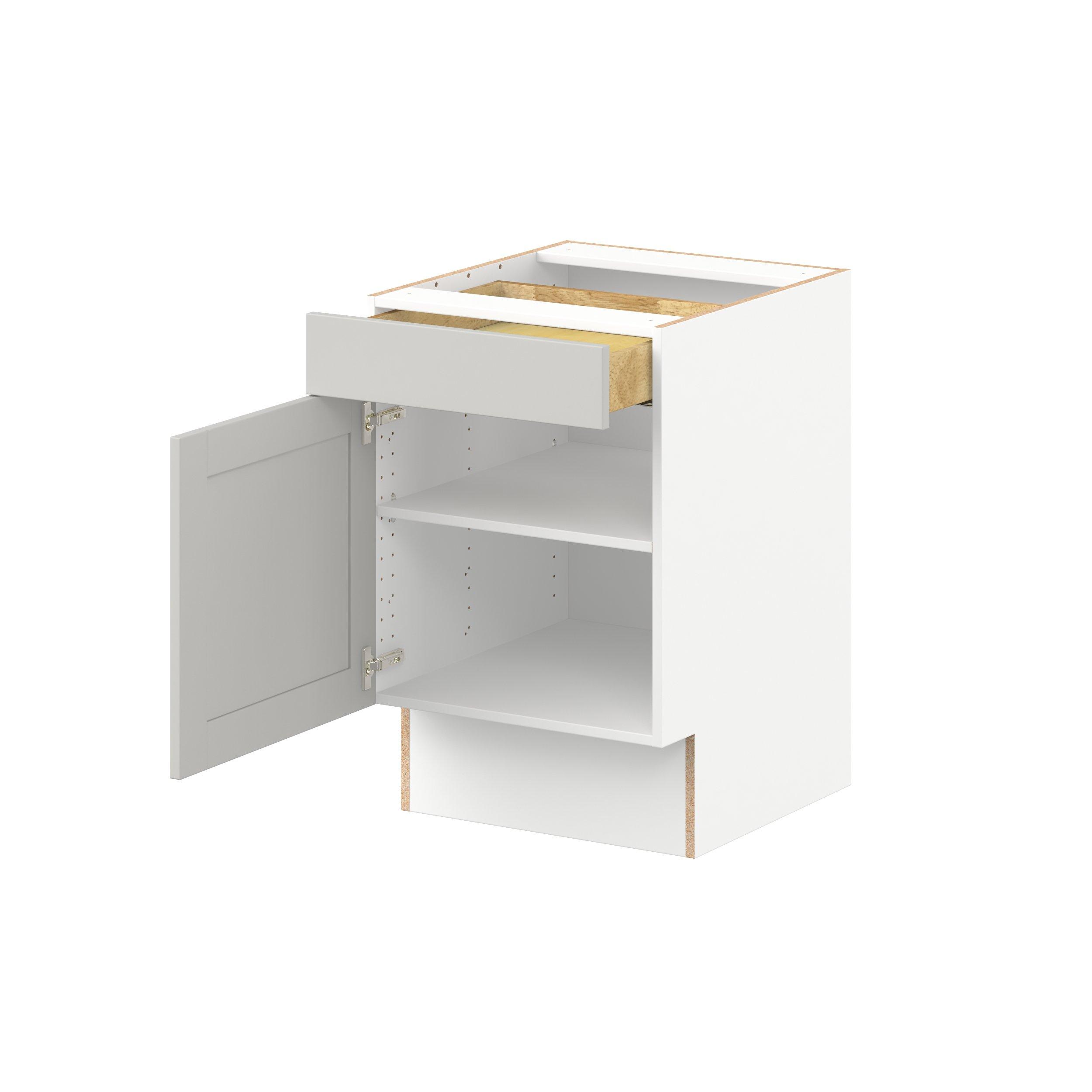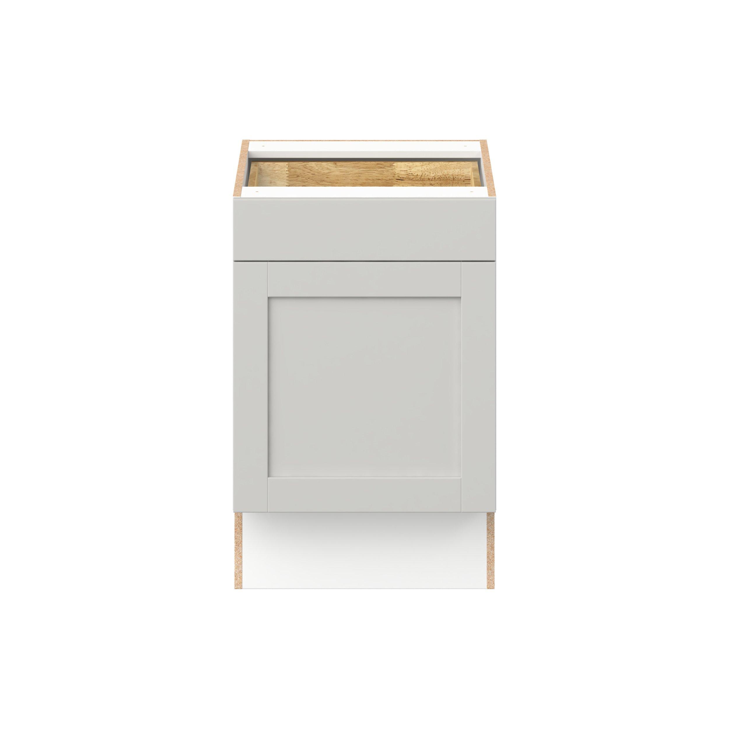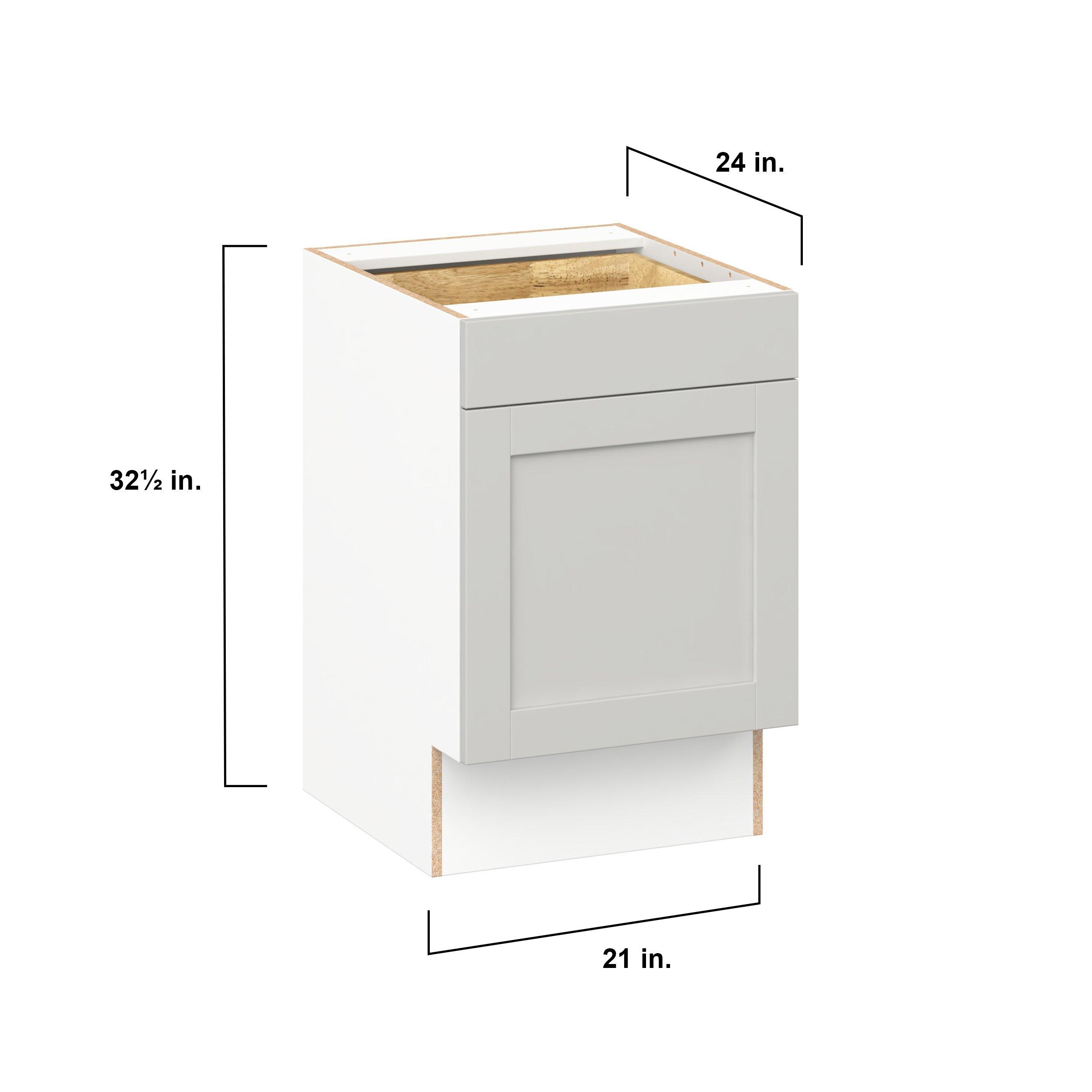 Enhance your home with the timeless beauty of Summerhill classic shaker cabinets, available in fresh bright white and neutral light gray colors. Crafted from one-piece MDF Studio Design Collection Summerhill 21 in. Light Gray Door and Drawer Base Cabinet is designed to resist hairline cracks while the easy-to-clean finish stands up to stains and moisture. Featuring 5-piece doors and dovetail drawer joints, these cabinets offer durability and elegance. This collection combines style with everyday storage solutions.