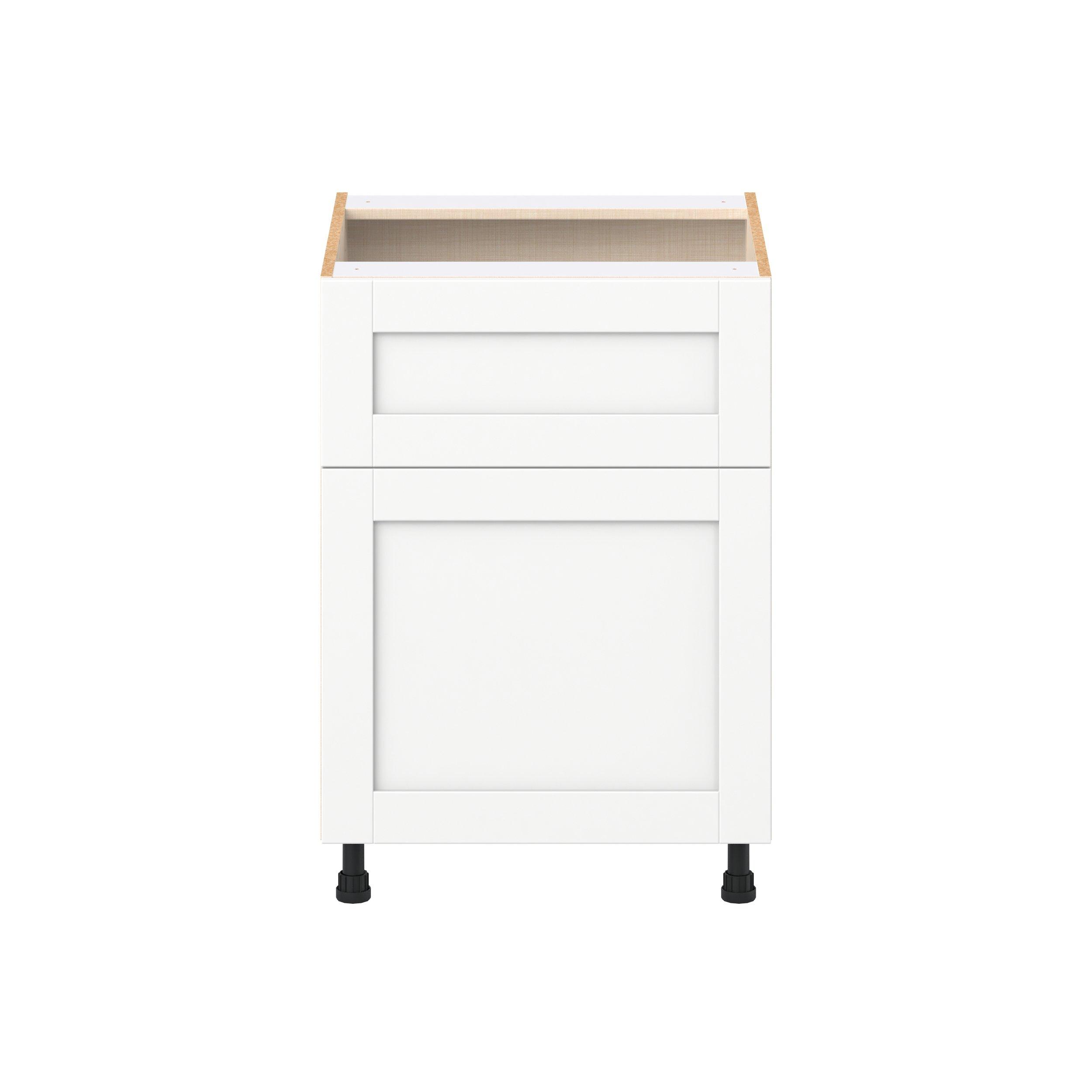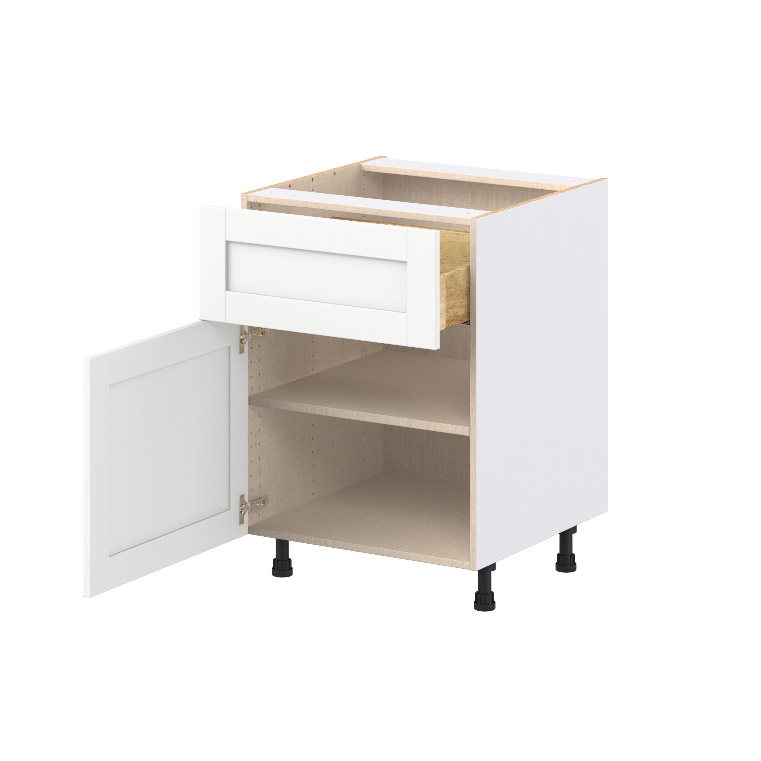 Enhance your home with the timeless beauty of Summerhill classic shaker cabinets, available in fresh bright white and neutral light gray colors. Crafted from one-piece MDF Studio Design Collection Summerhill 24 in. Bright White Door and Drawer Base Cabinet is designed to resist hairline cracks while the easy-to-clean finish stands up to stains and moisture. Featuring 5-piece doors and dovetail drawer joints, these cabinets offer durability and elegance. This collection combines style with everyday storage solutions.