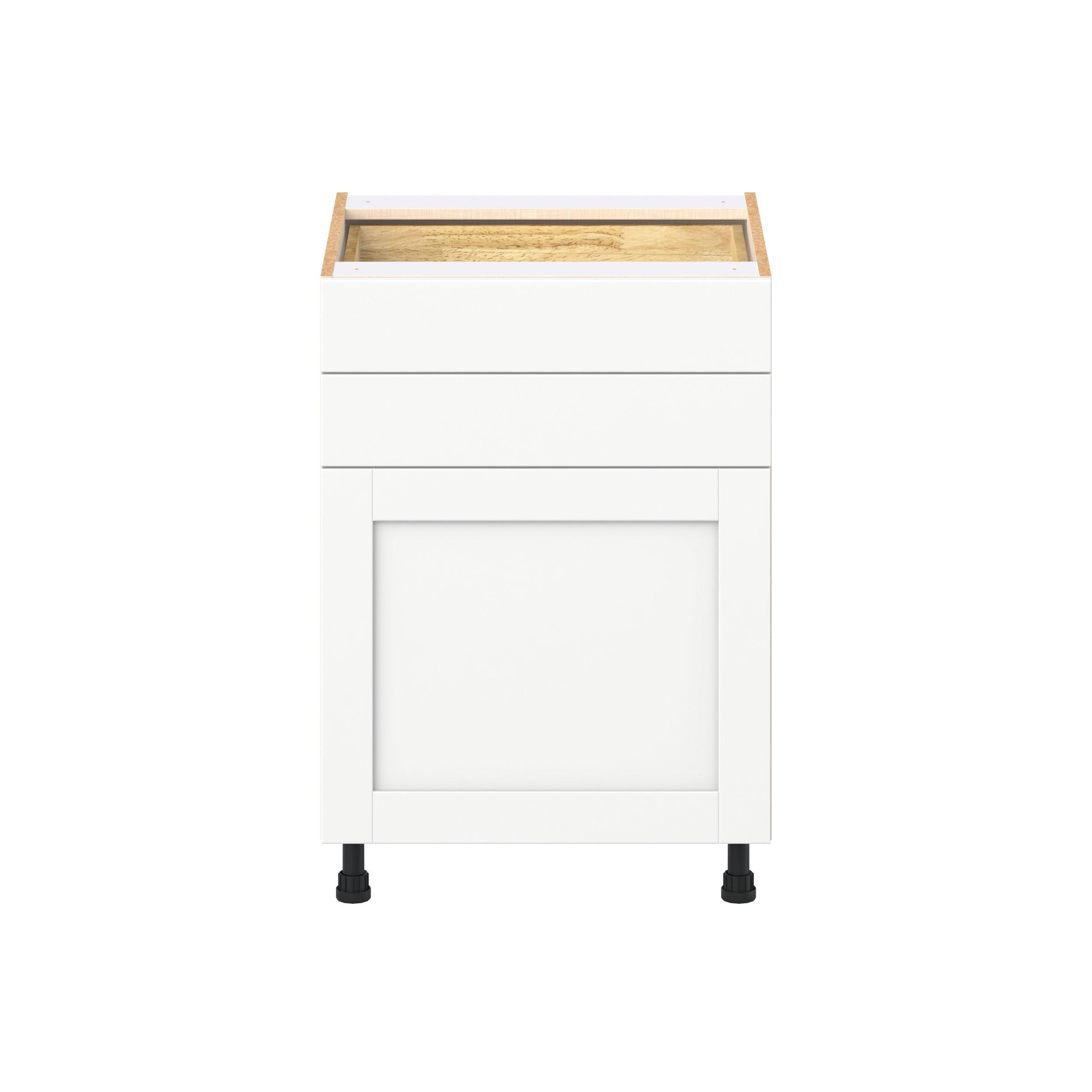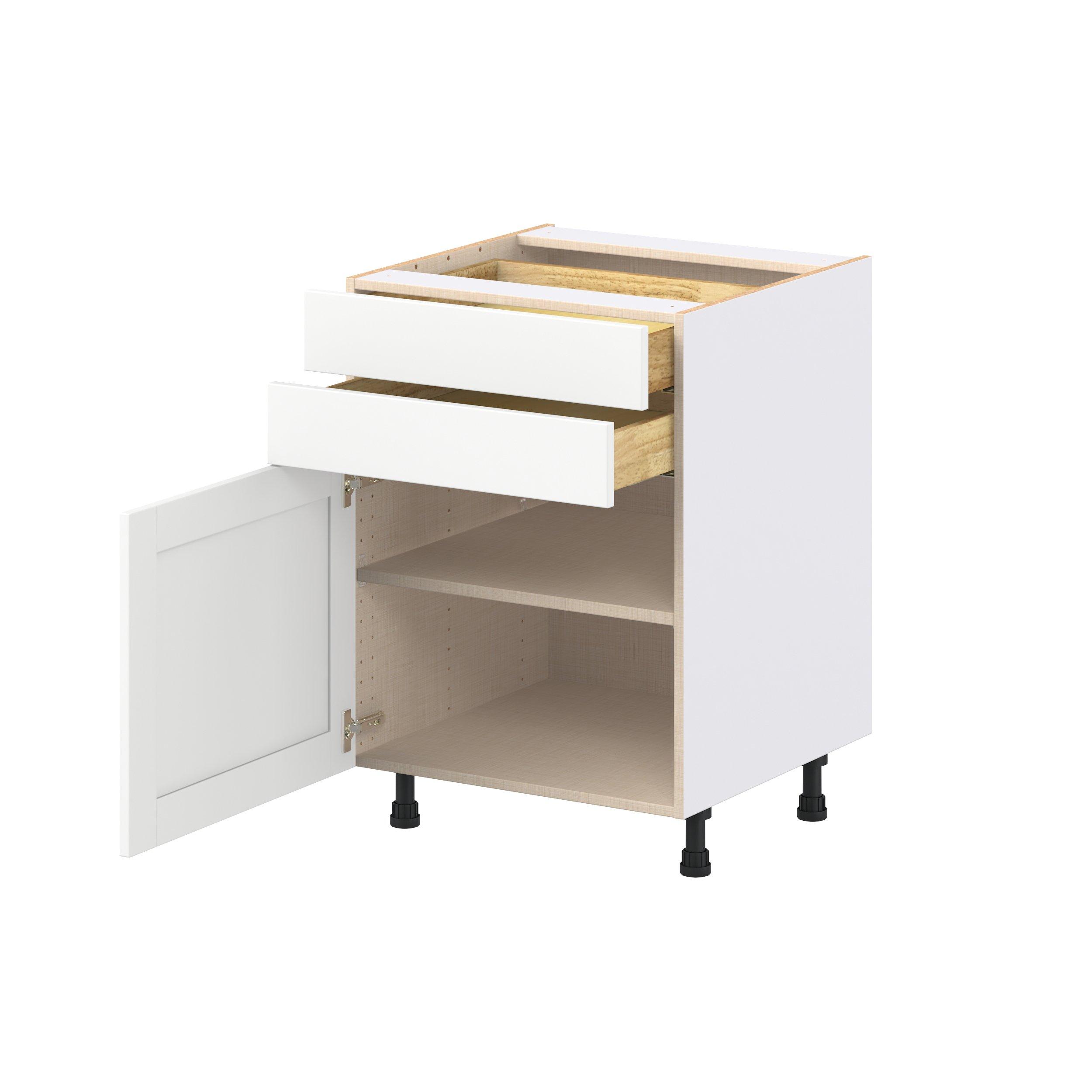 Enhance your home with the timeless beauty of Summerhill classic shaker cabinets, available in fresh bright white and neutral light gray colors. Crafted from one-piece MDF Studio Design Collection Summerhill 24 in. Bright White Door and Drawer Base Cabinet is designed to resist hairline cracks while the easy-to-clean finish stands up to stains and moisture. Featuring 5-piece doors and dovetail drawer joints, these cabinets offer durability and elegance. This collection combines style with everyday storage solutions.