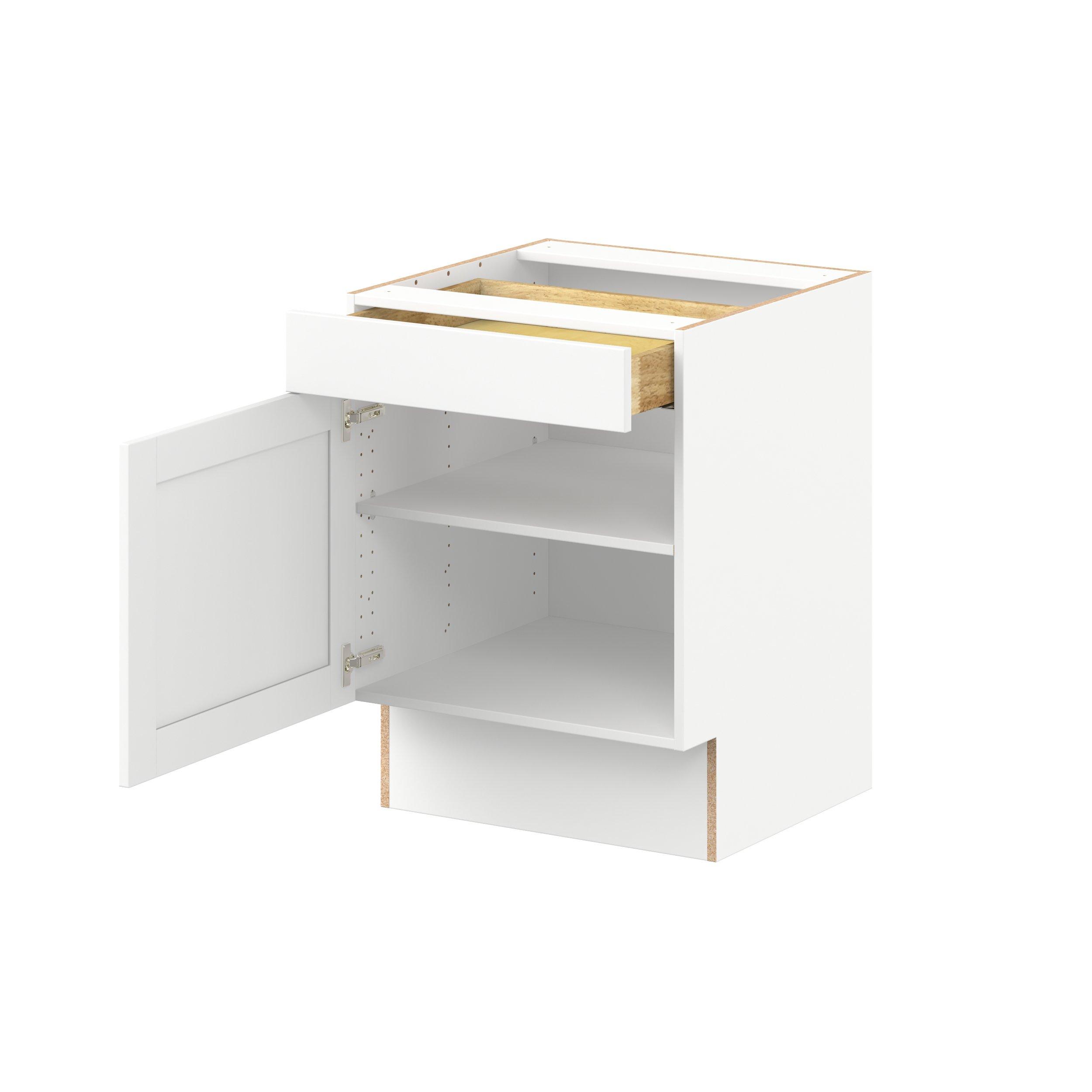 Enhance your home with the timeless beauty of Summerhill classic shaker cabinets, available in fresh bright white and neutral light gray colors. Crafted from one-piece MDF Studio Design Collection Summerhill 24 in. Bright White Door and Drawer Base Cabinet is designed to resist hairline cracks while the easy-to-clean finish stands up to stains and moisture. Featuring 5-piece doors and dovetail drawer joints, these cabinets offer durability and elegance. This collection combines style with everyday storage solutions.
