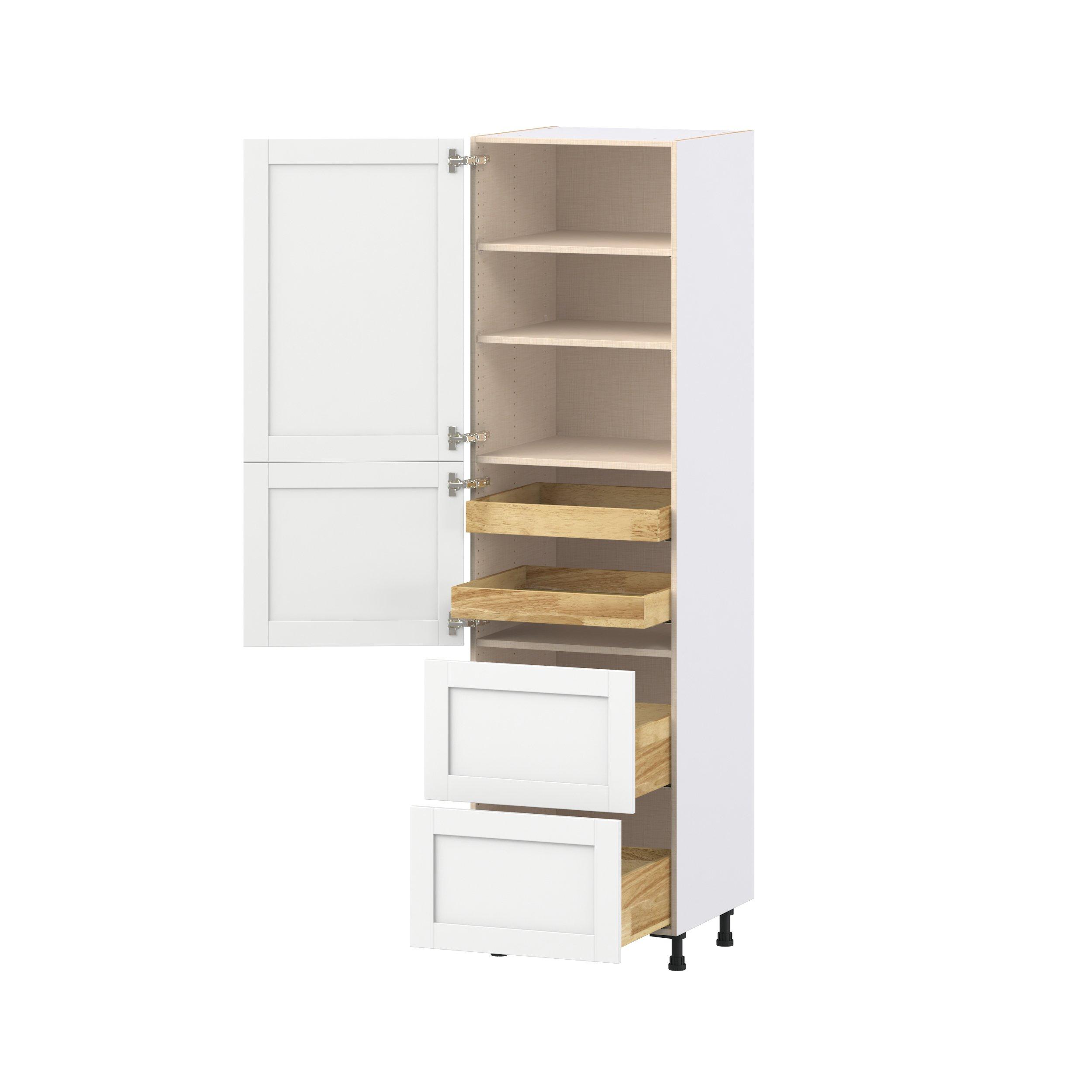Enhance your home with the timeless beauty of Summerhill classic shaker cabinets, available in fresh bright white and neutral light gray colors. Crafted from one-piece MDF Studio Design Collection Summerhill 24 in. Bright White Door and Drawer Pantry Cabinet with Inner Pull-Out is designed to resist hairline cracks while the easy-to-clean finish stands up to stains and moisture. Featuring 5-piece doors and dovetail drawer joints, these cabinets offer durability and elegance. This collection combines style with everyday storage solutions.