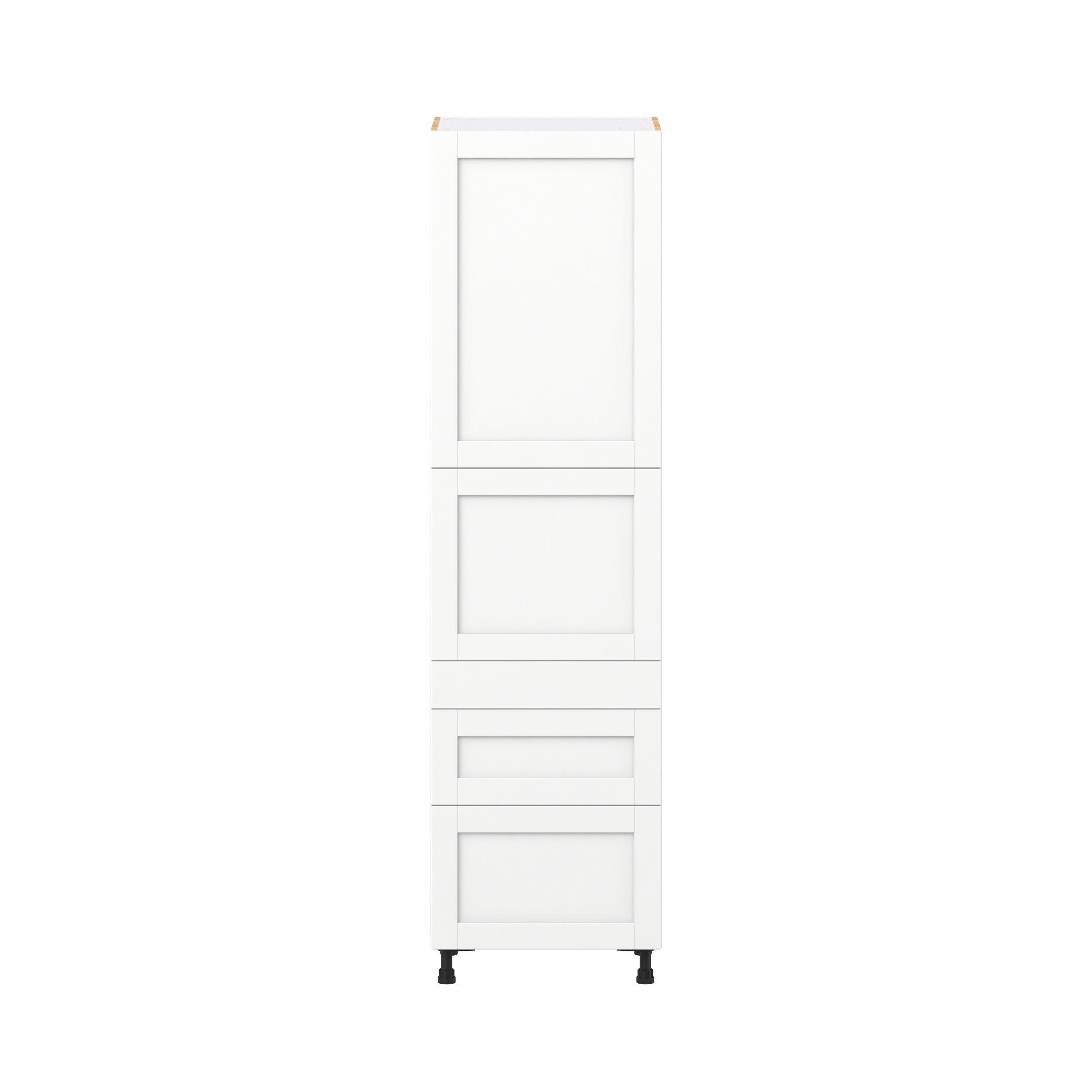 Enhance your home with the timeless beauty of Summerhill classic shaker cabinets, available in fresh bright white and neutral light gray colors. Crafted from one-piece MDF Studio Design Collection Summerhill 24 in. Bright White Door and Drawer Pantry Cabinet with Inner Pull-Out is designed to resist hairline cracks while the easy-to-clean finish stands up to stains and moisture. Featuring 5-piece doors and dovetail drawer joints, these cabinets offer durability and elegance. This collection combines style with everyday storage solutions.