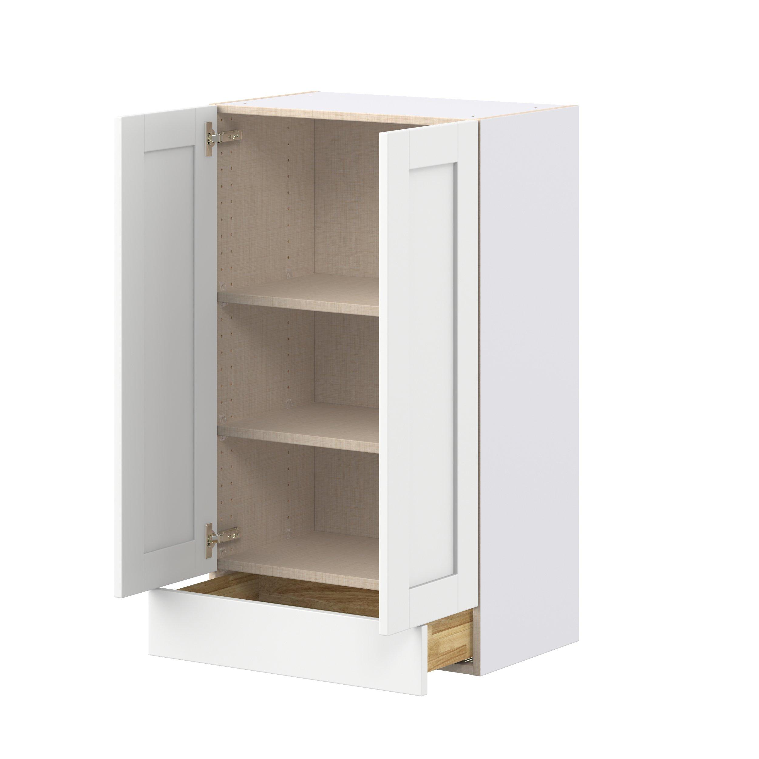 Enhance your home with the timeless beauty of Summerhill classic shaker cabinets, available in fresh bright white and neutral light gray colors. Crafted from one-piece MDF Studio Design Collection Summerhill 24 in. Bright White Door and Drawer Wall Cabinet is designed to resist hairline cracks while the easy-to-clean finish stands up to stains and moisture. Featuring 5-piece doors and dovetail drawer joints, these cabinets offer durability and elegance. This collection combines style with everyday storage solutions.