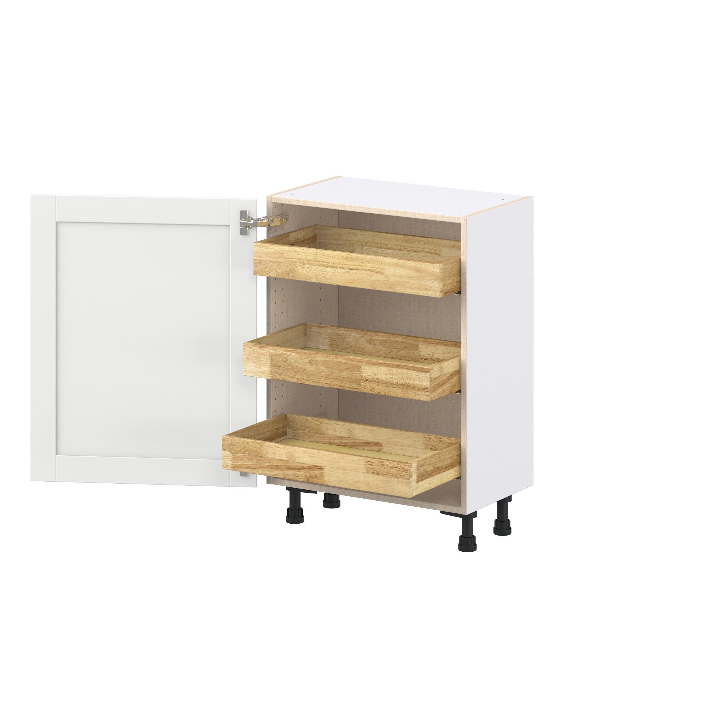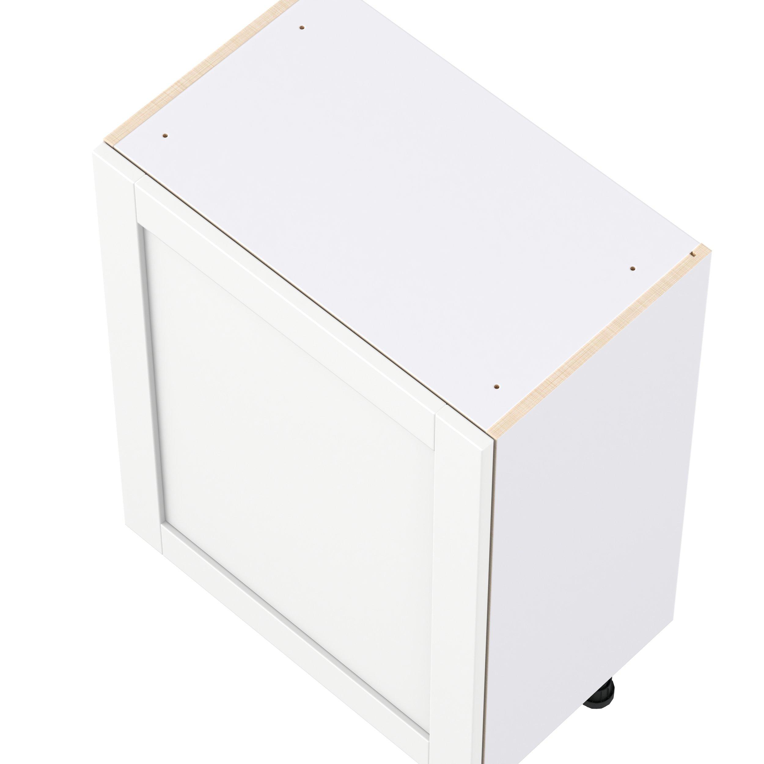 Enhance your home with the timeless beauty of Summerhill classic shaker cabinets, available in fresh bright white and neutral light gray colors. Crafted from one-piece MDF Studio Design Collection Summerhill 24 in. Bright White Shallow Base Cabinet with Inner Pull-Out Drawer is designed to resist hairline cracks while the easy-to-clean finish stands up to stains and moisture. Featuring 5-piece doors and dovetail drawer joints, these cabinets offer durability and elegance. This collection combines style with everyday storage solutions.