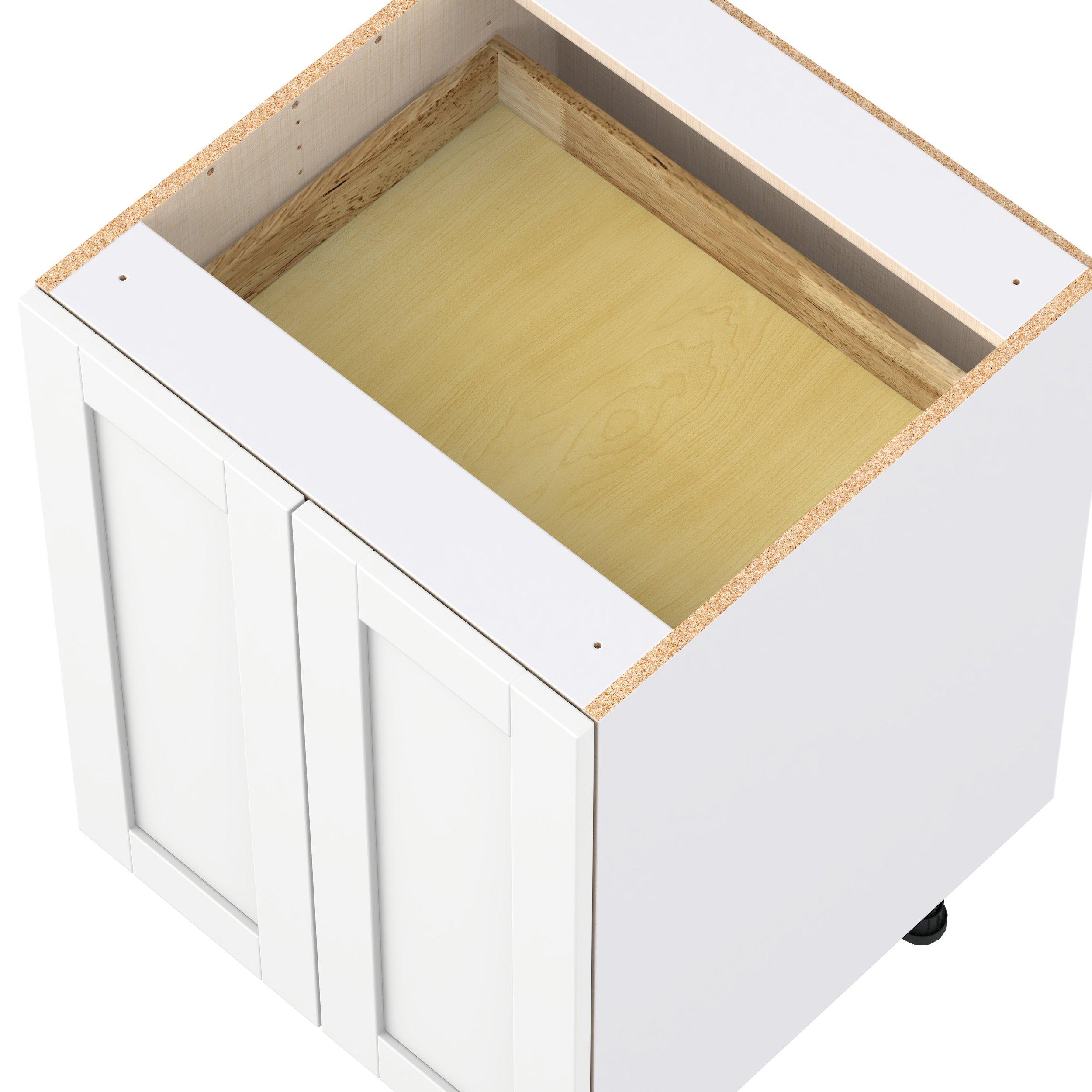 Enhance your home with the timeless beauty of Summerhill classic shaker cabinets, available in fresh bright white and neutral light gray colors. Crafted from one-piece MDF Studio Design Collection Summerhill 24 in. Bright White Shallow Base Cabinet with Inner Pull-Out Drawer is designed to resist hairline cracks while the easy-to-clean finish stands up to stains and moisture. Featuring 5-piece doors and dovetail drawer joints, these cabinets offer durability and elegance. This collection combines style with everyday storage solutions.