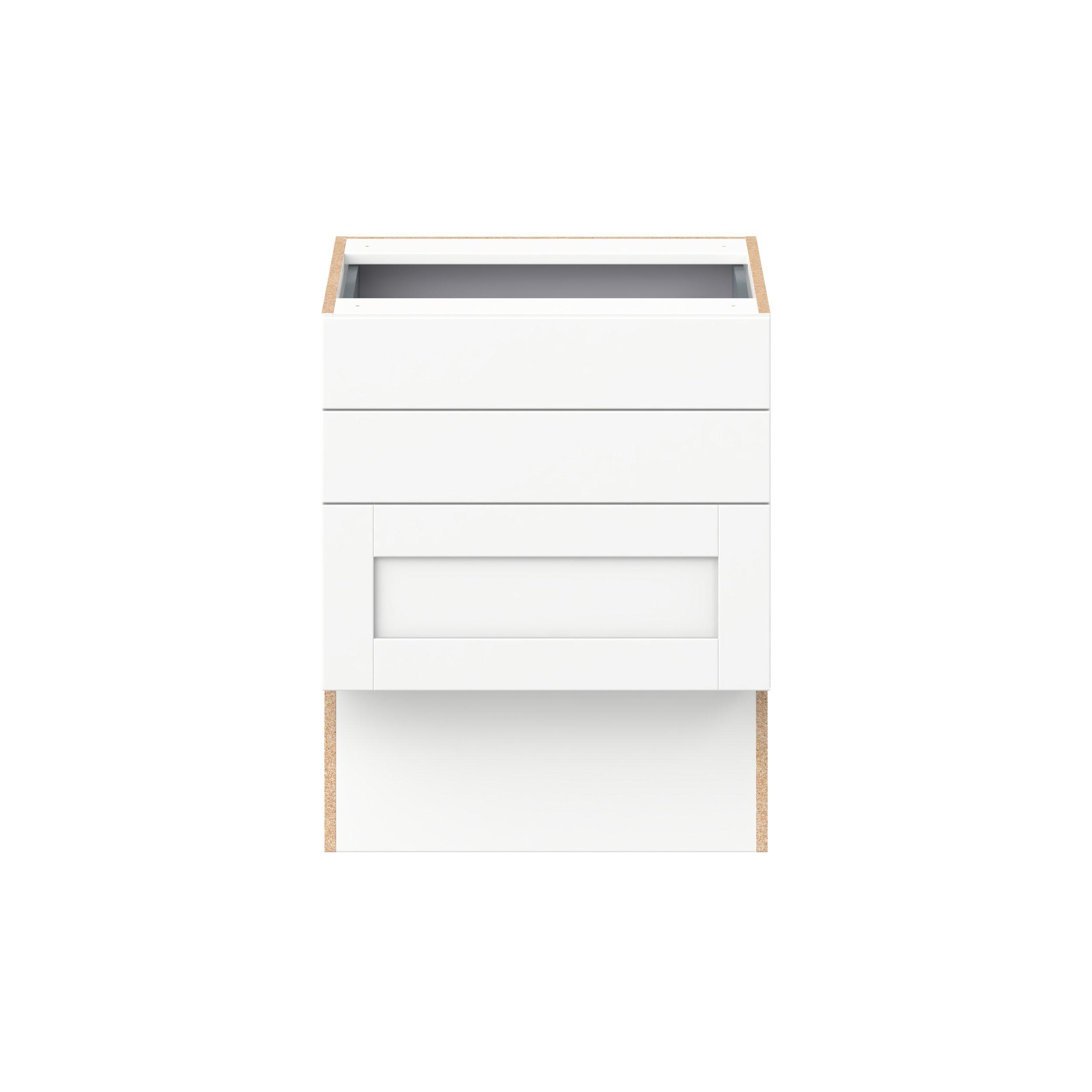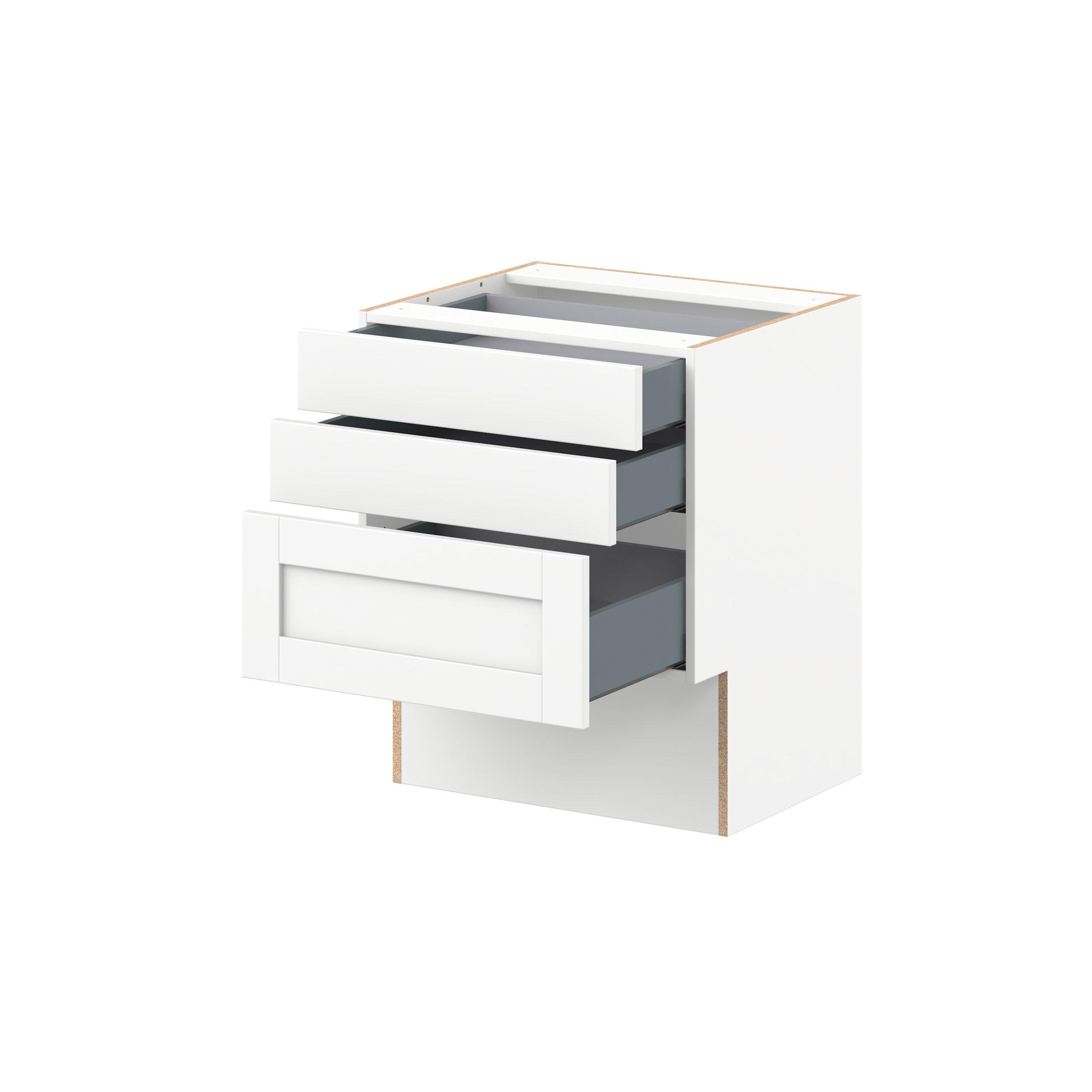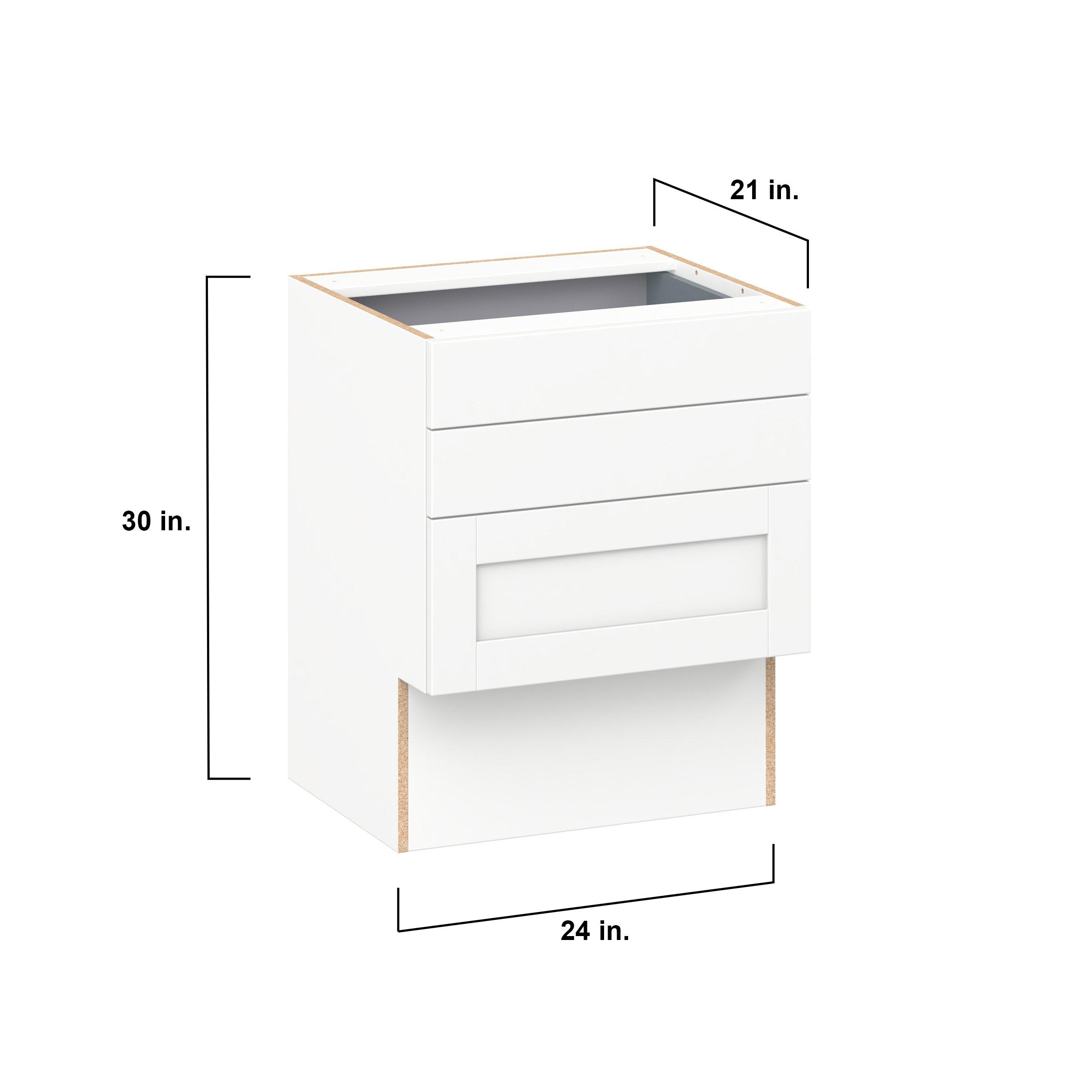 Enhance your home with the timeless beauty of Summerhill classic shaker cabinets, available in fresh bright white and neutral light gray colors. Crafted from one-piece MDF Studio Design Collection Summerhill 24 in. Bright White Vanity Drawer Base Cabinet is designed to resist hairline cracks while the easy-to-clean finish stands up to stains and moisture. Featuring 5-piece doors and dovetail drawer joints, these cabinets offer durability and elegance. This collection combines style with everyday storage solutions.