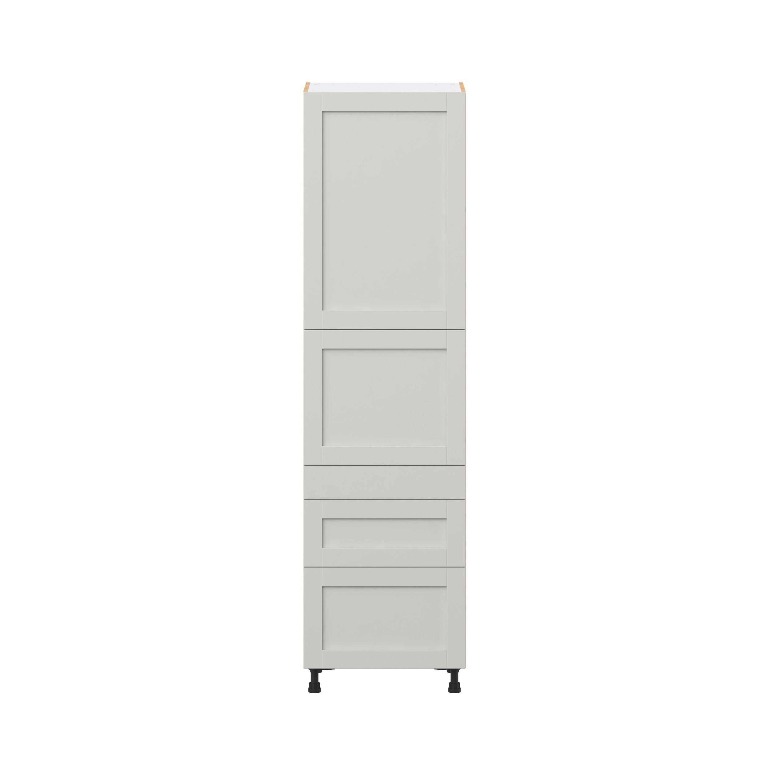 Enhance your home with the timeless beauty of Summerhill classic shaker cabinets, available in fresh bright white and neutral light gray colors. Crafted from one-piece MDF Studio Design Collection Summerhill 24 in. Light Gray Door and Drawer Pantry Cabinet with Inner Pull-Out is designed to resist hairline cracks while the easy-to-clean finish stands up to stains and moisture. Featuring 5-piece doors and dovetail drawer joints, these cabinets offer durability and elegance. This collection combines style with everyday storage solutions.
