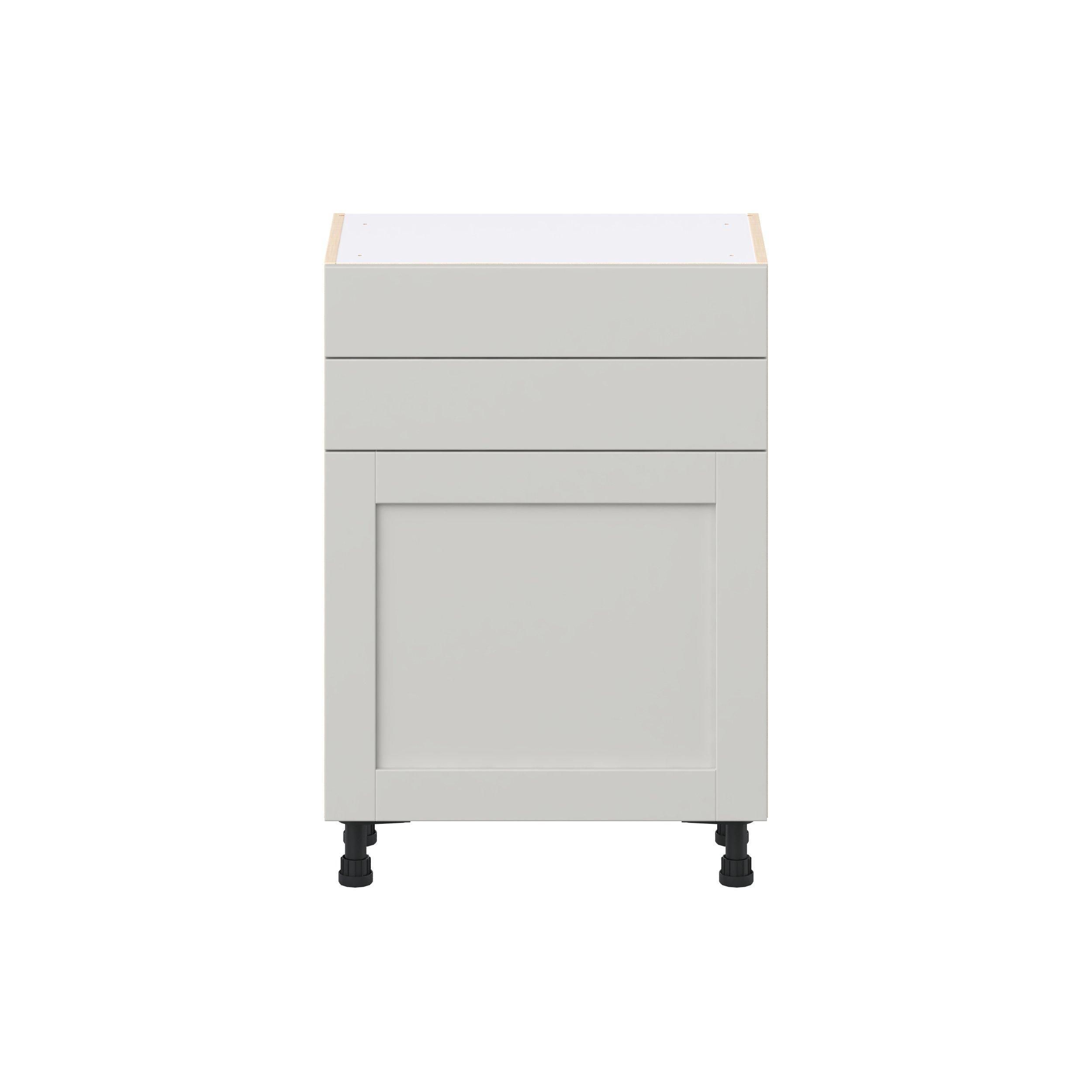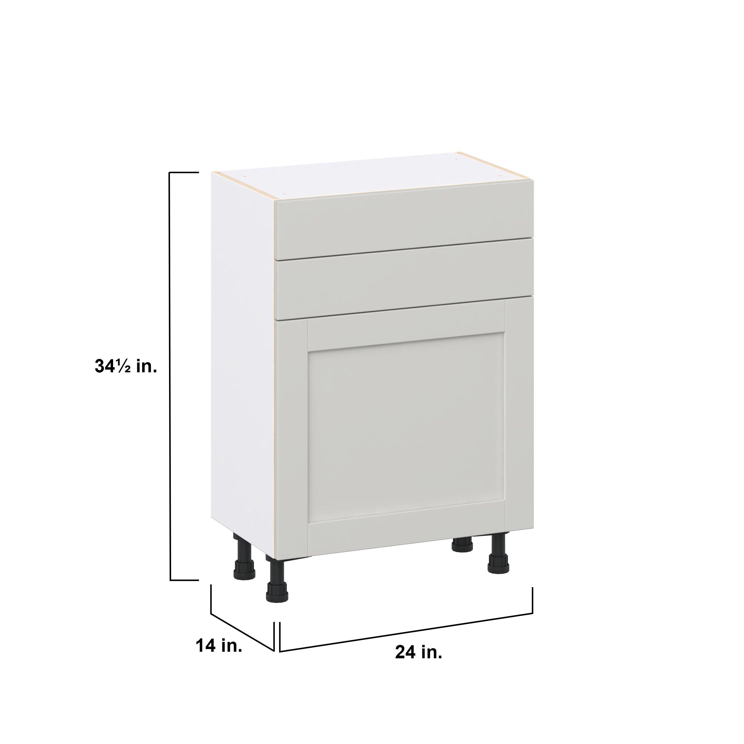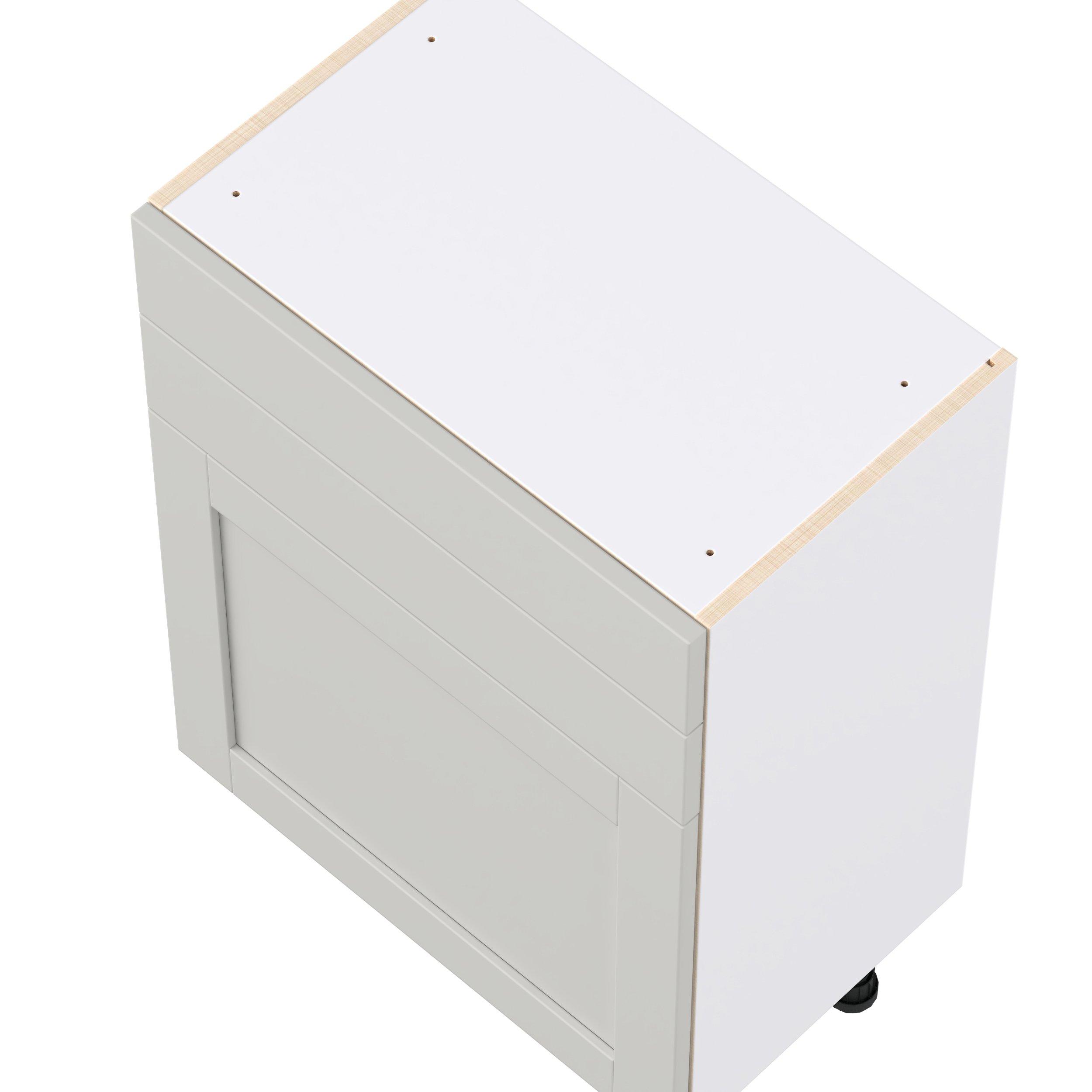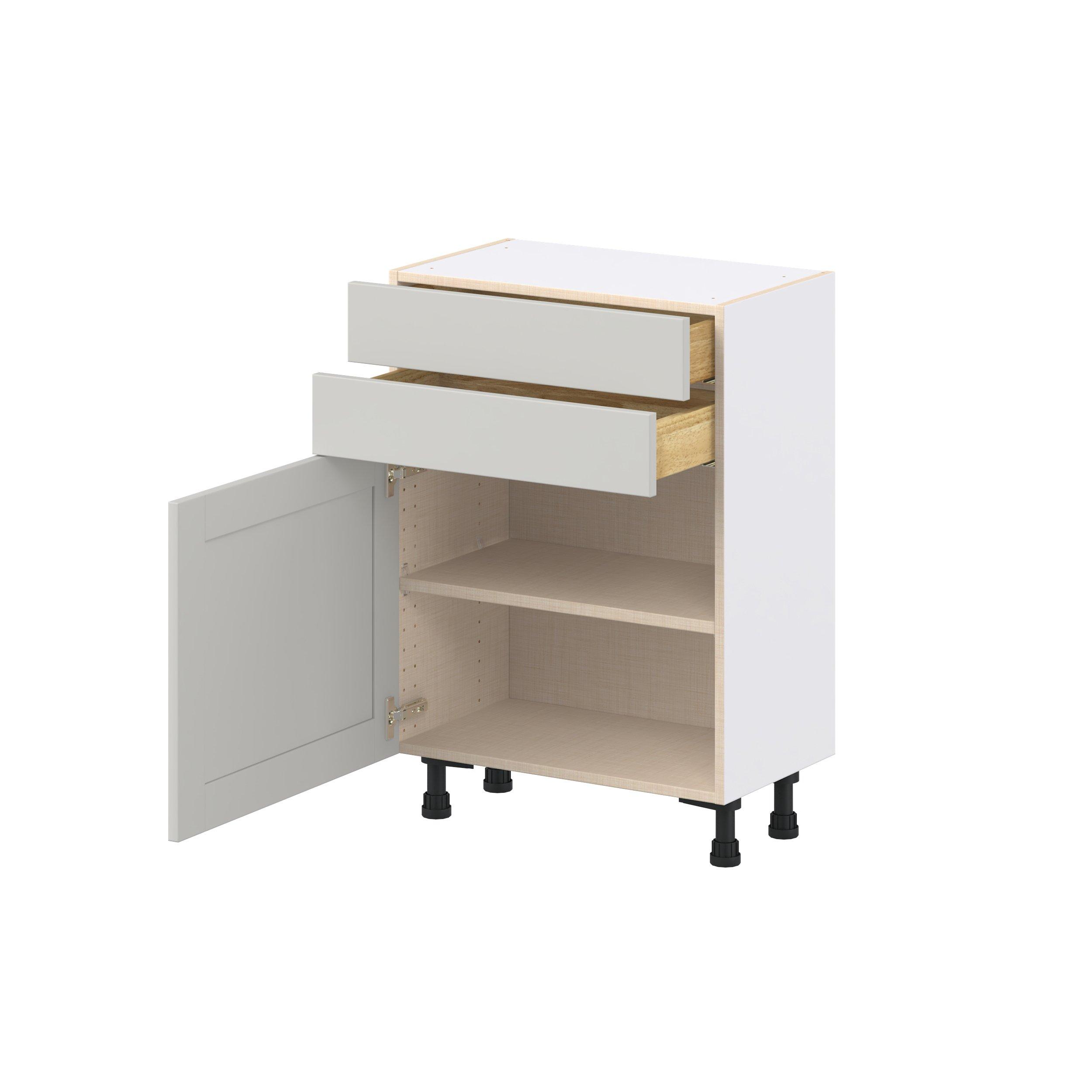Enhance your home with the timeless beauty of Summerhill classic shaker cabinets, available in fresh bright white and neutral light gray colors. Crafted from one-piece MDF Studio Design Collection Summerhill 24 in. Light Gray Shallow Base Cabinet is designed to resist hairline cracks while the easy-to-clean finish stands up to stains and moisture. Featuring 5-piece doors and dovetail drawer joints, these cabinets offer durability and elegance. This collection combines style with everyday storage solutions.