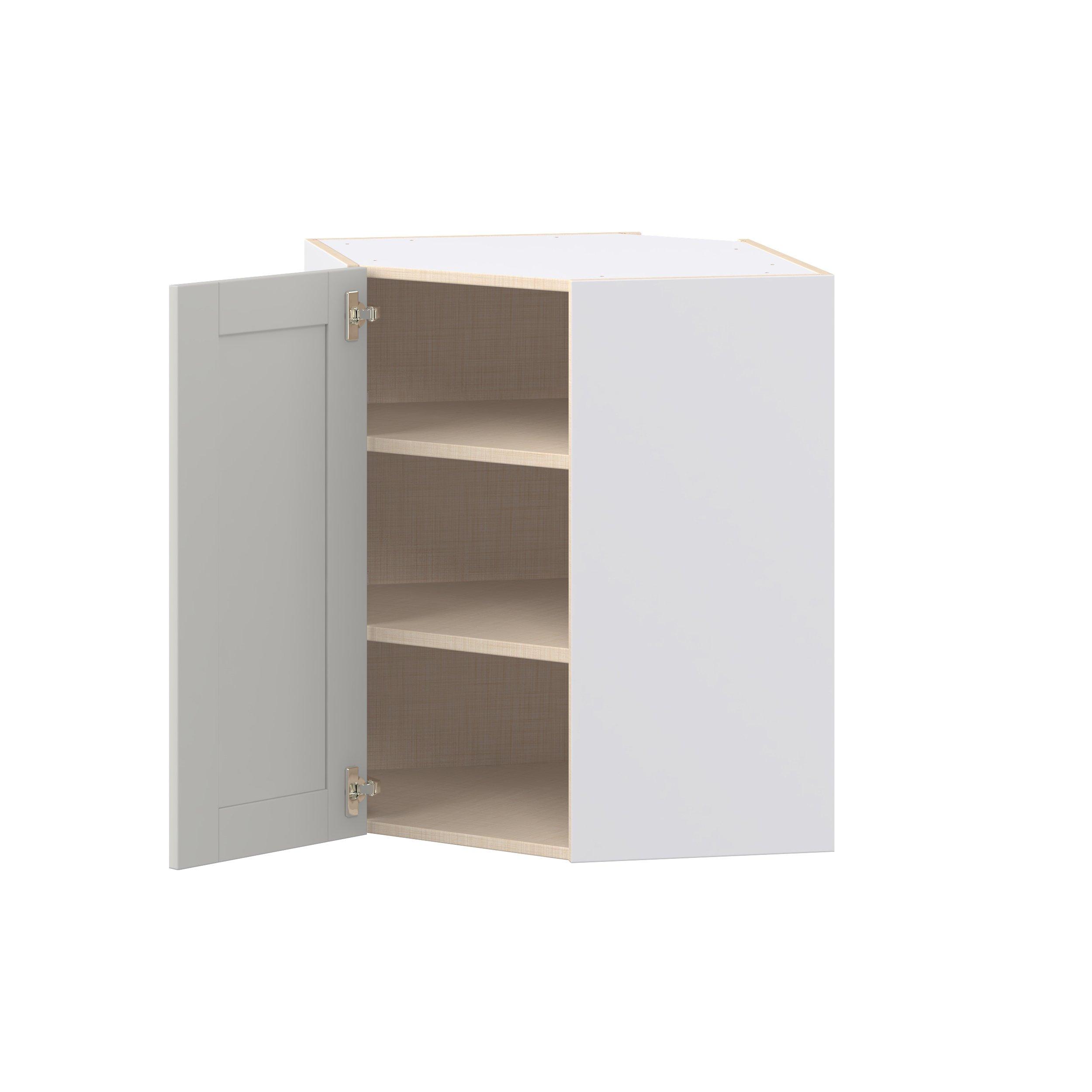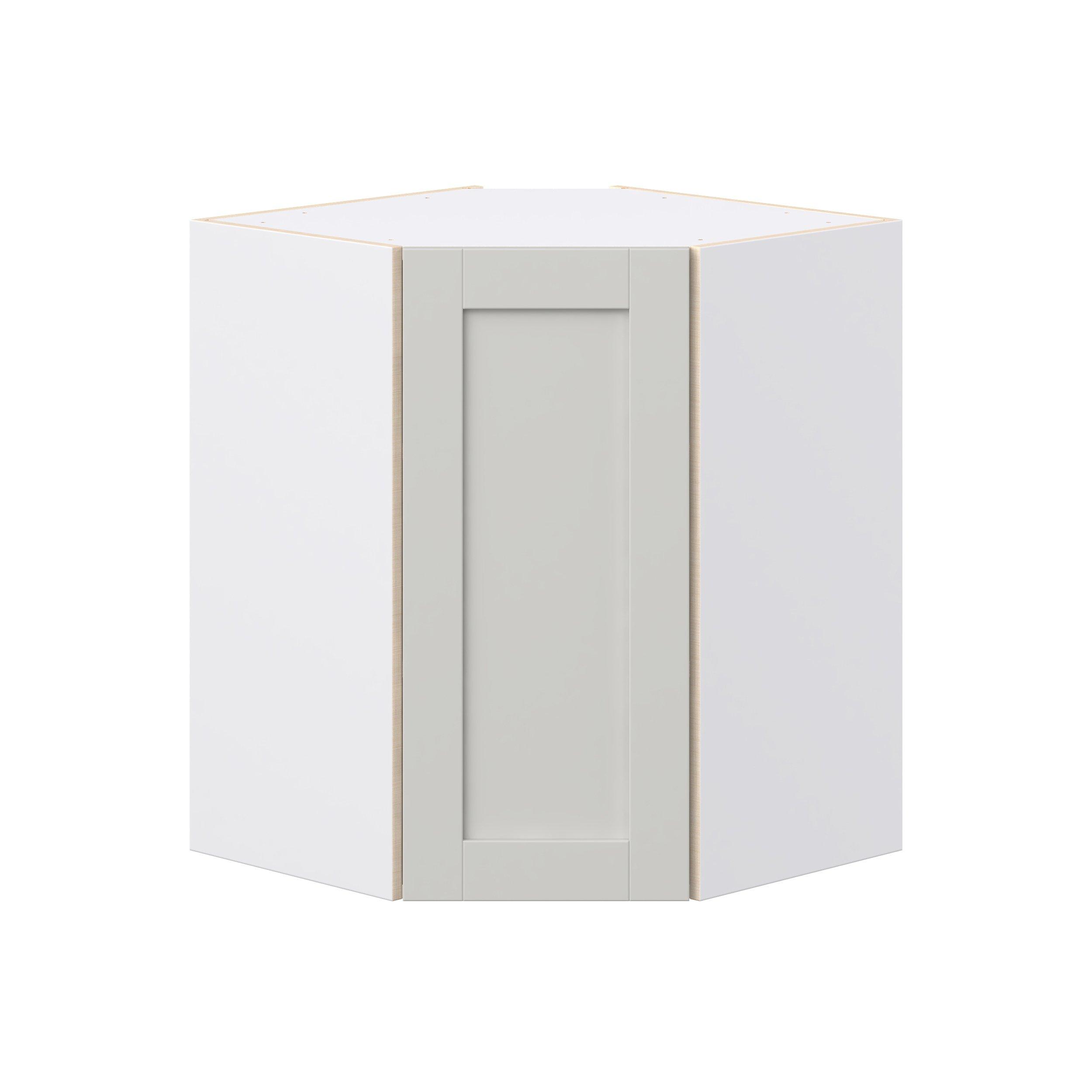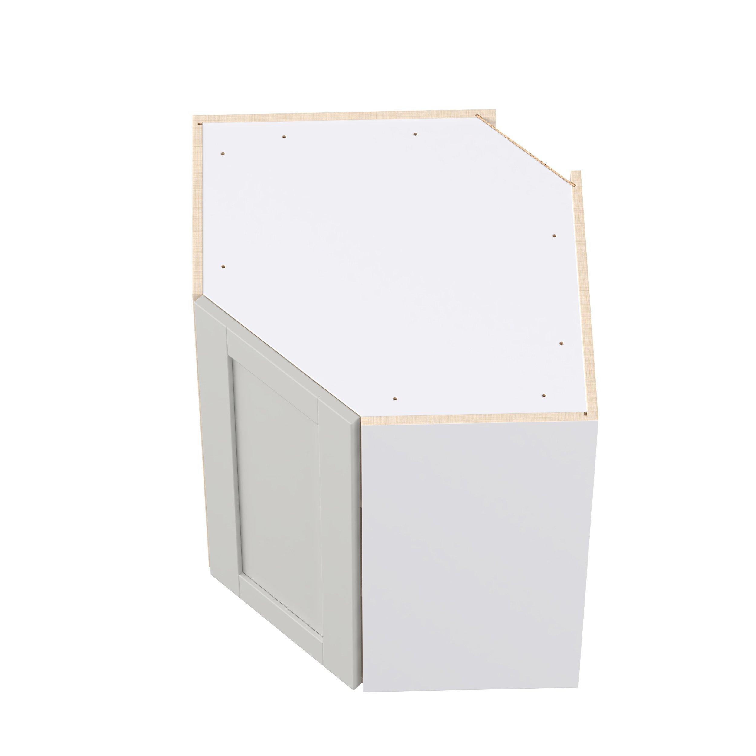 Enhance your home with the timeless beauty of Summerhill classic shaker cabinets, available in fresh bright white and neutral light gray colors. Crafted from one-piece MDF Studio Design Collection Summerhill 24 in. Light Gray Wall Angle Corner Cabinet is designed to resist hairline cracks while the easy-to-clean finish stands up to stains and moisture. Featuring 5-piece doors and dovetail drawer joints, these cabinets offer durability and elegance. This collection combines style with everyday storage solutions.