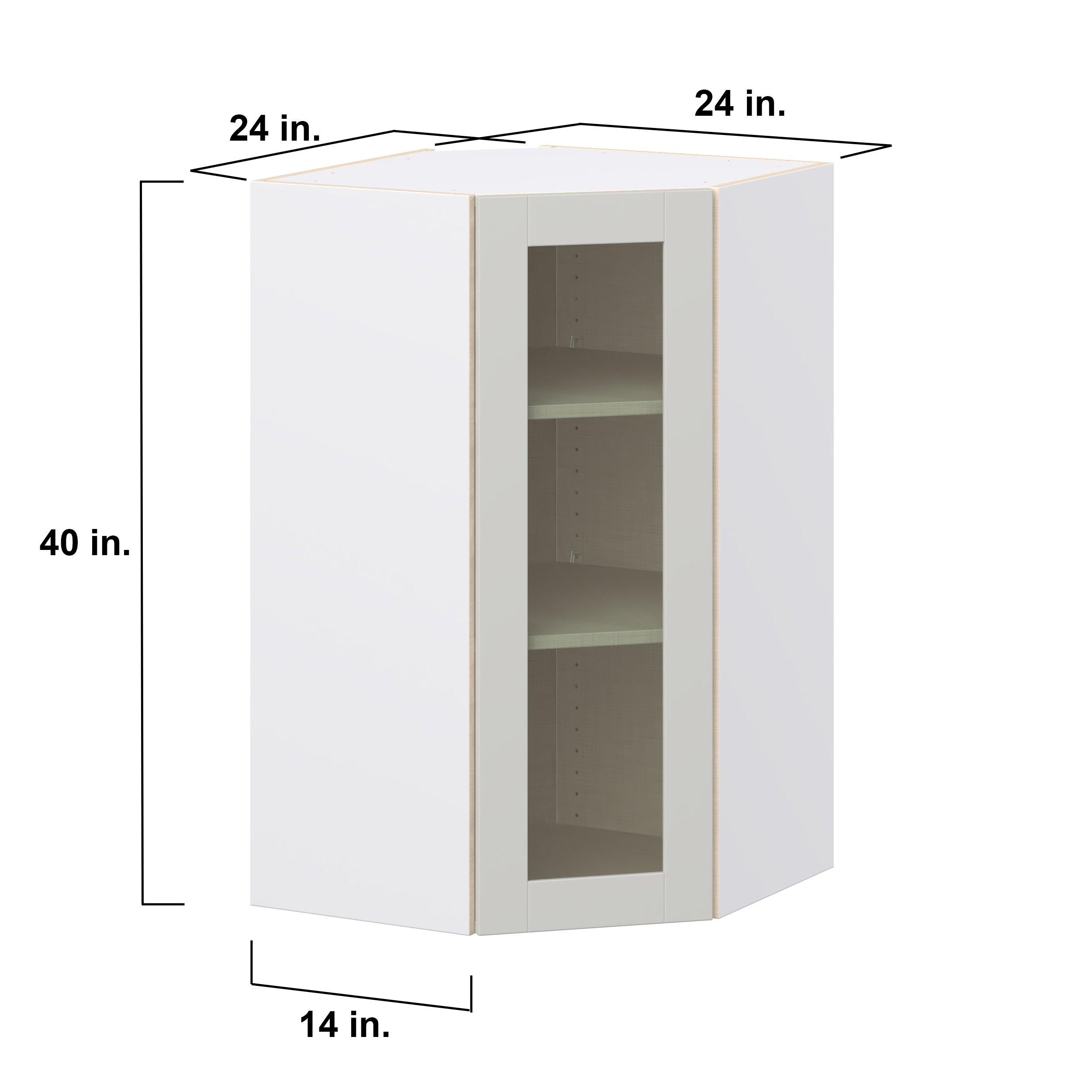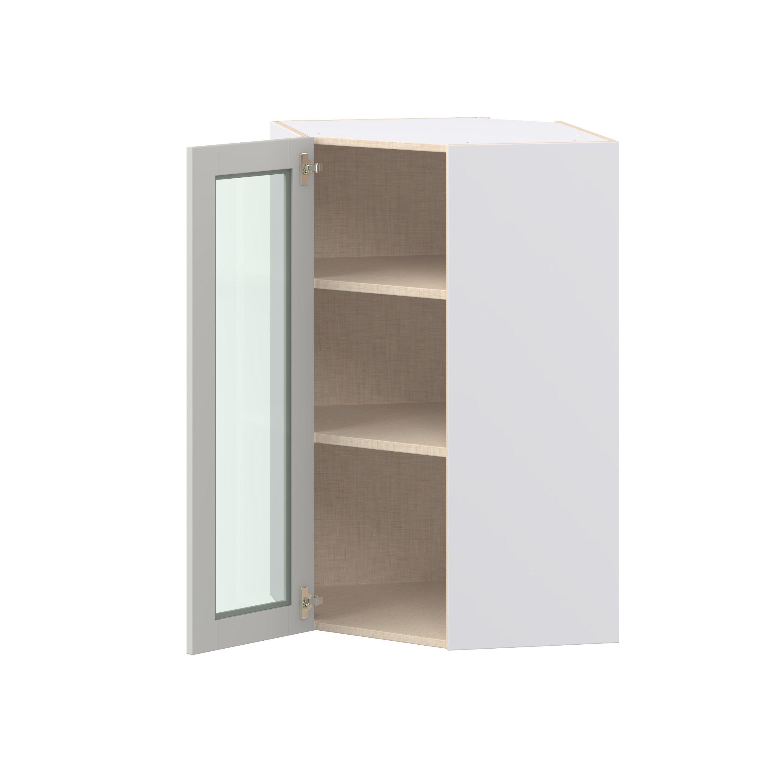 Enhance your home with the timeless beauty of Summerhill classic shaker cabinets, available in fresh bright white and neutral light gray colors. Crafted from one-piece MDF Studio Design Collection Summerhill 24 in. Light Gray Wall Angle Corner Cabinet with Glass Door is designed to resist hairline cracks while the easy-to-clean finish stands up to stains and moisture. Featuring 5-piece doors and dovetail drawer joints, these cabinets offer durability and elegance. This collection combines style with everyday storage solutions.