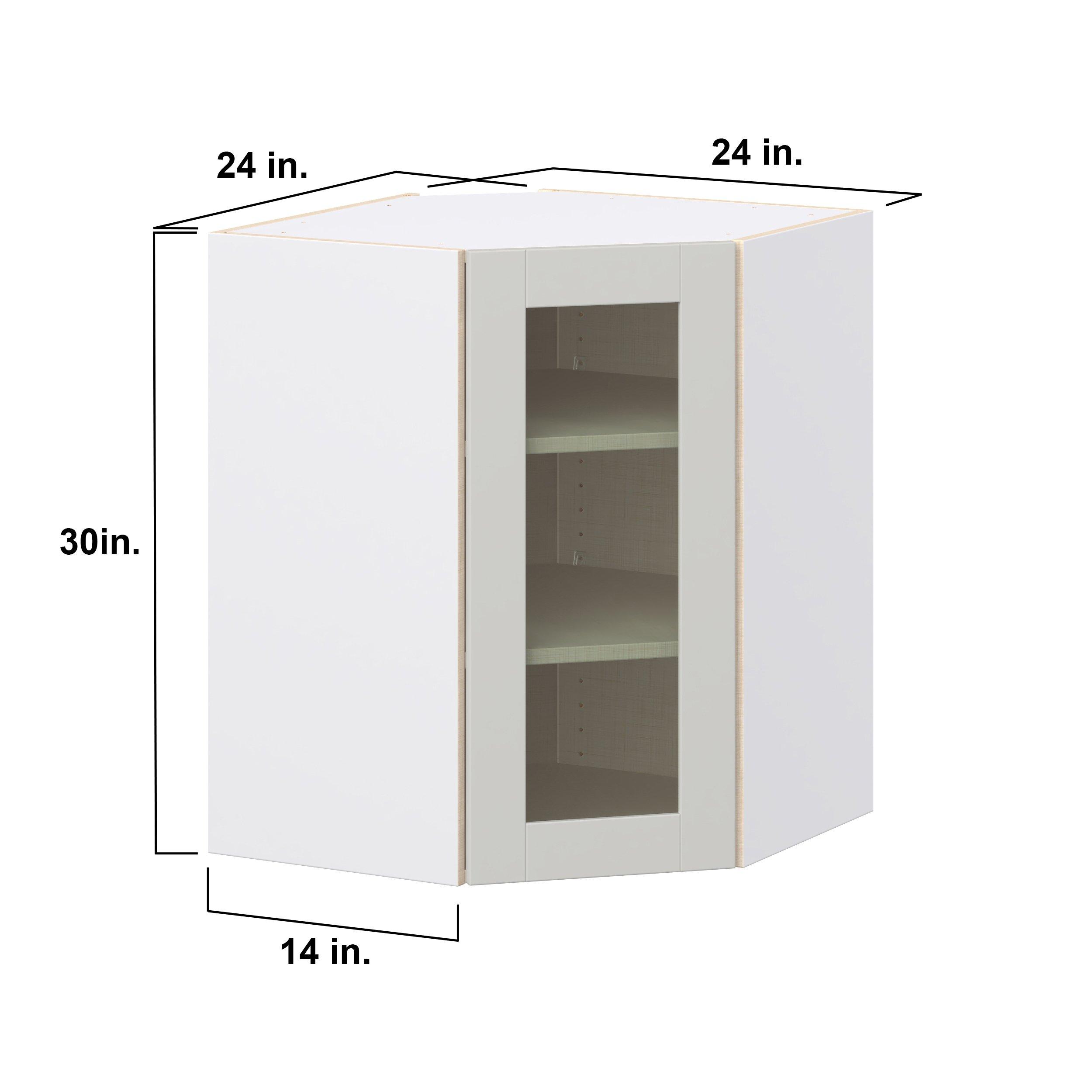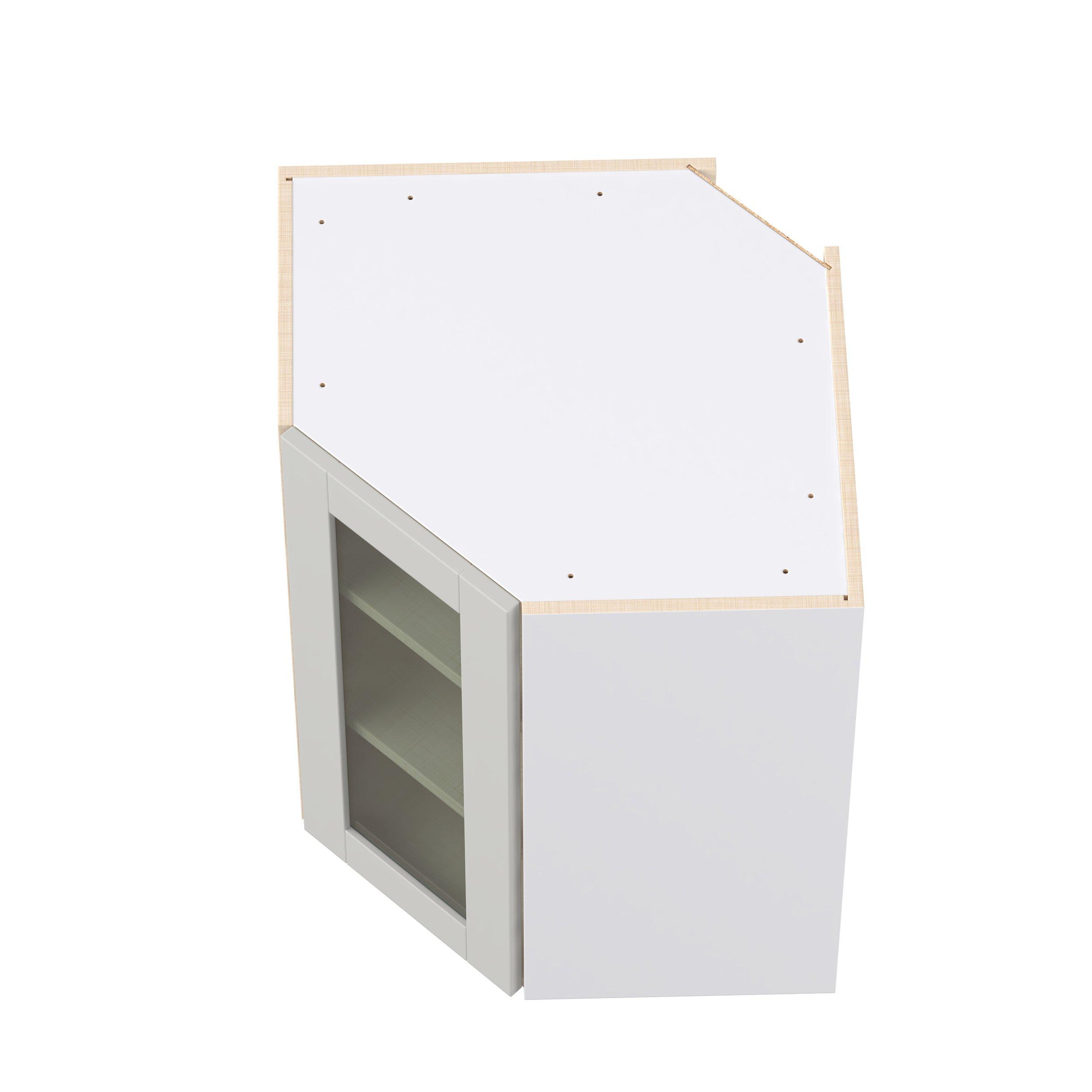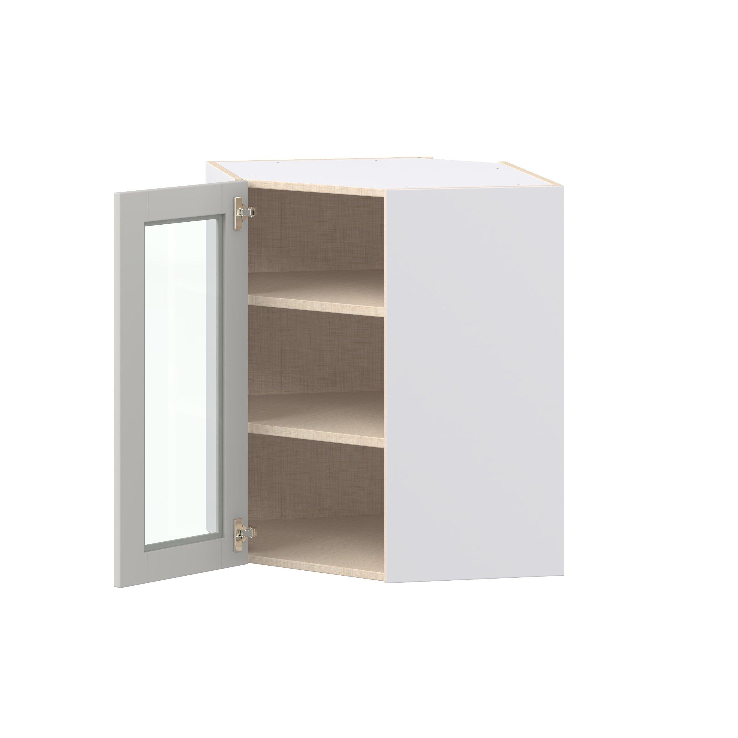 Enhance your home with the timeless beauty of Summerhill classic shaker cabinets, available in fresh bright white and neutral light gray colors. Crafted from one-piece MDF Studio Design Collection Summerhill 24 in. Light Gray Wall Angle Corner Cabinet with Glass Door is designed to resist hairline cracks while the easy-to-clean finish stands up to stains and moisture. Featuring 5-piece doors and dovetail drawer joints, these cabinets offer durability and elegance. This collection combines style with everyday storage solutions.