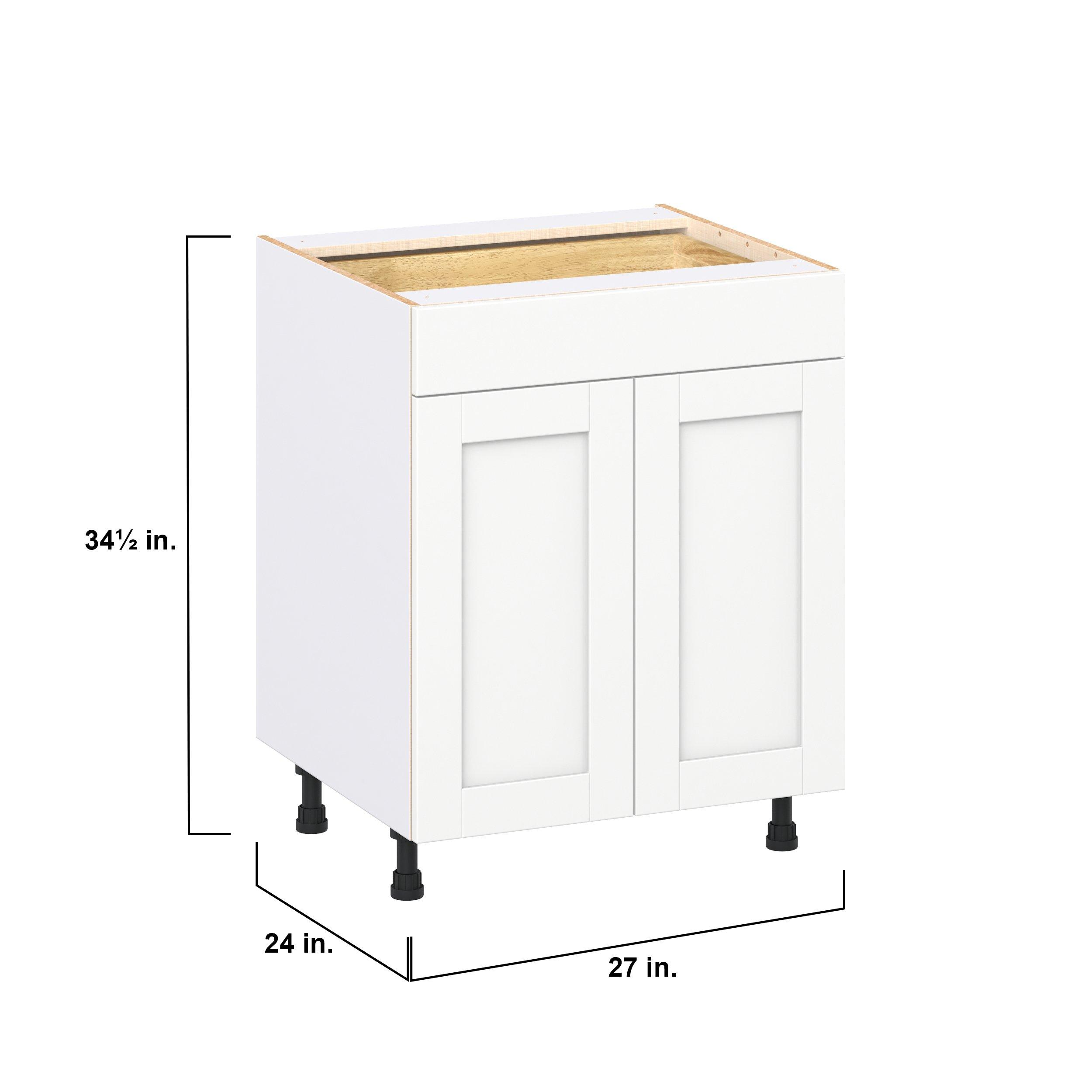Enhance your home with the timeless beauty of Summerhill classic shaker cabinets, available in fresh bright white and neutral light gray colors. Crafted from one-piece MDF Studio Design Collection Summerhill 27 in. Bright White Door and Drawer Base Cabinet is designed to resist hairline cracks while the easy-to-clean finish stands up to stains and moisture. Featuring 5-piece doors and dovetail drawer joints, these cabinets offer durability and elegance. This collection combines style with everyday storage solutions.