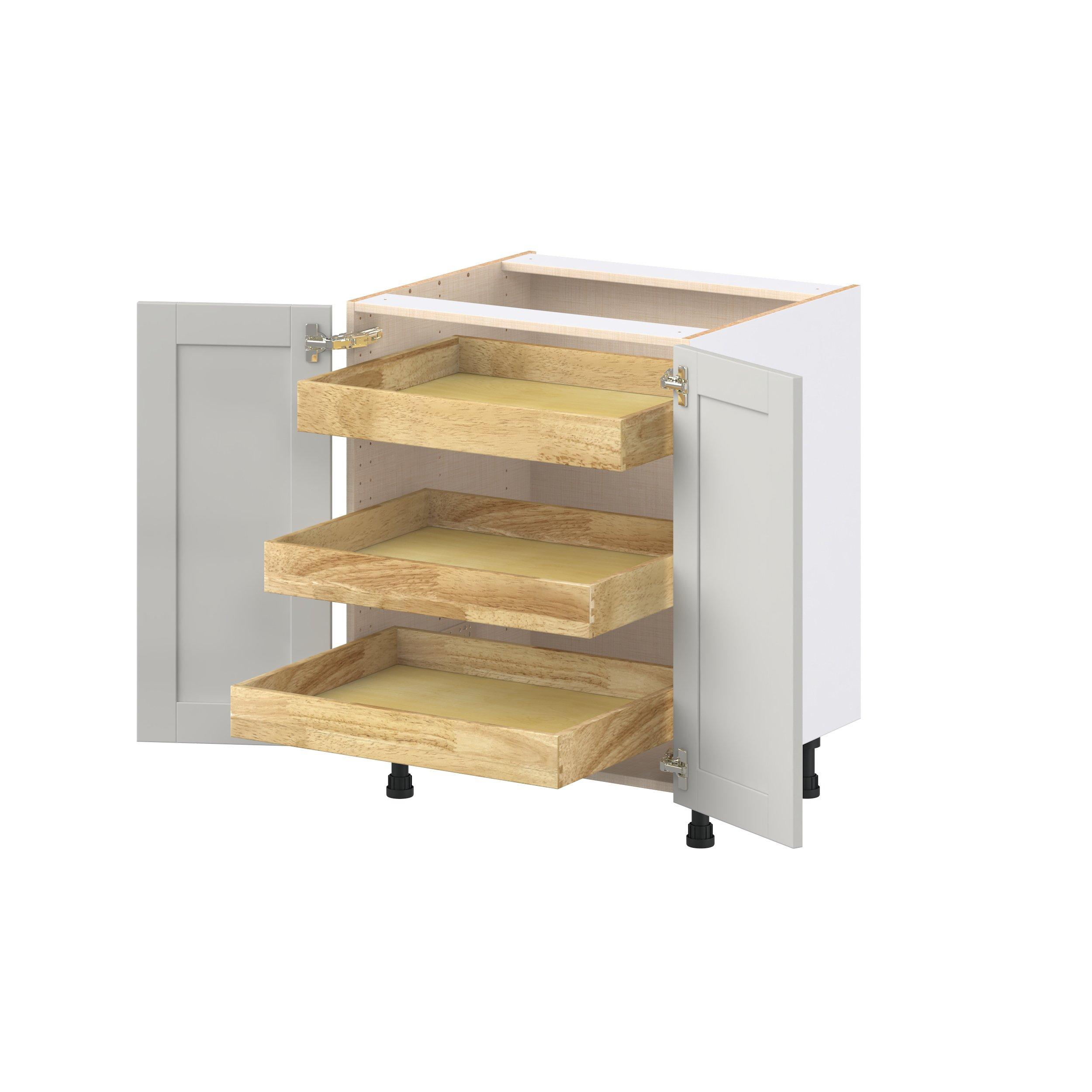 Enhance your home with the timeless beauty of Summerhill classic shaker cabinets, available in fresh bright white and neutral light gray colors. Crafted from one-piece MDF Studio Design Collection Summerhill 27 in. Light Gray Base Cabinet with Inner Pull-Out Drawer is designed to resist hairline cracks while the easy-to-clean finish stands up to stains and moisture. Featuring 5-piece doors and dovetail drawer joints, these cabinets offer durability and elegance. This collection combines style with everyday storage solutions.