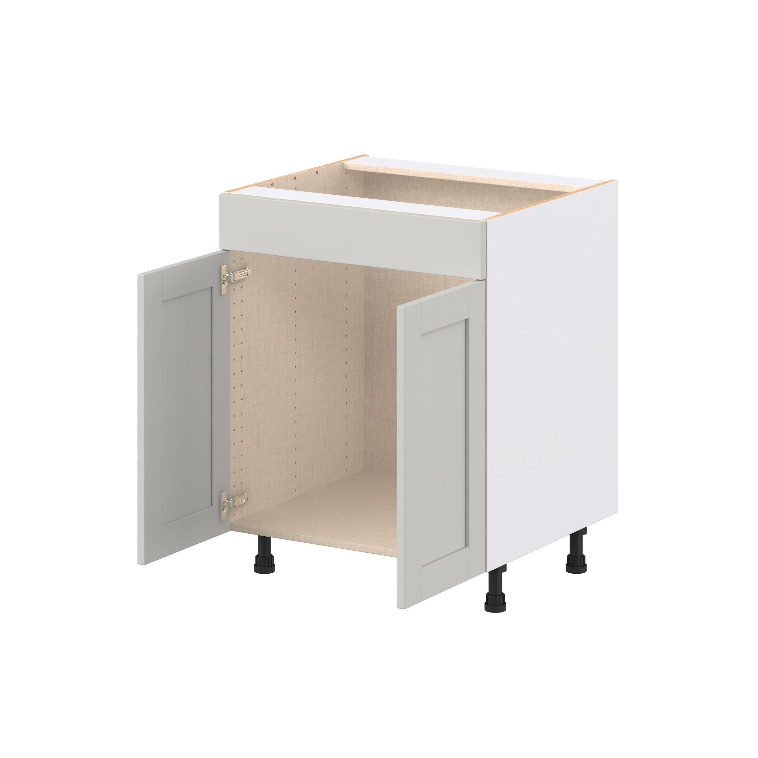 Enhance your home with the timeless beauty of Summerhill classic shaker cabinets, available in fresh bright white and neutral light gray colors. Crafted from one-piece MDF Studio Design Collection Summerhill 27 in. Light Gray Sink Base Cabinet with False Front is designed to resist hairline cracks while the easy-to-clean finish stands up to stains and moisture. Featuring 5-piece doors and dovetail drawer joints, these cabinets offer durability and elegance. This collection combines style with everyday storage solutions.