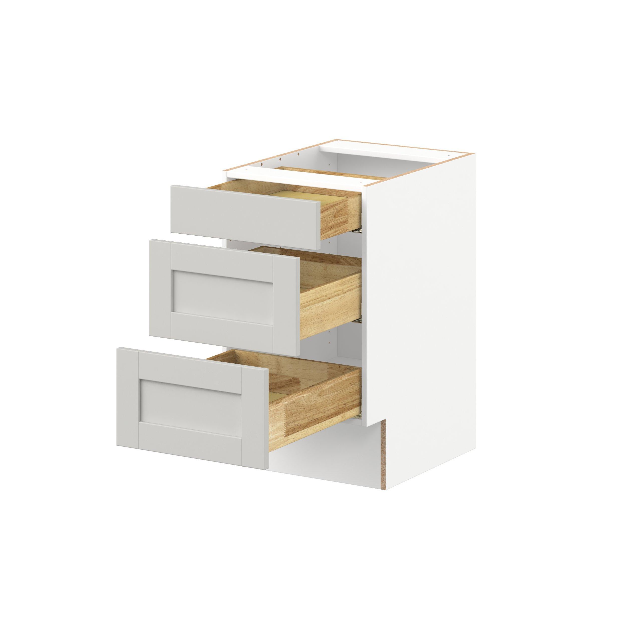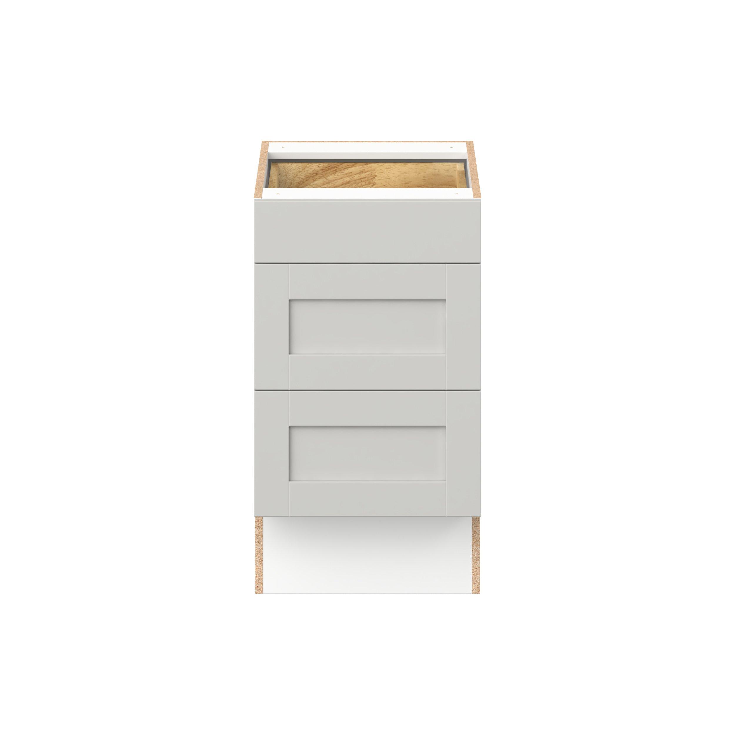 Enhance your home with the timeless beauty of Summerhill classic shaker cabinets, available in fresh bright white and neutral light gray colors. Crafted from one-piece MDF Studio Design Collection Summerhill 18 in. Light Gray Drawer Base Cabinet is designed to resist hairline cracks while the easy-to-clean finish stands up to stains and moisture. Featuring 5-piece doors and dovetail drawer joints, these cabinets offer durability and elegance. This collection combines style with everyday storage solutions.
