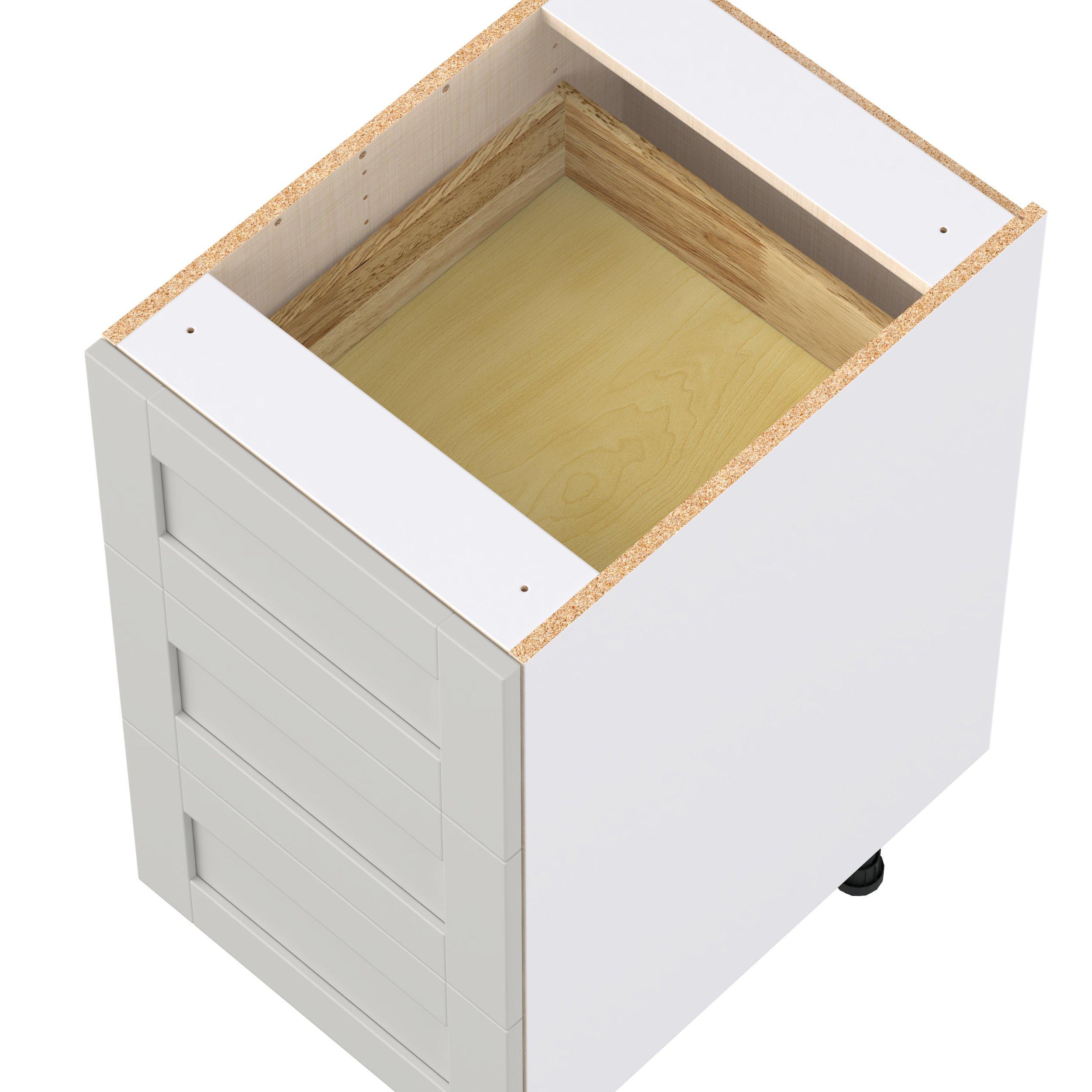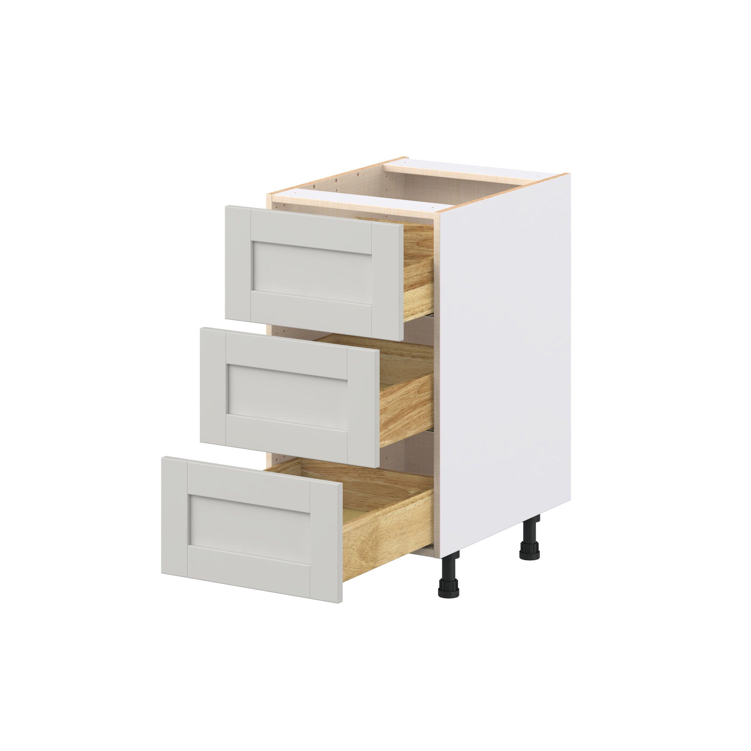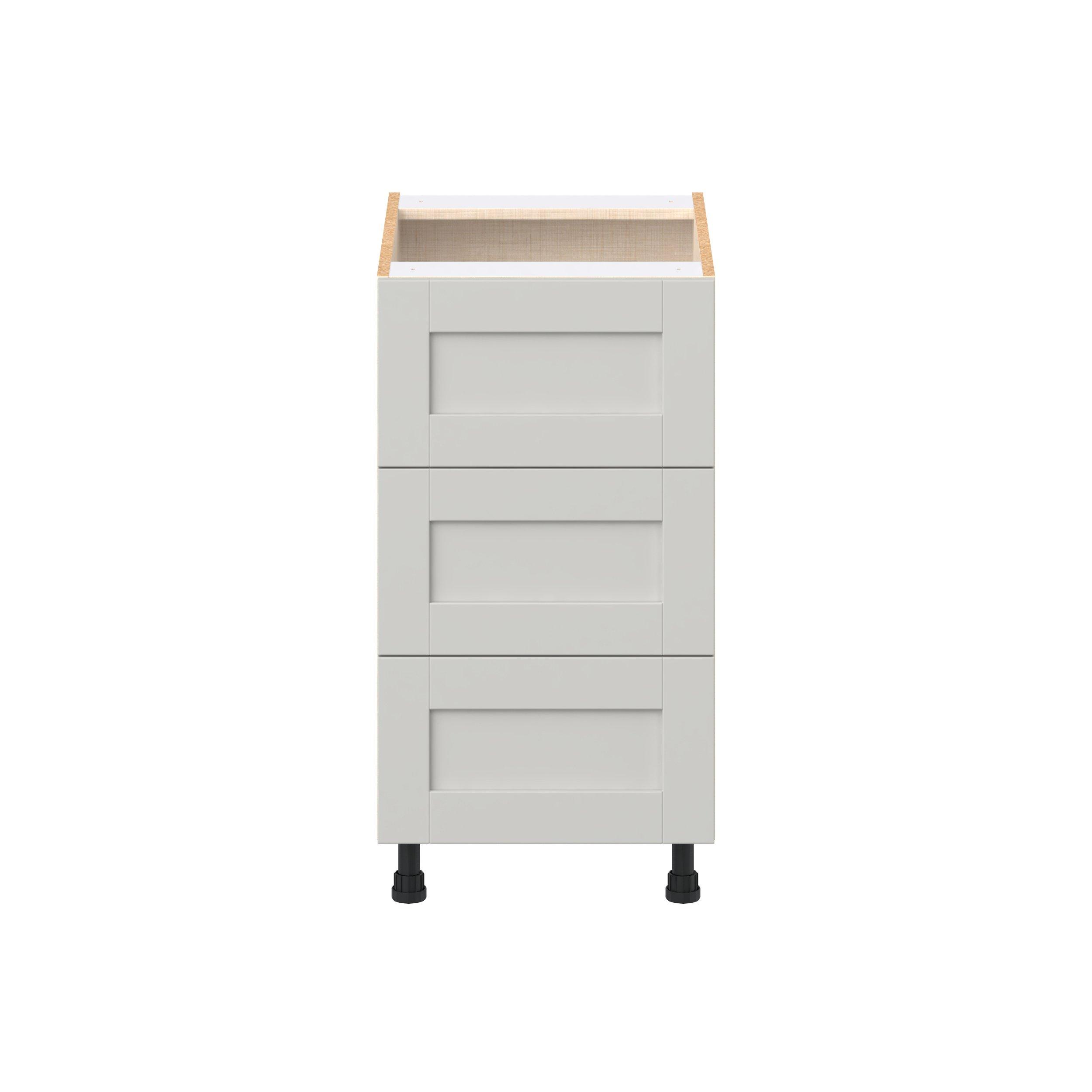 Enhance your home with the timeless beauty of Summerhill classic shaker cabinets, available in fresh bright white and neutral light gray colors. Crafted from one-piece MDF Studio Design Collection Summerhill 18 in. Light Gray Drawer Base Cabinet is designed to resist hairline cracks while the easy-to-clean finish stands up to stains and moisture. Featuring 5-piece doors and dovetail drawer joints, these cabinets offer durability and elegance. This collection combines style with everyday storage solutions.
