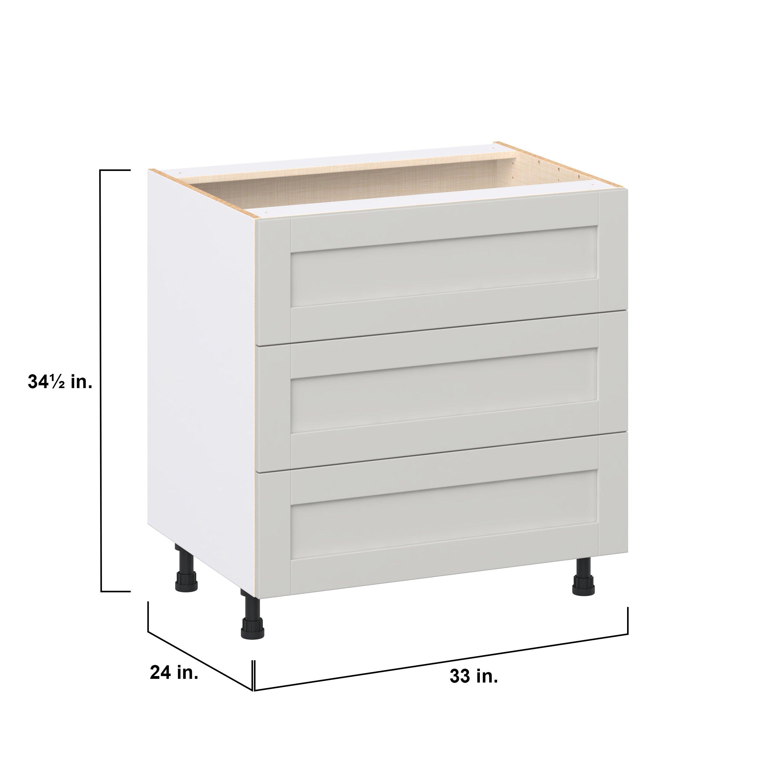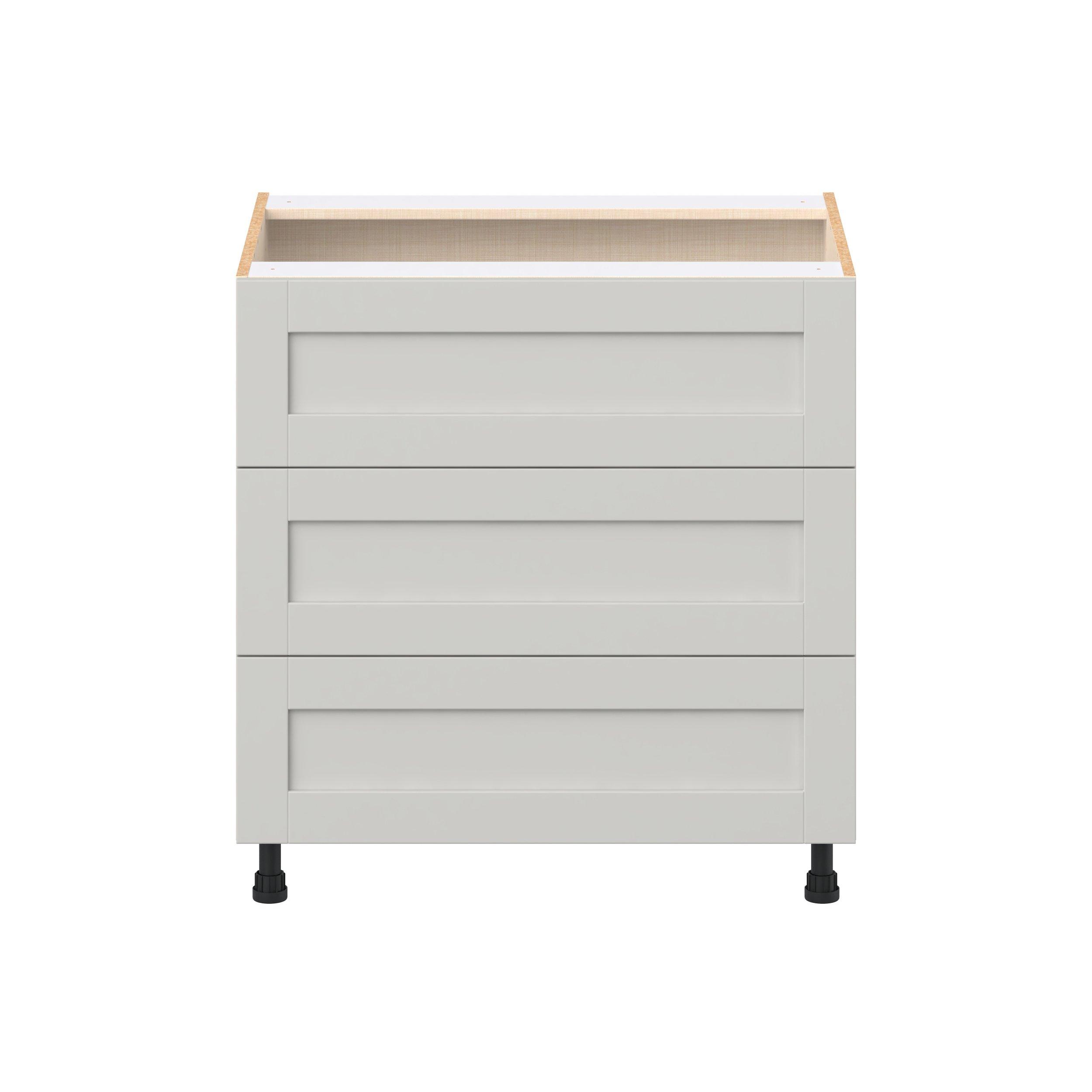Enhance your home with the timeless beauty of Summerhill classic shaker cabinets, available in fresh bright white and neutral light gray colors. Crafted from one-piece MDF Studio Design Collection Summerhill 33 in. Light Gray Drawer Base Cabinet is designed to resist hairline cracks while the easy-to-clean finish stands up to stains and moisture. Featuring 5-piece doors and dovetail drawer joints, these cabinets offer durability and elegance. This collection combines style with everyday storage solutions.