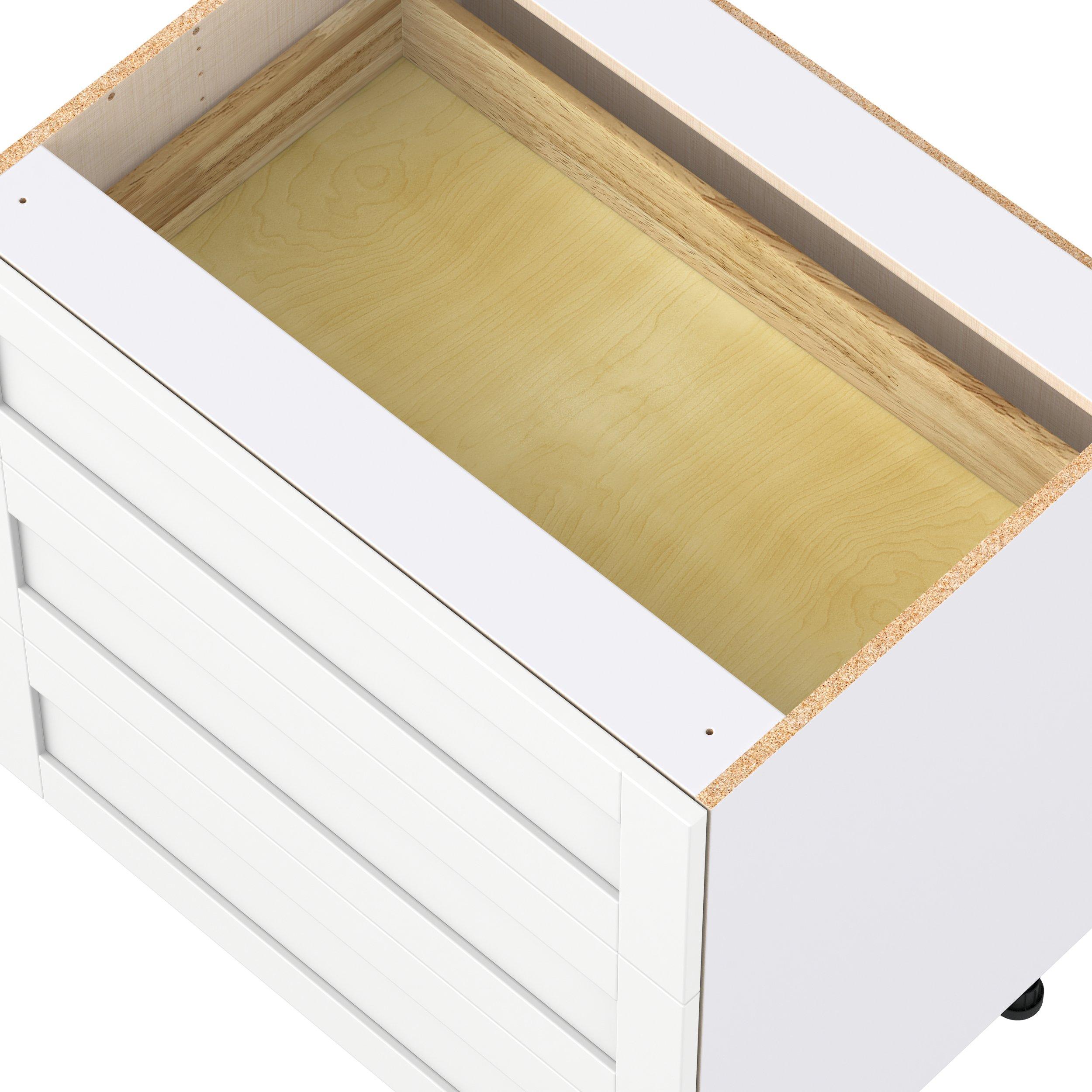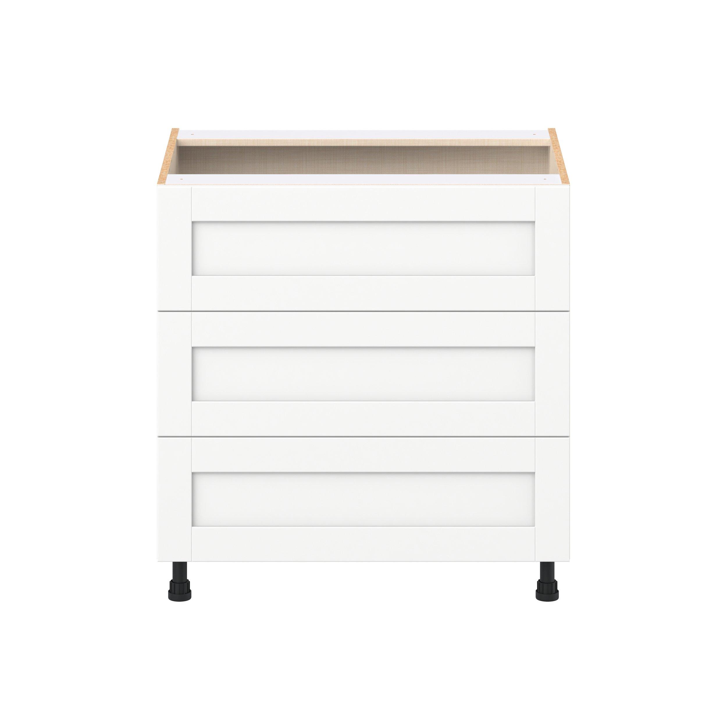 Enhance your home with the timeless beauty of Summerhill classic shaker cabinets, available in fresh bright white and neutral light gray colors. Crafted from one-piece MDF Studio Design Collection Summerhill 33 in. Bright White Drawer Base Cabinet is designed to resist hairline cracks while the easy-to-clean finish stands up to stains and moisture. Featuring 5-piece doors and dovetail drawer joints, these cabinets offer durability and elegance. This collection combines style with everyday storage solutions.