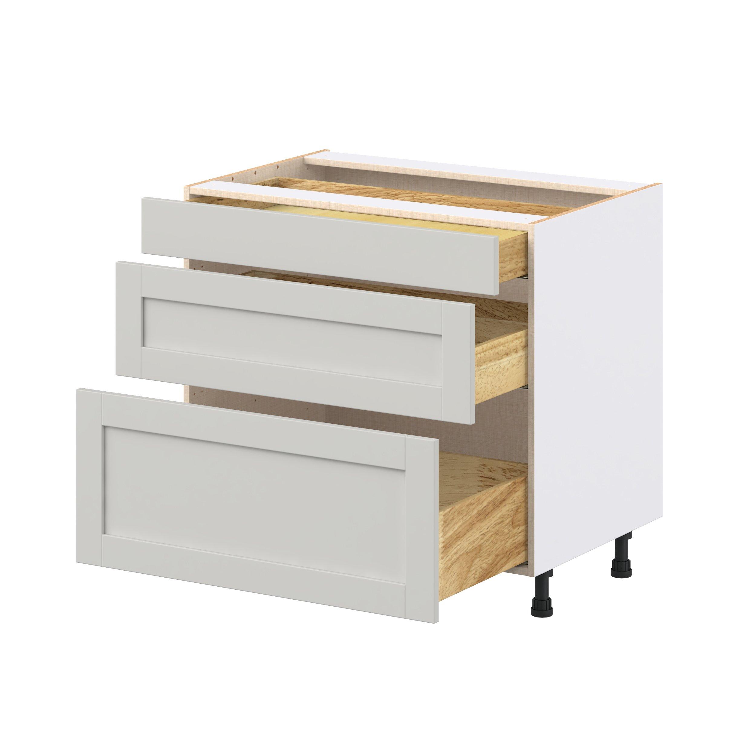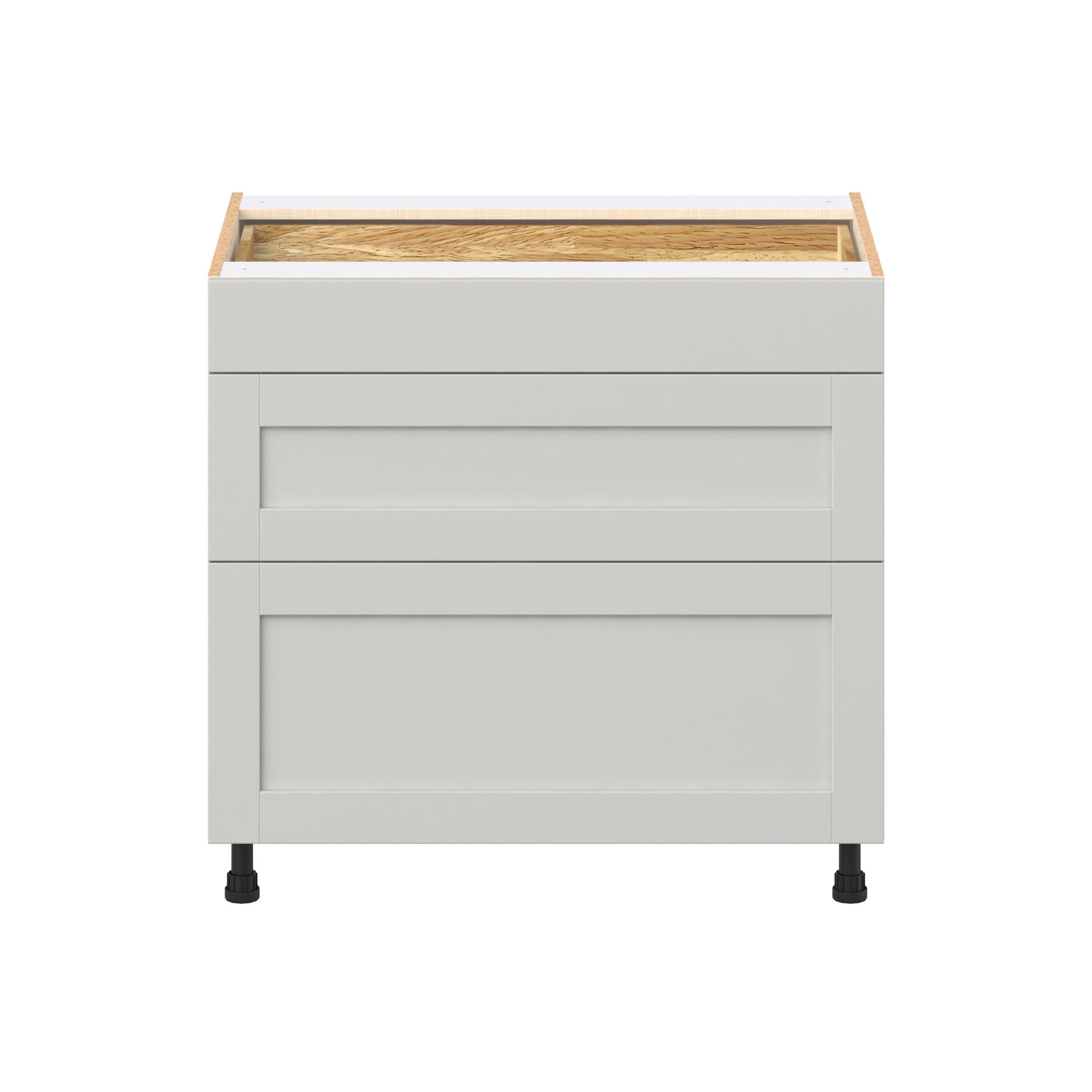 Enhance your home with the timeless beauty of Summerhill classic shaker cabinets, available in fresh bright white and neutral light gray colors. Crafted from one-piece MDF Studio Design Collection Summerhill 36 in. Light Gray Drawer Base Cabinet is designed to resist hairline cracks while the easy-to-clean finish stands up to stains and moisture. Featuring 5-piece doors and dovetail drawer joints, these cabinets offer durability and elegance. This collection combines style with everyday storage solutions.