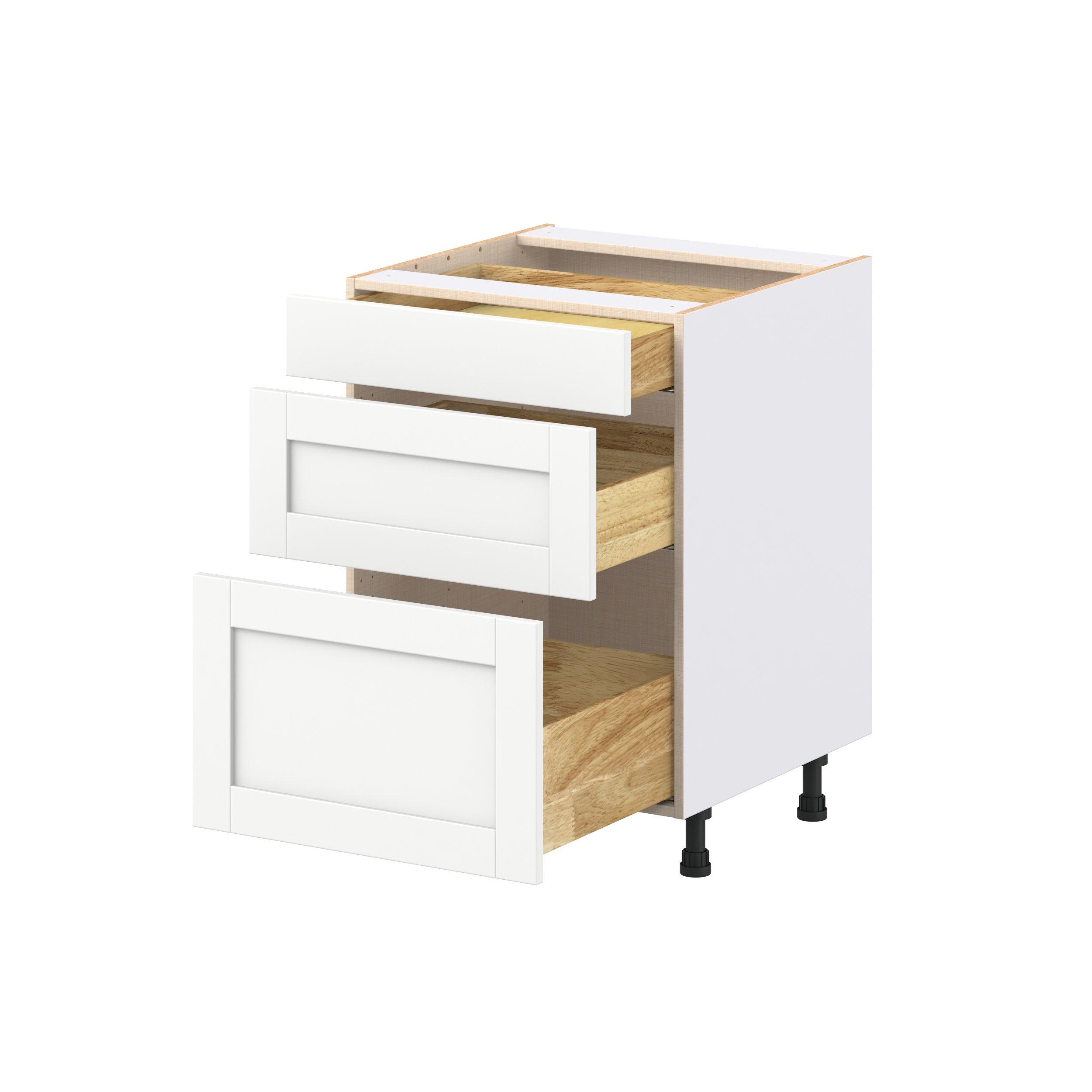 Enhance your home with the timeless beauty of Summerhill classic shaker cabinets, available in fresh bright white and neutral light gray colors. Crafted from one-piece MDF Studio Design Collection Summerhill 24 in. Bright White Drawer Base Cabinet is designed to resist hairline cracks while the easy-to-clean finish stands up to stains and moisture. Featuring 5-piece doors and dovetail drawer joints, these cabinets offer durability and elegance. This collection combines style with everyday storage solutions.