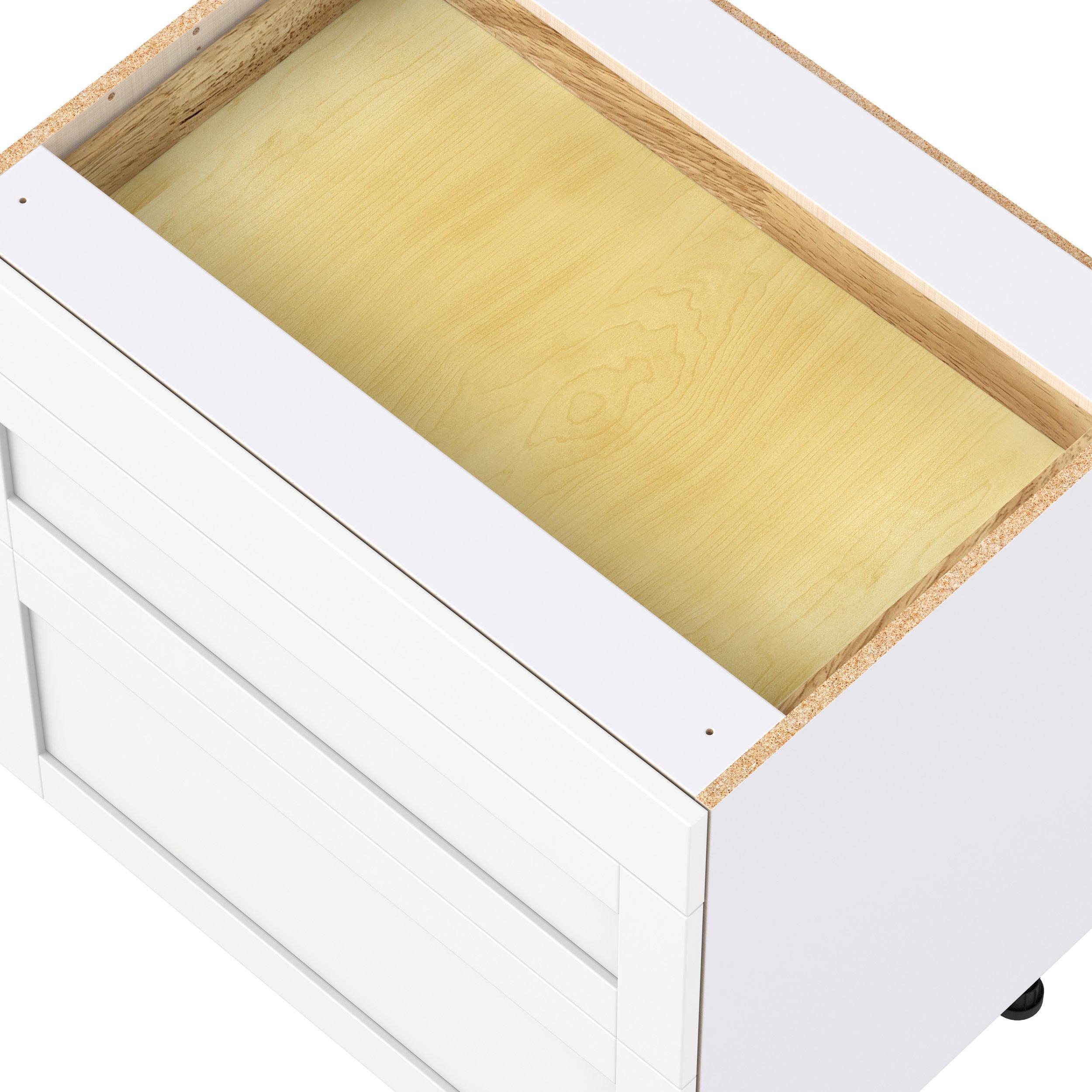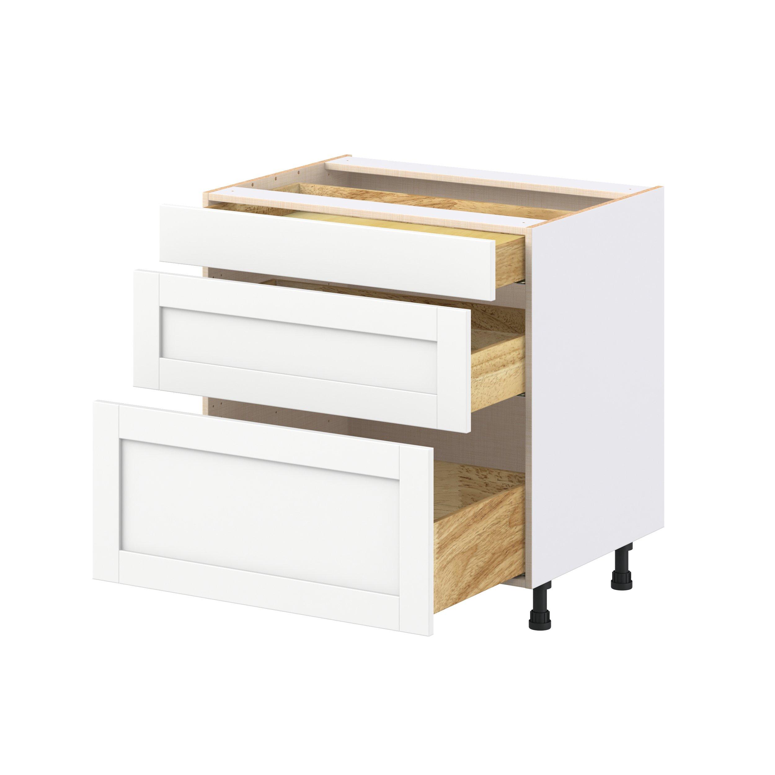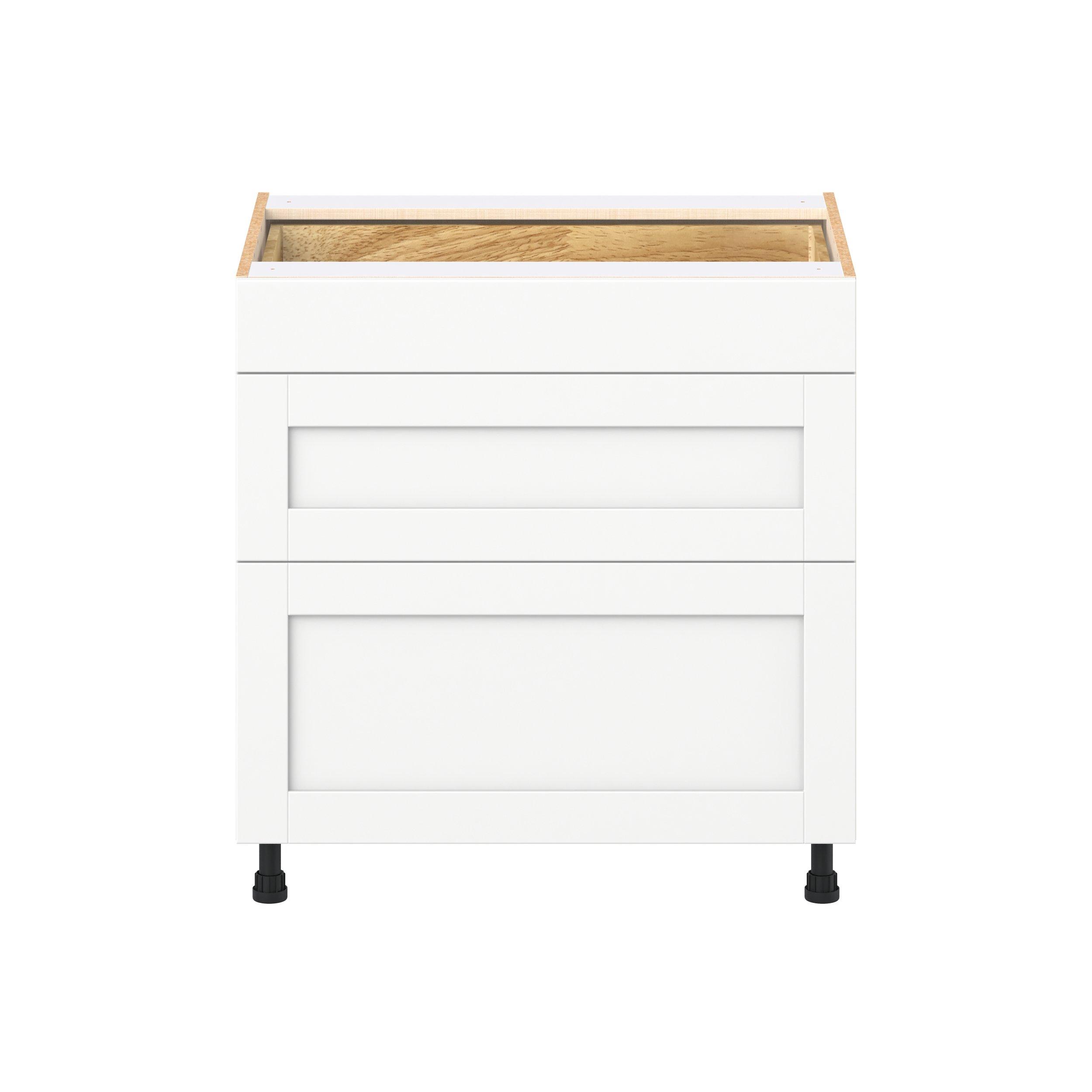 Enhance your home with the timeless beauty of Summerhill classic shaker cabinets, available in fresh bright white and neutral light gray colors. Crafted from one-piece MDF Studio Design Collection Summerhill 33 in. Bright White Drawer Base Cabinet is designed to resist hairline cracks while the easy-to-clean finish stands up to stains and moisture. Featuring 5-piece doors and dovetail drawer joints, these cabinets offer durability and elegance. This collection combines style with everyday storage solutions.