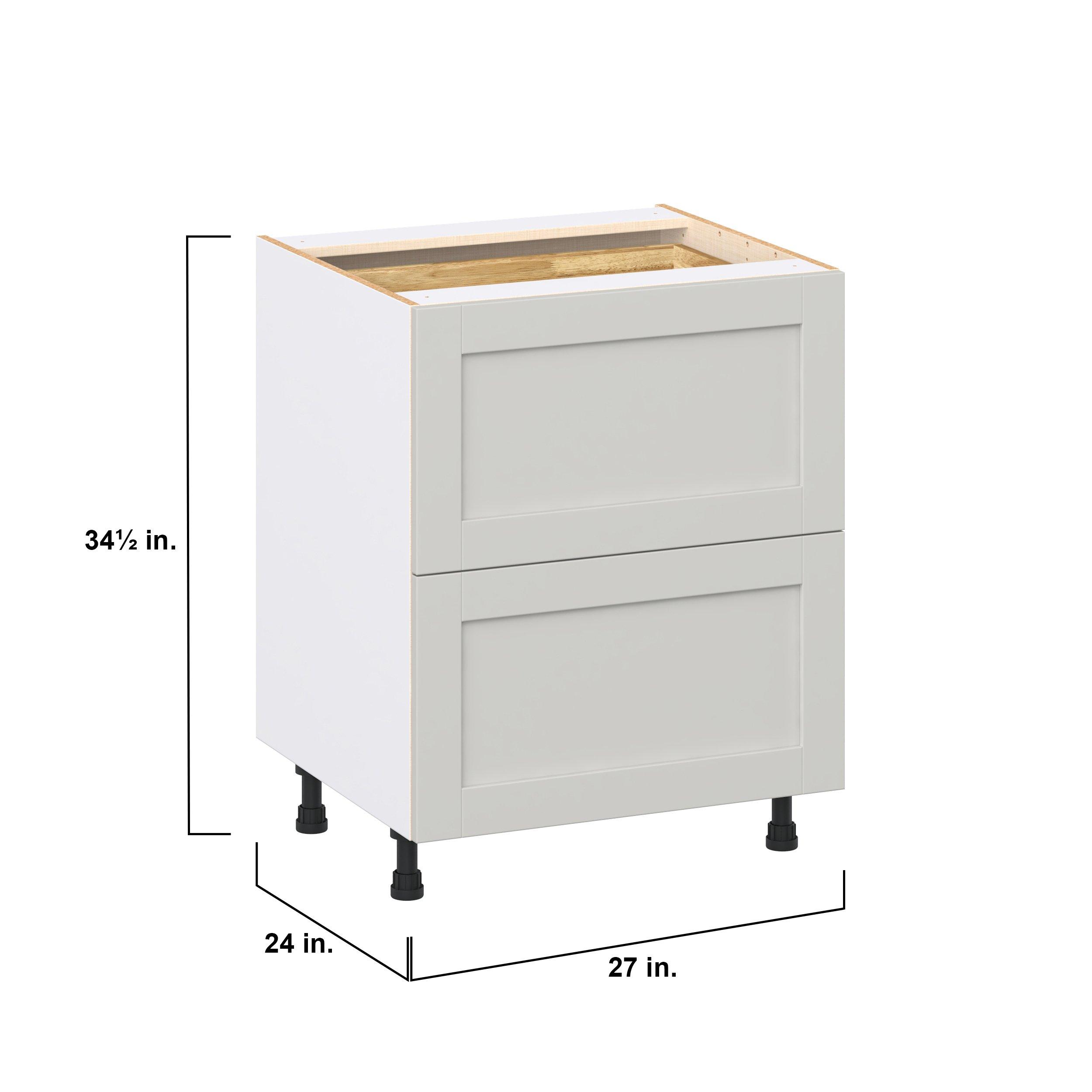 Enhance your home with the timeless beauty of Summerhill classic shaker cabinets, available in fresh bright white and neutral light gray colors. Crafted from one-piece MDF Studio Design Collection Summerhill 27 in. Light Gray Base Cabinet with Inner Pull-Out Drawer is designed to resist hairline cracks while the easy-to-clean finish stands up to stains and moisture. Featuring 5-piece doors and dovetail drawer joints, these cabinets offer durability and elegance. This collection combines style with everyday storage solutions.