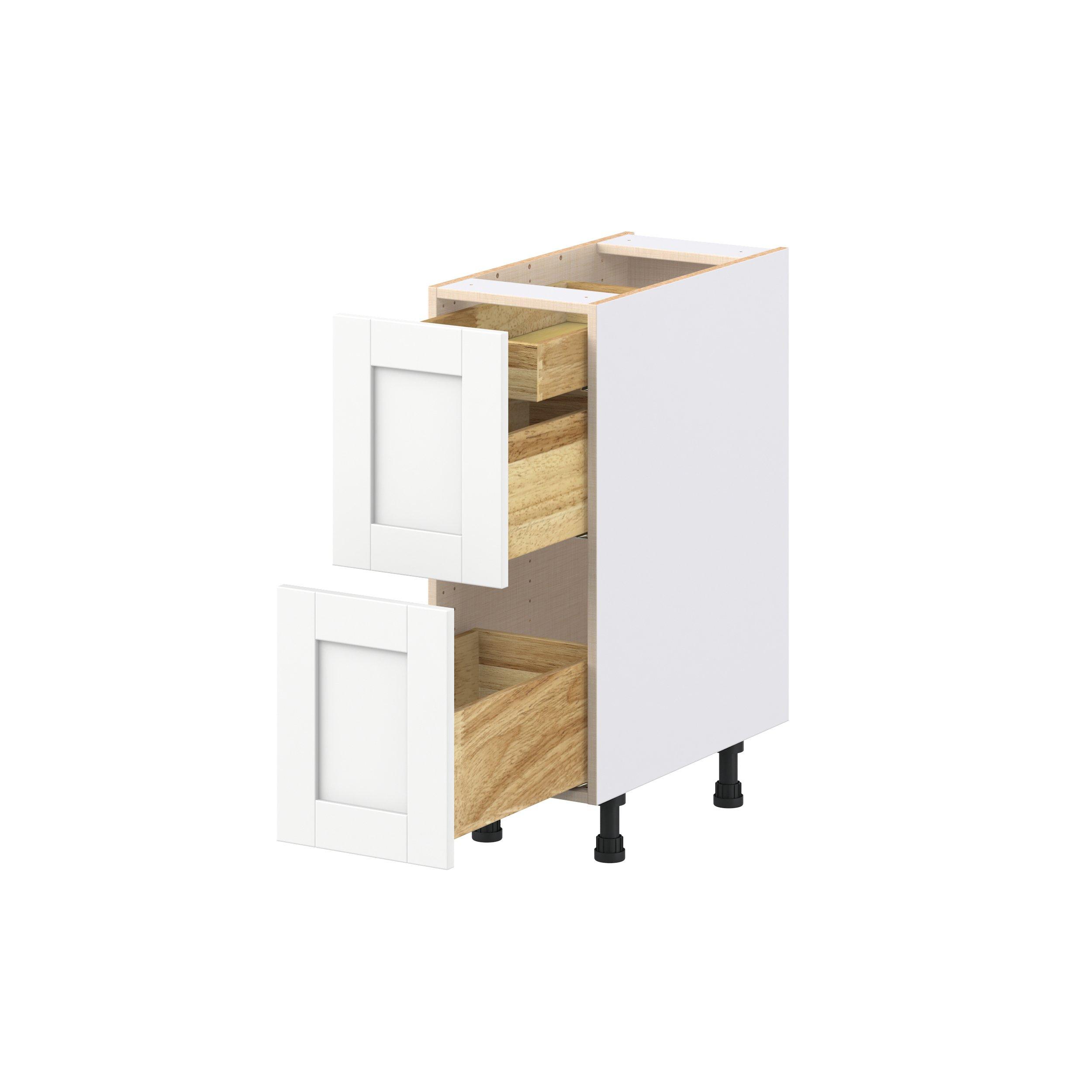 Enhance your home with the timeless beauty of Summerhill classic shaker cabinets, available in fresh bright white and neutral light gray colors. Crafted from one-piece MDF Studio Design Collection Summerhill 12 in. Bright White Base Cabinet with Inner Pull-Out Drawer is designed to resist hairline cracks while the easy-to-clean finish stands up to stains and moisture. Featuring 5-piece doors and dovetail drawer joints, these cabinets offer durability and elegance. This collection combines style with everyday storage solutions.