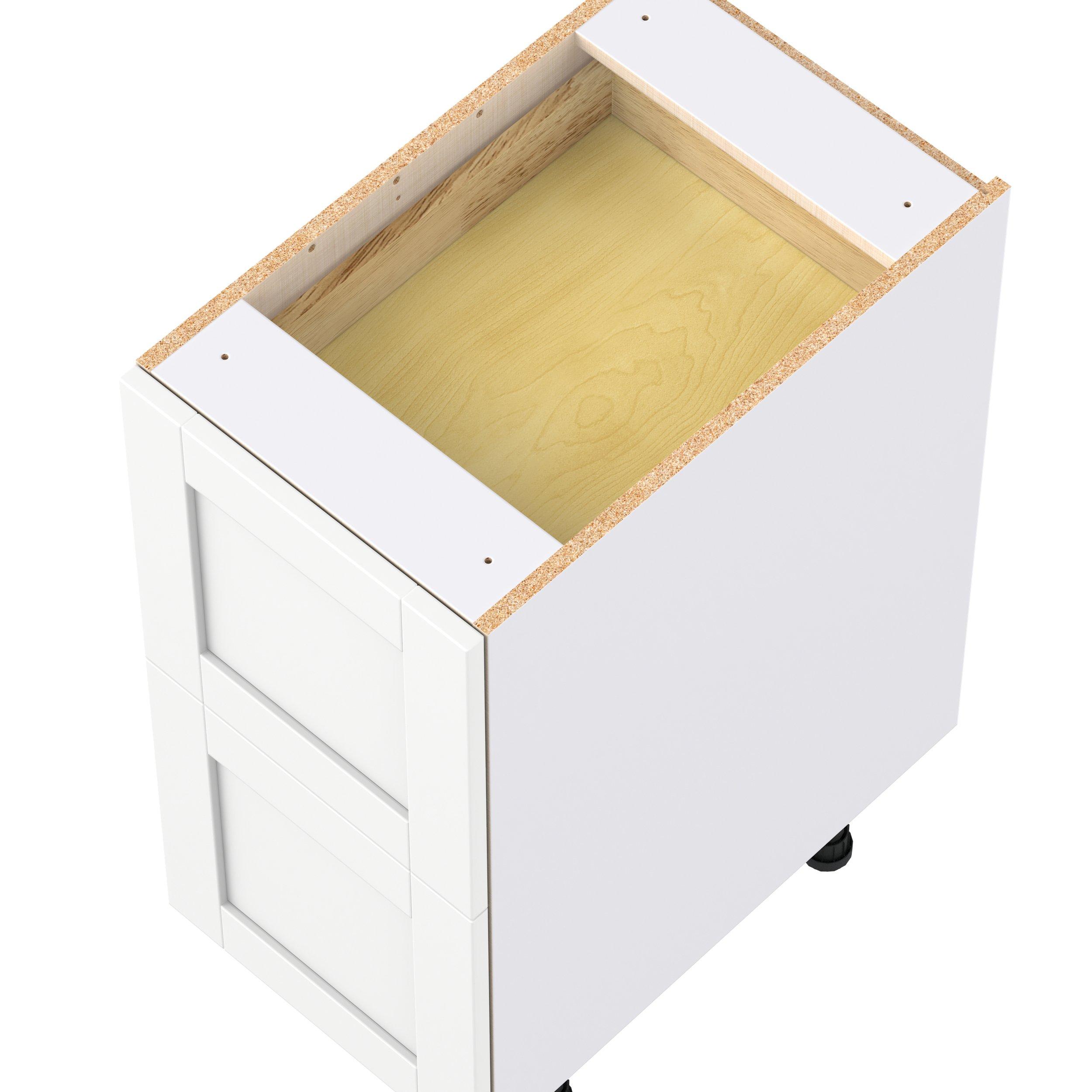 Enhance your home with the timeless beauty of Summerhill classic shaker cabinets, available in fresh bright white and neutral light gray colors. Crafted from one-piece MDF Studio Design Collection Summerhill 15 in. Bright White Base Cabinet with Inner Pull-Out Drawer is designed to resist hairline cracks while the easy-to-clean finish stands up to stains and moisture. Featuring 5-piece doors and dovetail drawer joints, these cabinets offer durability and elegance. This collection combines style with everyday storage solutions.