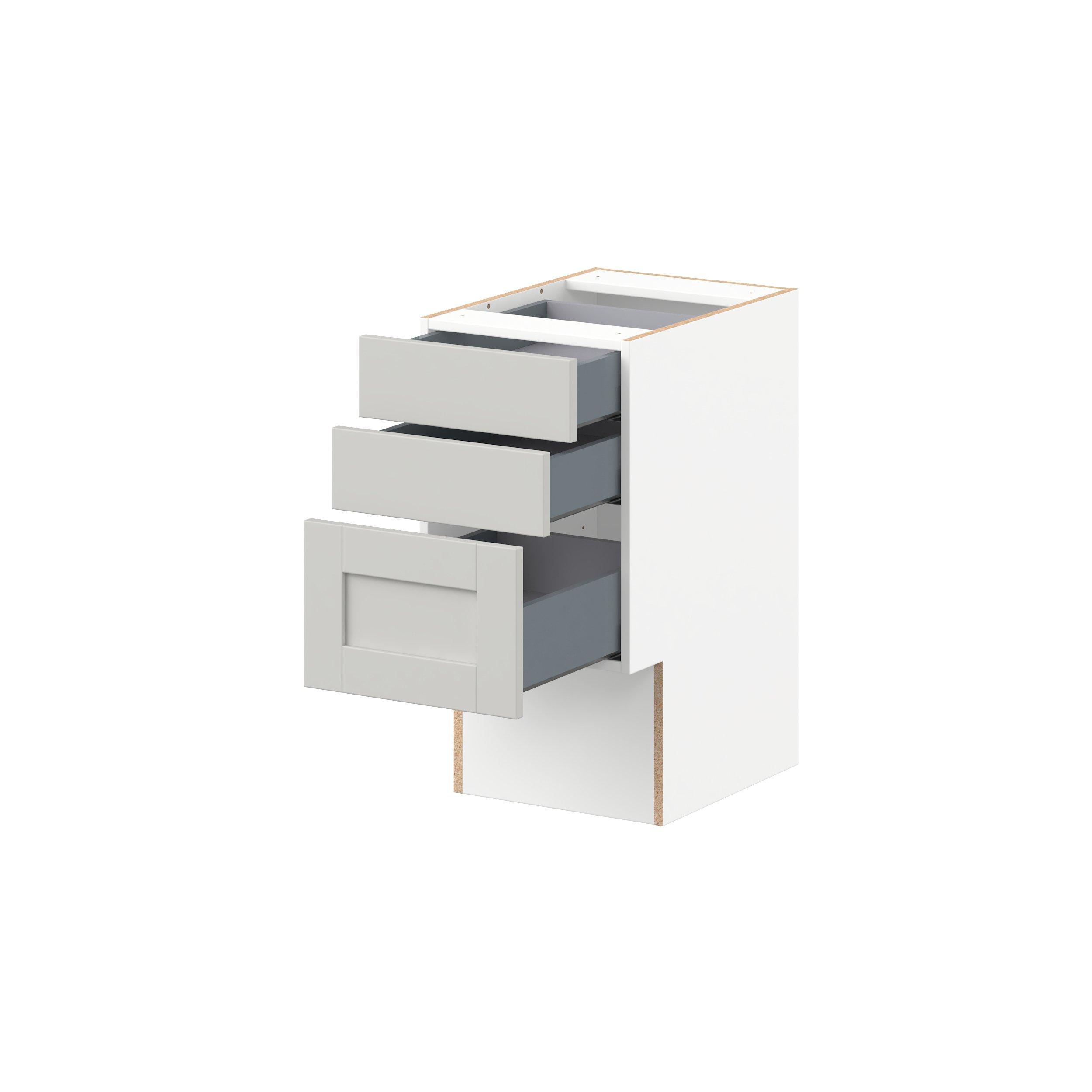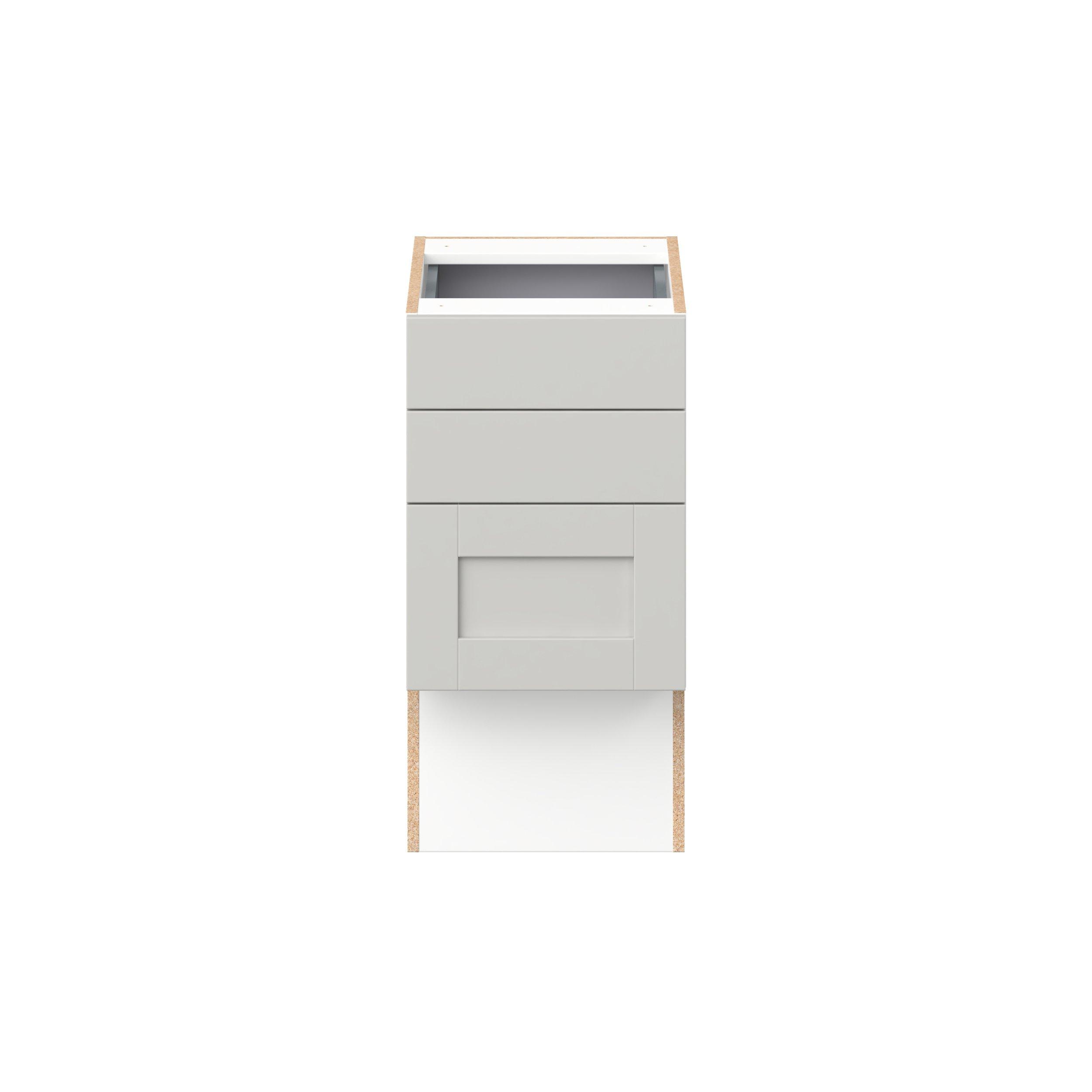 Enhance your home with the timeless beauty of Summerhill classic shaker cabinets, available in fresh bright white and neutral light gray colors. Crafted from one-piece MDF Studio Design Collection Summerhill 15 in. Light Gray Vanity Drawer Base Cabinet is designed to resist hairline cracks while the easy-to-clean finish stands up to stains and moisture. Featuring 5-piece doors and dovetail drawer joints, these cabinets offer durability and elegance. This collection combines style with everyday storage solutions.