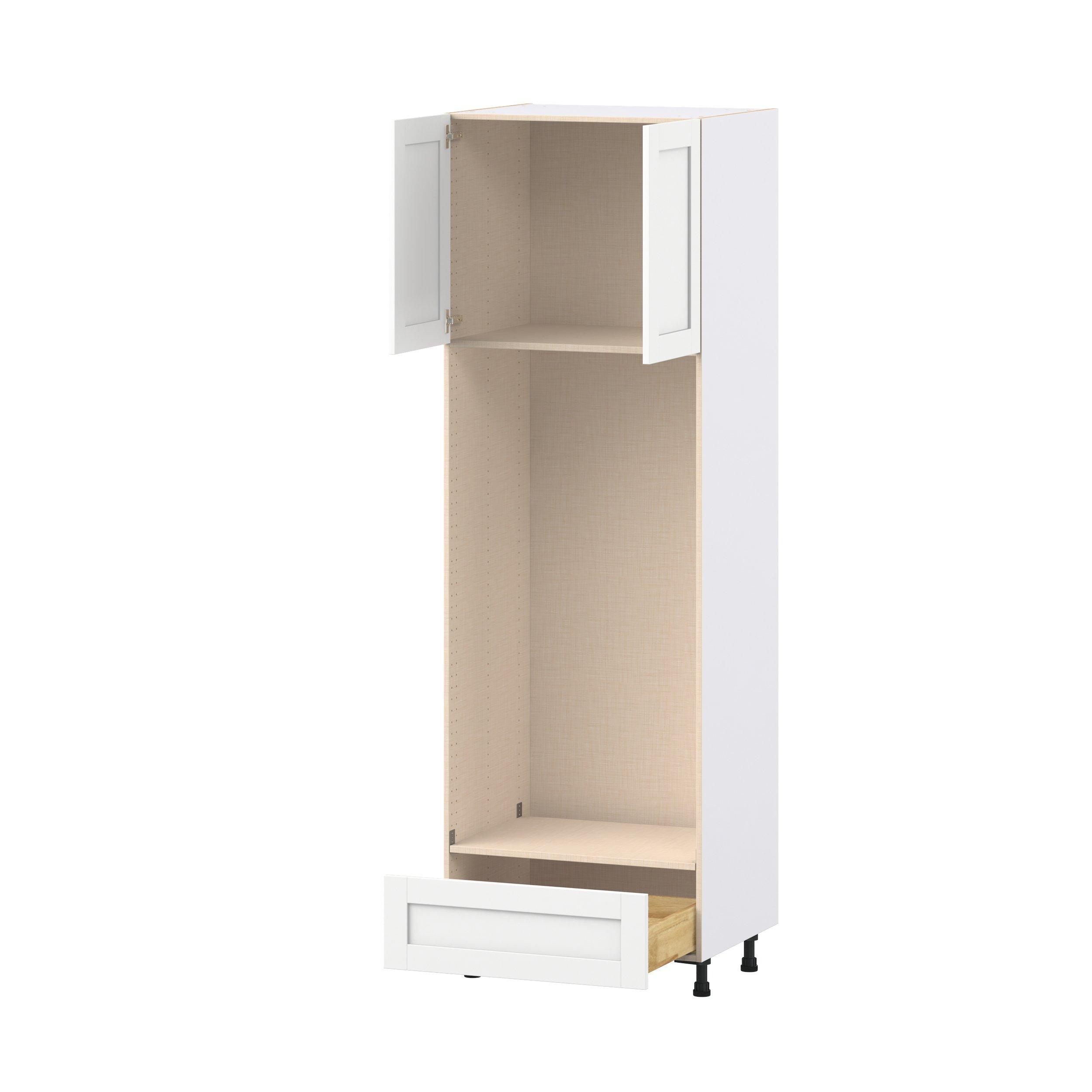 Enhance your home with the timeless beauty of Summerhill classic shaker cabinets, available in fresh bright white and neutral light gray colors. Crafted from one-piece MDF Studio Design Collection Summerhill 30 in. Bright White Door and Drawer Double Oven Pantry Cabinet is designed to resist hairline cracks while the easy-to-clean finish stands up to stains and moisture. Featuring 5-piece doors and dovetail drawer joints, these cabinets offer durability and elegance. This collection combines style with everyday storage solutions.