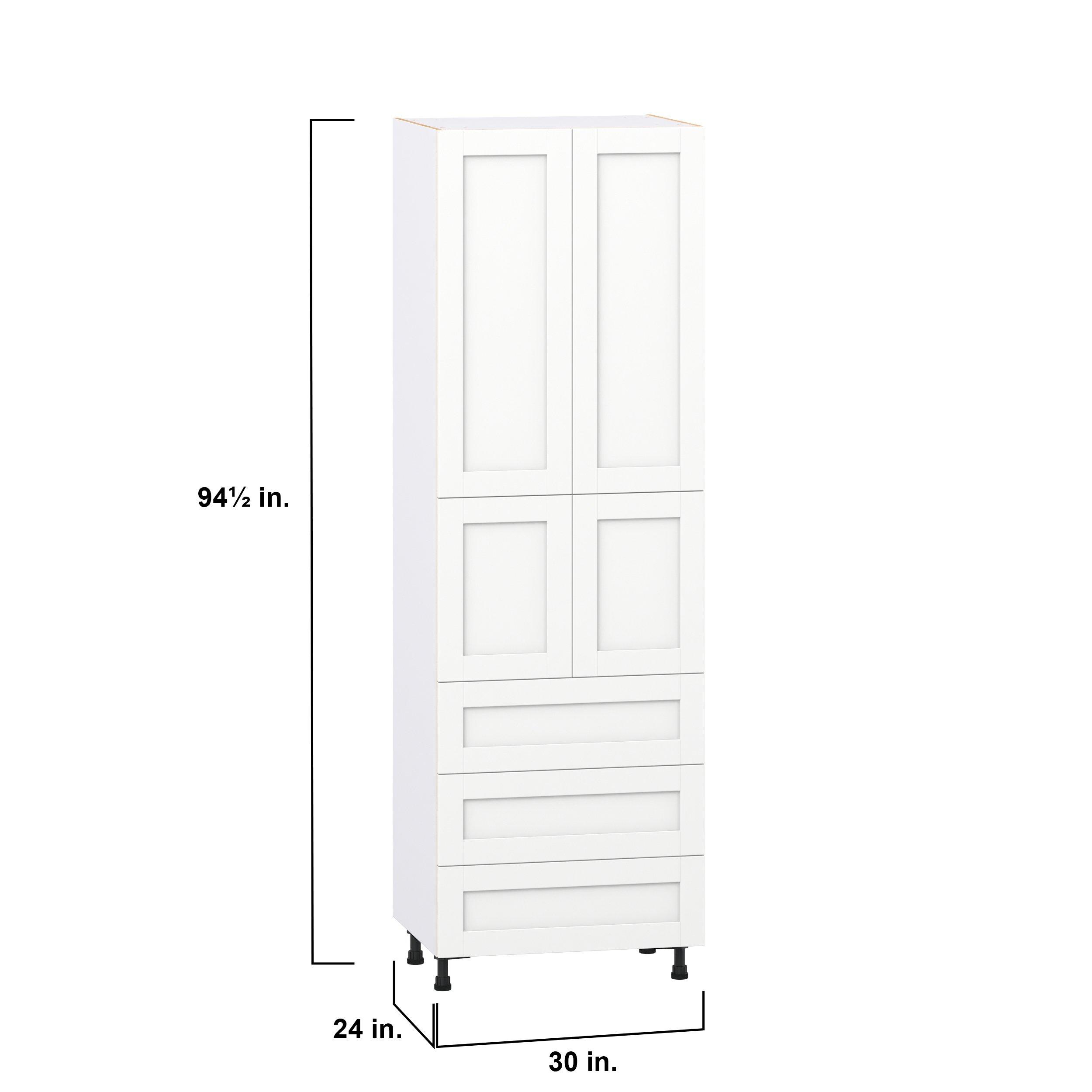 Enhance your home with the timeless beauty of Summerhill classic shaker cabinets, available in fresh bright white and neutral light gray colors. Crafted from one-piece MDF Studio Design Collection Summerhill 30 in. Bright White Door and Drawer Pantry Cabinet with Inner Pull-Out is designed to resist hairline cracks while the easy-to-clean finish stands up to stains and moisture. Featuring 5-piece doors and dovetail drawer joints, these cabinets offer durability and elegance. This collection combines style with everyday storage solutions.