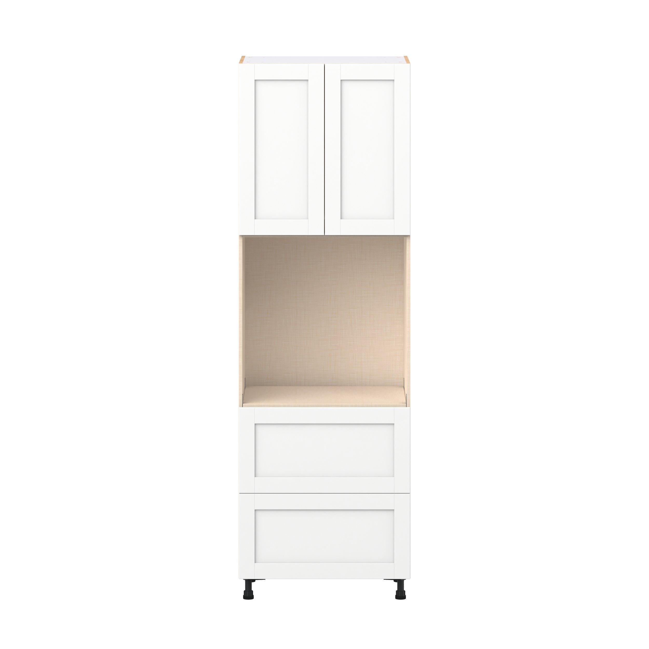 Enhance your home with the timeless beauty of Summerhill classic shaker cabinets, available in fresh bright white and neutral light gray colors. Crafted from one-piece MDF Studio Design Collection Summerhill 30 in. Bright White Door and Drawer Single Oven Pantry Cabinet is designed to resist hairline cracks while the easy-to-clean finish stands up to stains and moisture. Featuring 5-piece doors and dovetail drawer joints, these cabinets offer durability and elegance. This collection combines style with everyday storage solutions.