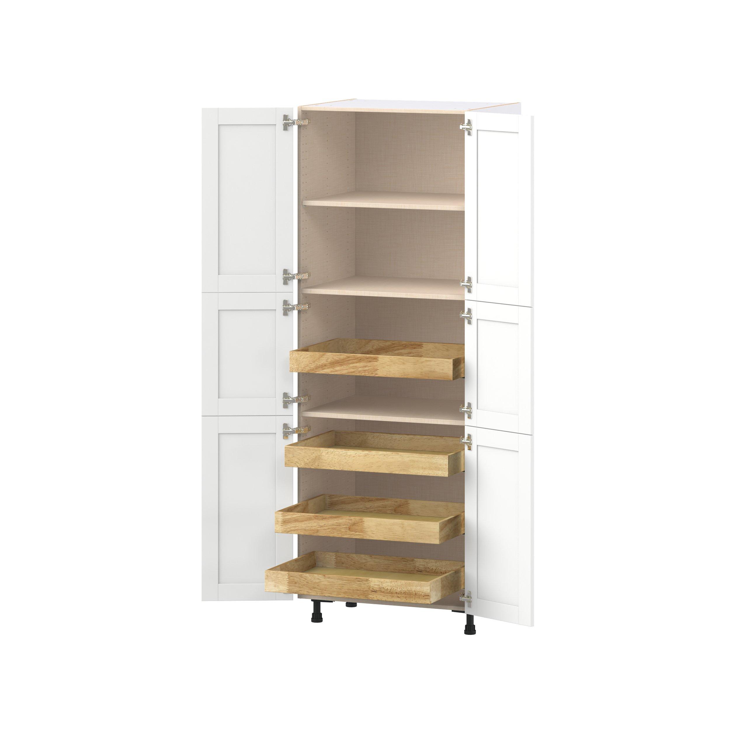 Enhance your home with the timeless beauty of Summerhill classic shaker cabinets, available in fresh bright white and neutral light gray colors. Crafted from one-piece MDF Studio Design Collection Summerhill 30 in. Bright White Pantry Cabinet with Inner Pull-Out Drawer is designed to resist hairline cracks while the easy-to-clean finish stands up to stains and moisture. Featuring 5-piece doors and dovetail drawer joints, these cabinets offer durability and elegance. This collection combines style with everyday storage solutions.