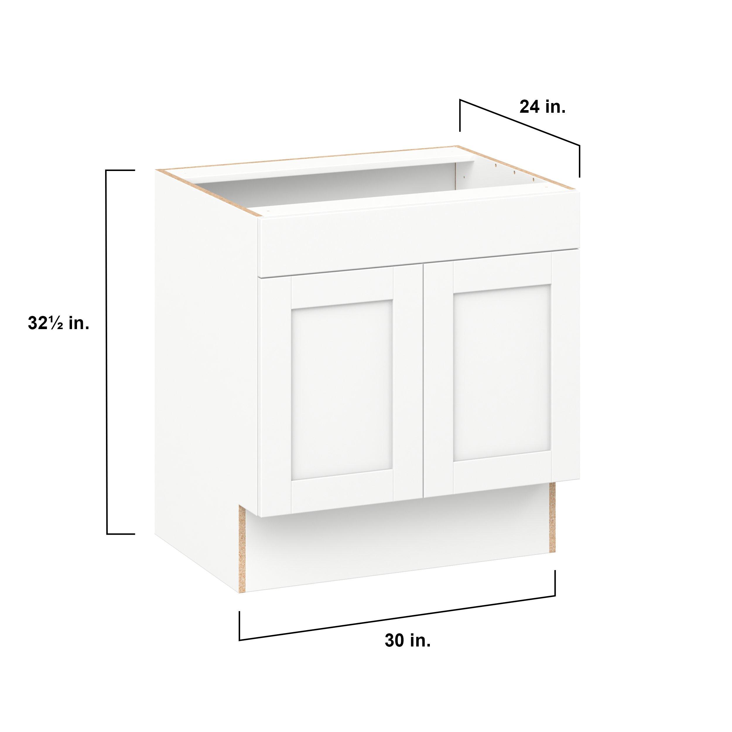 Enhance your home with the timeless beauty of Summerhill classic shaker cabinets, available in fresh bright white and neutral light gray colors. Crafted from one-piece MDF Studio Design Collection Summerhill 30 in. Bright White Sink Base Cabinet with False Front is designed to resist hairline cracks while the easy-to-clean finish stands up to stains and moisture. Featuring 5-piece doors and dovetail drawer joints, these cabinets offer durability and elegance. This collection combines style with everyday storage solutions.