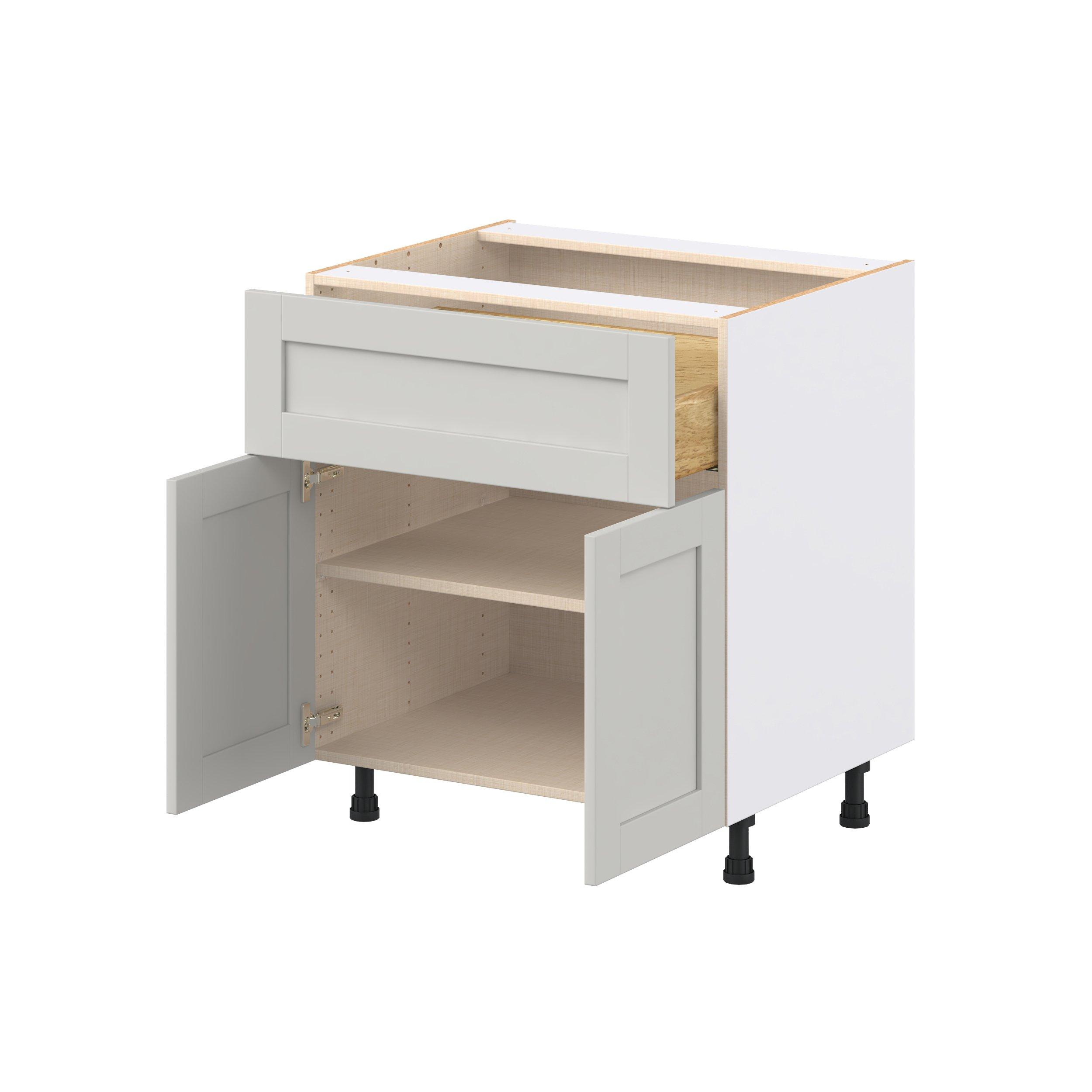 Enhance your home with the timeless beauty of Summerhill classic shaker cabinets, available in fresh bright white and neutral light gray colors. Crafted from one-piece MDF Studio Design Collection Summerhill 30 in. Light Gray Door and Drawer Base Cabinet is designed to resist hairline cracks while the easy-to-clean finish stands up to stains and moisture. Featuring 5-piece doors and dovetail drawer joints, these cabinets offer durability and elegance. This collection combines style with everyday storage solutions.