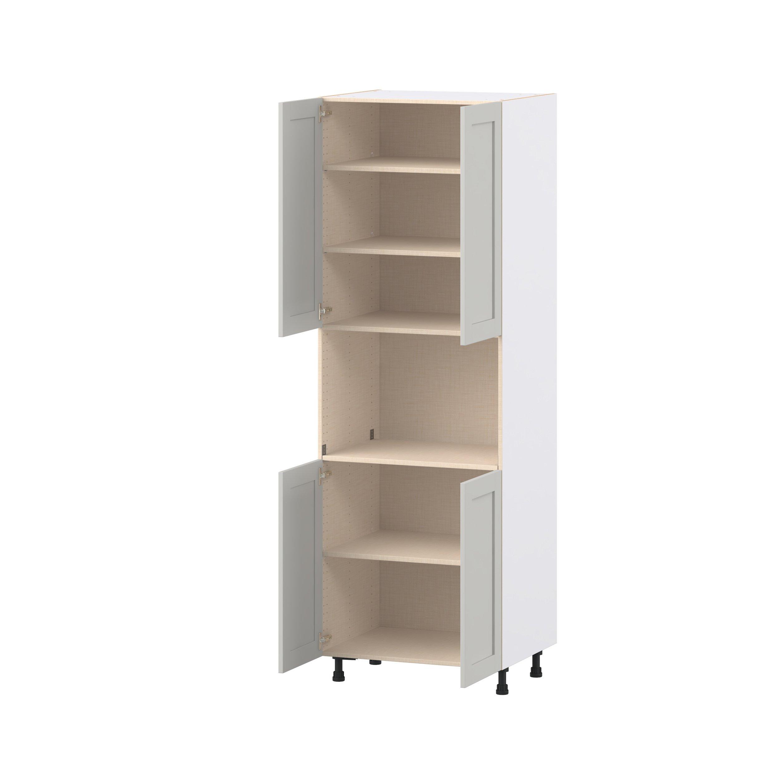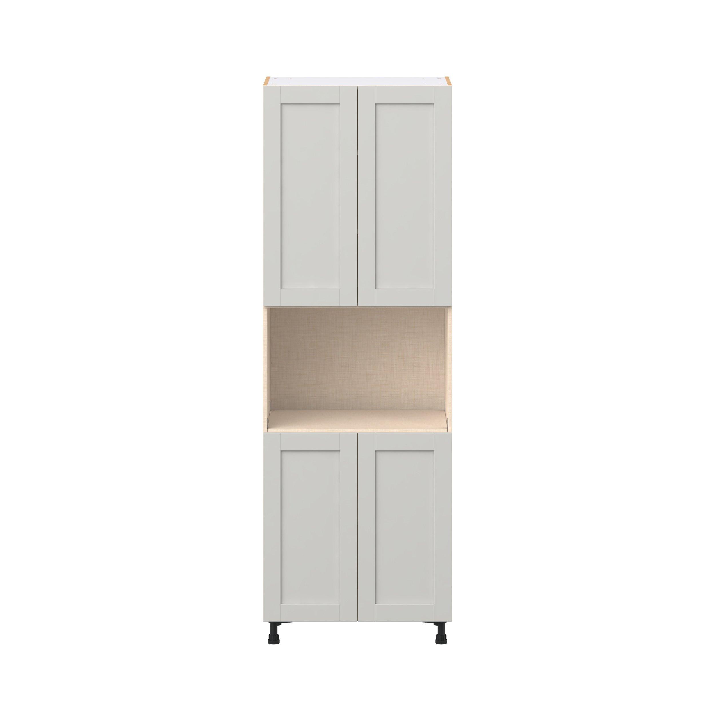 Enhance your home with the timeless beauty of Summerhill classic shaker cabinets, available in fresh bright white and neutral light gray colors. Crafted from one-piece MDF Studio Design Collection Summerhill 30 in. Light Gray Door Microwave Pantry Cabinet is designed to resist hairline cracks while the easy-to-clean finish stands up to stains and moisture. Featuring 5-piece doors and dovetail drawer joints, these cabinets offer durability and elegance. This collection combines style with everyday storage solutions.