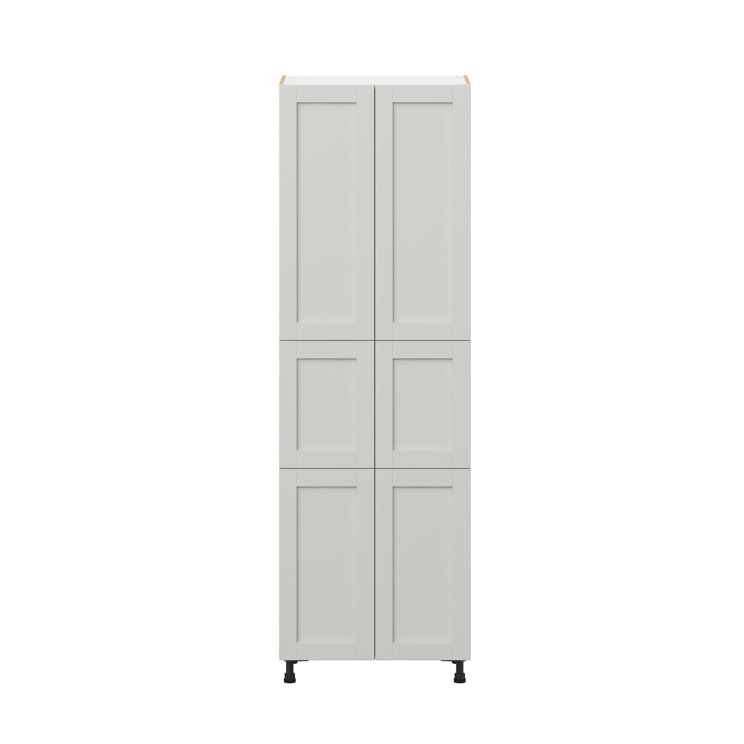 Enhance your home with the timeless beauty of Summerhill classic shaker cabinets, available in fresh bright white and neutral light gray colors. Crafted from one-piece MDF Studio Design Collection Summerhill 30 in. Light Gray Door Pantry Cabinet is designed to resist hairline cracks while the easy-to-clean finish stands up to stains and moisture. Featuring 5-piece doors and dovetail drawer joints, these cabinets offer durability and elegance. This collection combines style with everyday storage solutions.